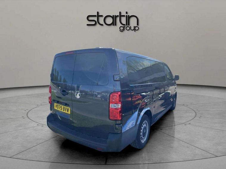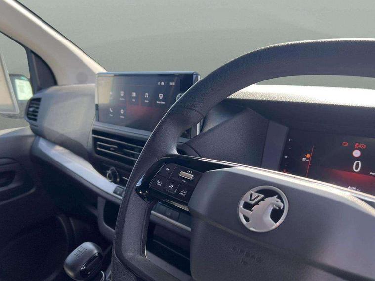 10" digital instrumental cluster, Central fascia display with digital clock, outside air temperature and audio information, Connectivity via BTA with RCE, Cruise control and speed limiter, Driver Attention Alert, level - 3, e-Call and b-Call, Electronic power steering (EPS), Energy absorbing steering column, Forward collision alert, Intelligent Speed Assist, Lane keeping assist, Mobile phone portal - Bluetooth, Vehicle microphone, Phone book access, Smartphone interface with Apple carplay/Android Auto, Multi-function trip computer, Rear parking distance sensor, TPMS (Tyre pressure monitoring system), Vauxhall connect, Audio controls mounted on steering wheel, Flexible short antenna (200mm), Multimedia pro audio system includes Radio AM/FM/DAB, 10" touchscreen with mirror screen(WI-FI), 4G connectivity, Voice control and USB connection, Two speakers and two tweeters, Automatic headlamps on/off, Black door handles, Black front and rear bumpers, Black side protection mouldings, Black sliding door rail cover, Electrically adjustable + heated door mirrors, Familial vizor, Front electric windows with one touch facility, Halogen headlamp with integrated daytime running lights, High beam assist, Laminated acoustic windscreen, Lockable fuel filler cap, Offside and nearside sliding side access doors, Rain sensitive windscreen wipers, Twin solid rear doors, 12V socket in lower glove box (1 only in cabin), Air recirculation facility, Chilled glovebox facility, Curitiba cloth upholstery, Driver's seat armrest, Ergonomic 6-way adjustable driver's seat with reach, rake, height and lumbar adjustment, Fixed floor mounted load restraint lashing eyes x8, Interior roof trim, Manual air conditioning, Overhead console with 1 ceiling lamp (dome type and 3 lamps), Reach and rake adjustable steering wheel, TPO plastic flooring, USB socket in cabin (dashboard), Automatic fuel cut-off and door unlocking in event of accident, Driver and front passenger airbags, Height adjustable lap and diagonal inertia reel front seatbelts, Passenger airbag deactivation manually, Dashboard mounted central locking push button and auto locking above 7mph, Engine deadlock immobiliser, Remote control central locking and deadlocking, Selective door locking, Two keys with integral remote, 22.5 litres AdBlue tank, 70L fuel tank, ABS, Advanced emergency braking system (AEBS), EBA, Electronic brake force distribution (EBFD), ESC, ESP, Floor mounted handbrake lever, Hill start assist, Manual parking brake, Traction control, Mistral black dashboard trim with liquid paladium decor strip in mid-section, Michelin Agilis 2 tyres - 215/65 R16C,