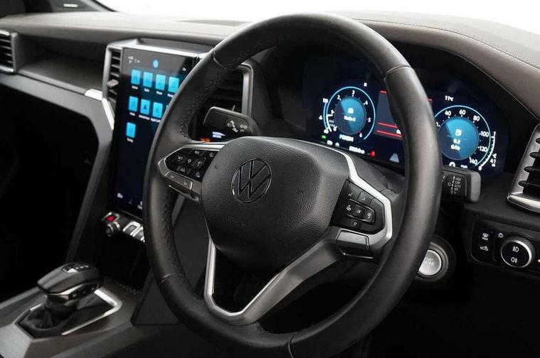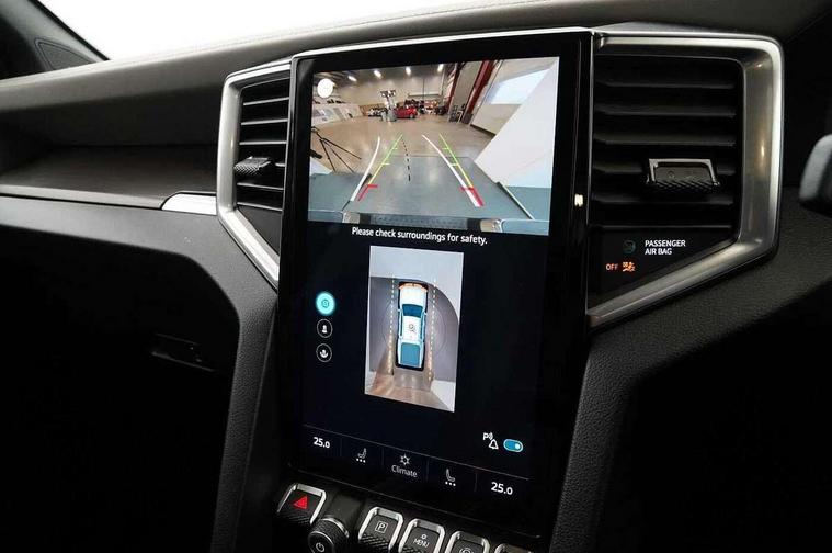12-inch Infotainment system, Adaptive cruise control ACC with predictive speed limiter, Area View 360 camera, Autonomous emergency braking front assist with monitoring and braking for vehicles, pedestrians, cyclists, Digital Cockpit 12-inch, Dynamic road sign display, eCall emergency system, Lane keeping system lane assist and lane change system side assist, Navigation system, Park assist including park distance control in front and rear, rear traffic alert, PAS, Selector lever, Without manual activation of 360-degree surround and cargo area lighting, Without tachograph, Without trailer maneuvering system Trailer Assist, 1 USB charging socket on the interior rearview mirror, 6 speakers, AM / FM antenna and digital radio reception DAB+, Preparation for VW Connect Basic and VW Connect Navigation, Advanced high-beam control Dynamic Light Assist for IQ.LIGHT LED matrix headlamps, Black bumper in rear with chrome-plated styling elements, Body coloured exterior mirror housings and door handles, Body coloured front bumper, Body-colored rear gate handle, Chrome styling roll bar, Dark-tinted privacy glass rear side windows and rear window, Diversity antenna, Dynamic headlight range control, Exterior mirrors, power-adjustable, heated and power-folding, with surround lighting, Front and rear power windows, Fuel filler door with integrated misfueling prevention device, Heated rear window, IQ Light LED matrix headlamps, LED front fog lamps, LED rear combination lamps, Mud flaps front and rear, Radiator grille with chrome bezel, Satin air vents, Step with chrome insert, Trailer hitch preparation, Windshield sound-insulating with windshield heater, Windshield wiper intermittent control with rain sensor, Without hardtop, Without roof rails/roof rack, Without towing eyes in rear, Without trailer hitch, Without underride guard, 10-way power-adjustable driver seat and 8-way adjustable front passenger seat, 3 head restraints in 2nd row of seats, 3 point belts in addition height-adjustable in 1st row of seats, 3-point belts in 2nd row of seats, 3-seater bench in 2nd row of seats, Ambient lighting, Art velours upholstery, Carpet floor covering, Center armrest in rear, Child seat anchors ISOFIX on outer rear seats, i-Size compatible, Child seat recognition, Door handles in chrome, Driver seat with map pocket, Dual-zone climate control Climatronic, Gearshift/selector lever knob, leather, Glove compartment, illuminated and lockable, Headliner ebony black, Heating and fresh air system, Inductive charging feature, Leather-wrapped multi-function steering wheel, Overhead console 2 reading lights for driver and front passenger with glasses compartment in overhead console, Premium dashboard in leather look vinyl, Refrigerant, Roof grab handle on driver side, rigid grab handles, on A-pillar, Seat belt pretensioner, Seat occupied recognition with seat belt reminder for driver, front passenger and rear seat area, Sun visor on driver and front passenger side with illuminated vanity mirror, Tie-downs on the cargo area, Top tether child safety seat anchorage, Velour floor mats, Without hand brake lever, Without LED cargo area lighting, Without load compartment cover, Without load compartment loadliner, Without load support including protection frame on the rear cabin wall, Rear seat package II, Curtain and side airbags with center airbag, Front passenger airbag deactivation, Knee airbags for driver and front passenger, Without fire extinguisher, Without first aid kit, Anti-theft alarm system with interior monitoring, backup horn and towing protection, Keyless locking and starting system Keyless Access with SAFELOCK and 2 remote control folding keys, Online anti-theft alarm system, Rear gate lockable via central locking system, Remote control key, Tire Pressure Monitoring System (direct measurement), Wheel lock for spare wheel, Wheel locks, With programmable key, 120-V/230-V outlet in rear center console and cargo area, 3.55 gear ratio, Alternator - 250A, Automatic post collision braking system, Electronic parking brake, Electronic stability control (ESC) and Electromechanical brake booster, Emission standard, Four-wheel drive, Particle filter, Standard suspension, Stop/start function, Without differential lock in rear, Without electrical interface for external use, 6 switches in overhead console, 18" Amadora silver alloy wheels, Alloy spare wheel,