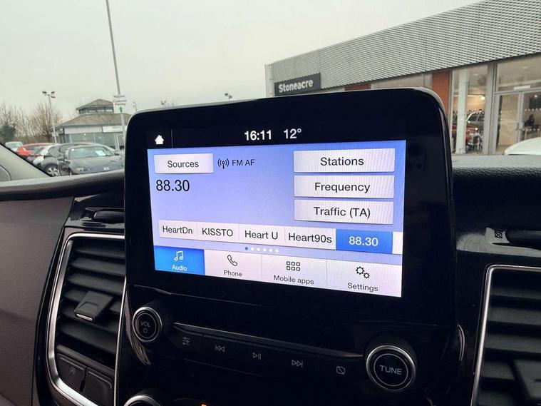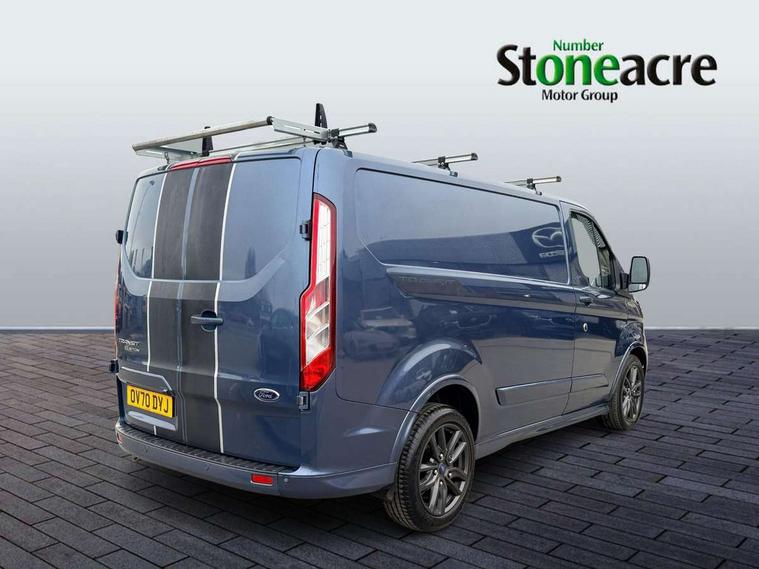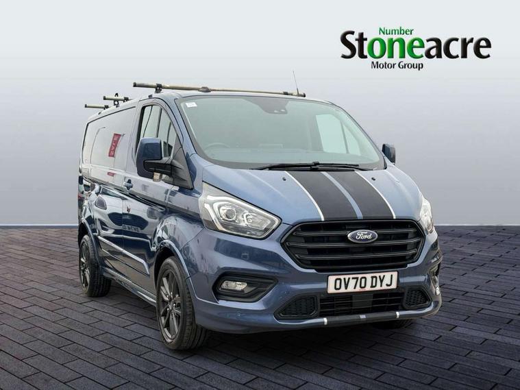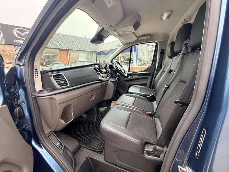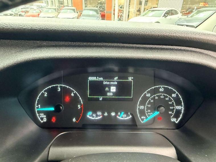 Easy fuel capless refuelling system, Ford Eco mode, PAS, Seatbelt warning indicator, Selectable drive mode, Tyre pressure monitor, Vehicle maintenance monitor, Audio controls mounted on steering wheel, Aux input socket, 'Guide me home' headlights, Body colour door handles, Body coloured body side mouldings, Body coloured door mirrors, Body coloured front bumper, Body coloured lift/decklid exterior handles, Body coloured rear bumpers, Coloured grille with 3 base bars, Electric front windows with one touch facility for driver and front passenger, Front mud flaps, Headlamp levelling, Hood accent stripe, Intermittent front wash/wipe, Passenger side sliding load door with track cover, Rear mudflaps, Sport van body styling kit, Assist handle, Colour keyed exterior pack, Complete rear trim board, Courtesy light, Driver and passenger sunvisors with illuminated vanity mirrors, Easy clean load floor, Front manual air conditioning, Front passenger grab handle, Height adjustable front headrests, Illuminated footwell, Leather gearshift knob, Load area protection kit with full height load compartment trim boards and 8 tie down loops, Load box LED lights, Lockable glove box, Map reading lights, Moulded cab floor liner, Moulded cab headlining, Part leather upholstery, Passenger underseat storage box, Reach and rake adjustable steering column, Recirculation heater, Rubber floor covering, Sunglasses roof storage, 3 point seatbelts for all seats, Driver's airbag, Front outer passenger airbag with deactivation switch, Front passenger airbag, Front seatbelt pretensioners, Height adjustable drivers seatbelt mount, Passenger seatbelt height adj, Auto locking on drive-away, Auto relocking, Configurable Unlocking, Power door dead locks, Remote central locking, Thatcham category 1 alarm with 2nd remote key, 2 12v sockets, 80 litre fuel tank, ABS, Auto start/stop system, Diesel particulate filter, ESP + EBA, Heavy duty alternator, Power point plug 400W - Level 2, Roll stability control, Side wind mitigation, 18" 7.5 5x2 spoke alloy wheels, Mini steel spare wheel,