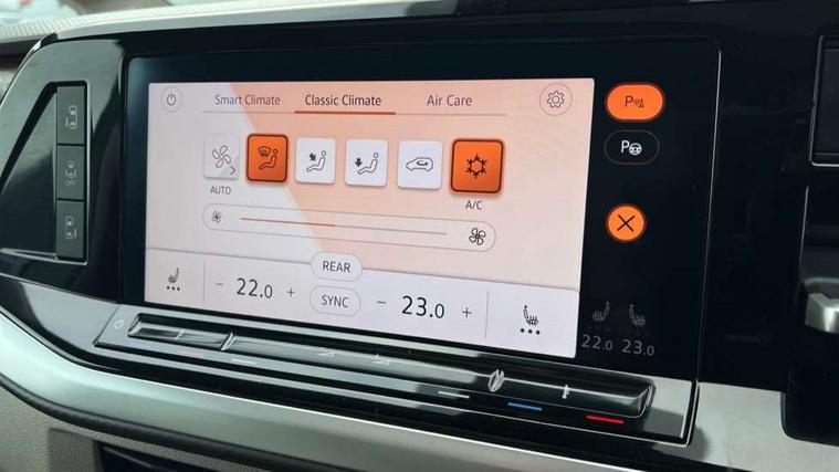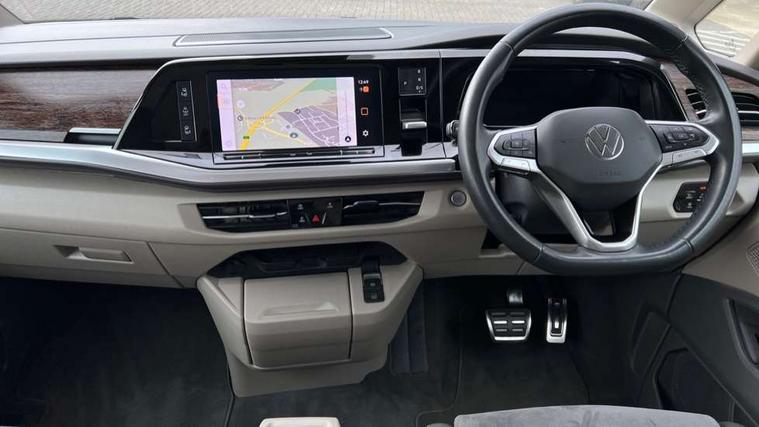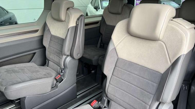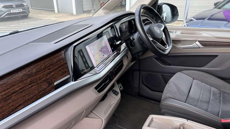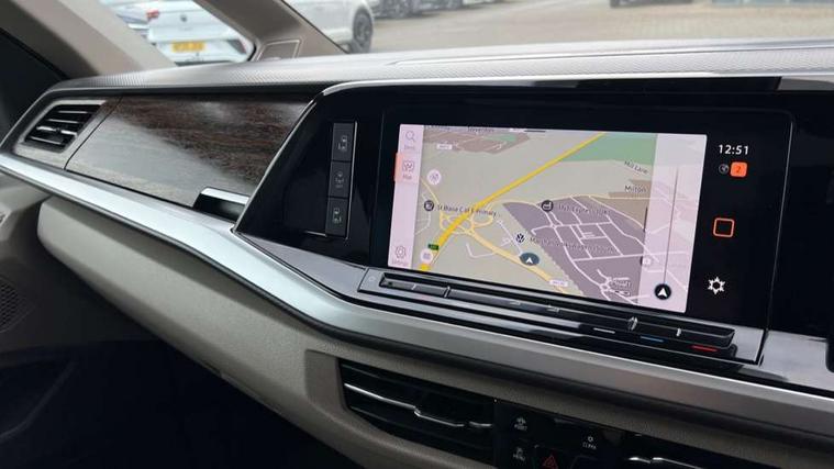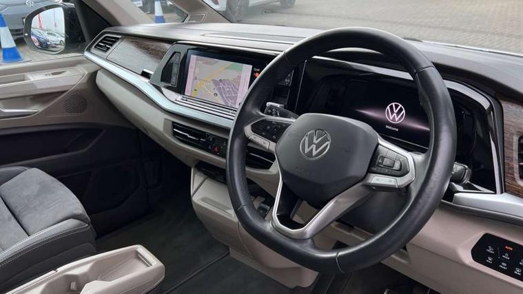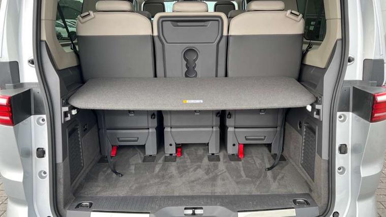 Adaptive cruise control with C2X including front assist and city emergency braking system, App-Connect incl. App-Connect Wireless for Apple CarPlay and Android Auto, Digital Cockpit Pro with 10.25" Display, Driver alert system, Dynamic road sign display, eCall emergency system, Electric tailgate with virtual pedal, Electrically-operated tailgate opening and closing function (Easy open), operated via foot movement under rear tailgate, Emergency assist, Lane keeping system Lane Assist, Mobile phone interface, PAS, Semi-automated driving assistance, Travel assist, Voice control system including Alexa web app, We connect preparation, Electronic differential lock, 2 USB-C ports in front and 4 USB-C ports in passenger compartment, Digital radio reception (DAB+), Additional interior noise reduction measures, Advanced high beam control dynamic light assist for LED matrix headlamps, Automatic headlight control with welcome home lights, Body coloured exterior door handles, Break away auto dimming rear view interior mirror, Chrome trim decorative strip mid-way on side and rear, Dynamic headlight range control with dynamic cornering light, Electric sliding rear side door on the left/right with easy open feature, Electrically adjustable, heated and folding door mirrors, Front fog lights, Glossy black painted radiator grille with 2 illuminated chrome trims, Heated rear window with window wiper and washer system, Heated windscreen, High gloss black exterior mirror housing, IQ.Light LED matrix headlamps with LED separate daytime running light, Laminated safety glass windshield, heat and sound insulating, LED 3rd brake lamp, LED rear combination lamps, Rear wiper, Sliding windows in front sliding doors and fixed rear windows, Stainless steel tailgate trim, Surround lighting in door area and tailgate with logo projection in door area, Windshield wiper intermittent control with rain sensor, 1 x 12V sockets on the dash panel, 12V socket in passenger compartment, 3 seat bench in 3rd row, 30 colours ambient interior lighting and tailgate surround lighting, 7 single seats removable/movable, Carpet mats in cab, Climatronic 3 zone air conditioning with 2nd evaporator, auxiliary heater, air conditioned headliner and additional passenger control, Front and rear head restraints, Grab handles on A pillar for access, on driver and front passenger side, Heated steering wheel, Height adjustable seats, Height and longitudinal adjustment steering wheel with gear shift paddles, Illumination lockable glovebox compartment, ISOFIX (including i-size) and top tether in all seats in 2nd and 3rd rows, LED luggage compartment lighting X 2, Load compartment partition to 20kg with bag hooks and luggage net, Luggage compartment lid power latching with unlatching from inside, Multifunction leather steering wheel with tiptronic, Reinforced carpet floor covering in passenger compartment, Removable armrests for front seats with power adjustable lumbar support and folding table for 2nd row passenger seats, Removable armrests in 2nd row passenger seats, Single front passenger seat, Slidable multifunction table/centre console with 3 cup holders, Stainless steel pedals, Storage compartment under the 2nd and 3rd row seat and two waste bins, Sun visors with illuminated vanity mirrors and airbag warning label on front passenger sun visors, 3x3 point rear seat belts, ABS, Automatic post collision braking system, Autonomous emergency braking front assist with pedestrian and cyclist monitoring, Driver and front passenger airbag with front passenger airbag deactivation, Electric childproof lock, Electronic stability control (ESC) and Electromechanical brake booster, ESP, First aid kit with warning triangle and safety vest, Front disc brakes, Hill hold assist, Seat belt warning for the drivers and all passengers seats if unfastened, Side and curtain airbags for driver and front passenger, curtain airbags for outer seats in rear, centre airbag in front, Single tone horn, Traction control, Tyre pressure monitoring system, Anti theft alarm system with interior monitoring in cab, backup horn and towing protection, Central locking system keyless entry with touch two stage unlocking, Start/stop button on centre console, Dark woodgrain optic decorative inserts,