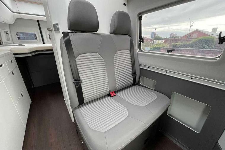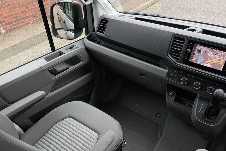 Adaptive cruise control, AppConnect, Bluetooth connection, Central operating unit with touch control for monitoring heating, lighting and water levels, Compact motorhome with sleek, light and airy modern interior, Cross wind assist, Discover media navigation system with 8" display including streaming and internet, Driver alert system, eCall emergency call system, Electromechanical servotronic steering, Trip computer, We connect plus preparation, 75 litre fuel tank with lockable cap, Second battery - operating 12V voltage, 4 speakers(2 tweeters/2 woofers), DAB+ radio, 180 degree rear wing doors, Automatic hazard lights activation under emergency braking, Body colour bumpers, Electrically operated retractable step, Front fog lights with cornering function, Manual sliding side door - driver's side, Rear wash/wipe, Third brake light, Two piece mosquito nets on sliding door, Two sky lights with sliding blinds and fly screens, Windows with sliding blinds and fly screen, 110 litres fresh water storage tank, 12V socket in cab, 4 x 230V electrical sockets, 70 litres fridge freezer compartment, 90 litres waste water tank, Climatic manually controlled air conditioning with dust and pollen filter and air recirculation, Dinette with 4 seats and table, Driver and passenger swivel seats with armrests, height and lumbar adjustment, Easily accessible storage compartment in rear, Folding chairs and tables stored in rear doors, Front head restraints, Fully insulated living area with floor, roof and wall insulation, Gas storage cupboard for two bottles, Hob with two burners, Isofix child seat preparation, Leather trimmed multi function steering wheel with heating function, Lengthways two person rear bed, Multiple USB sockets in cab and living area, Rake/reach adjustable steering wheel, Rear bench seat, Rear headrests, Rubber floor covering in cab, Seat trim covers in valley fabric upholstery, Single front passenger seat, Sink with hot and cold water with folding tap, Wet room with shower and cassette toilet, 3 point inertia reel seatbelts - all 4 seats, Anti-lock braking system (ABS), Automatic post collision braking system, Child locks on rear doors, Driver/Front Passenger airbags, Electronic brake assist (EBA), Electronic stabilisation programme (ESP) with load adjusting, Front assist with city emergency braking system, Hill start assist, Parking brake with hill hold control, Seat belt warning light for driver, Traction control system with ASR, Anti theft alarm system with interior monitoring in cab, backup horn and towing protection, Engine immobiliser, Remote central locking with 2 remote keys, 17" Lismore alloy wheels, Tyre mobility kit Includes 12V compressor and tyre sealant,