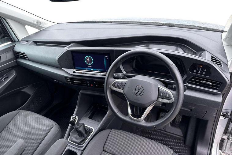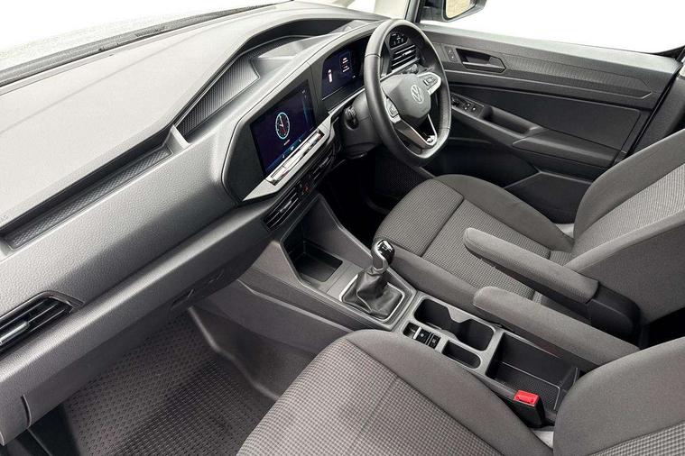 Bluetooth - Mobile phone interface, Car2X technology, Driver alert system, eCall emergency system, Intelligent Speed Assist, Lane assist, Seatbelt warning indicator, Service indicator, Start-stop system with regenerative braking, 2 USB interfaces type C in dashboard, App-Connect - Wireless for Apple CarPlay, DAB Radio, Navigation system "Discover Media" with 25.4-cm (10-inch) colour touch screen incl. Streaming & Internet, 4 speakers, We Connect Plus Preparation, Automatic hazard light activation under emergency braking, Black painted exterior mirror housings, body-colored door handles and Silver sliding door rail, Body coloured bumpers, Electric front windows, LED rear combination lights, LED rear tail lights, Roof rail preparation, Windscreen wiper with variable intermittent delay and wash-wipe system, Dimming breakaway interior rear view mirror, Electronically controlled heating system, ergoComfort seats for driver, Interior light in headliner incorporting LED technology, Lockable glove compartment door with light, Manual heating and ventilation system, Manual height adjustment for front seats and seat cushion inclination and depth adjustment on drivers seat, Multi function leather steering wheel, Power-adjustable lumbar support for drivers seat, Reach and rake adjustable steering column, Six lashing points for securing loads, Storage compartments under driver and front passenger seats, Sun visors with mirror, airbag label on front passenger sun visor, Winter pack plus - Caddy, 3-point seat belts in front, with pretensioner and height adjustment, Driver and front passenger airbag with front passenger airbag deactivation, Tyre pressure monitoring system, Anti-theft alarm system, interior monitoring, backup horn, and towing protection, Electronic engine immobiliser, Remote central locking with deadlocks, interior locking, Anti locking braking system (ABS), Automatic post collision braking system, Autonomous Emergency Braking Front Assist with Pedestrian Monitoring, Brake assist, Diesel particulate filter, Electric parking brake with auto hold function, Electronic brake force distribution (EBD), Electronic differential lock (EDL), Electronic stabilisation programme (ESP), Engine drag torque control (MSR), Hill hold assist, Traction control system (TCS), Decorative beige birch vein inserts, Wheel bolts with anti-theft protection (unlockable),