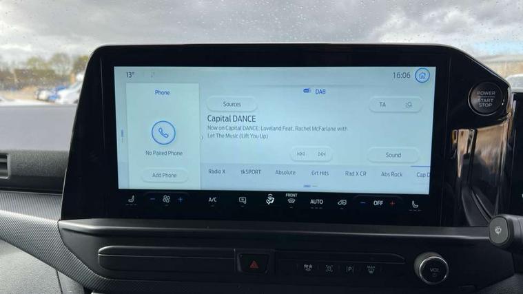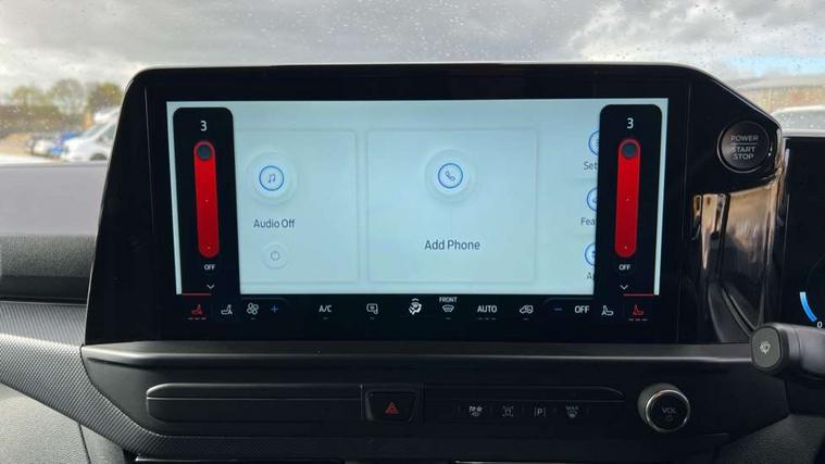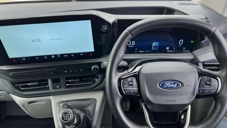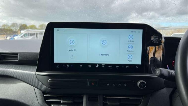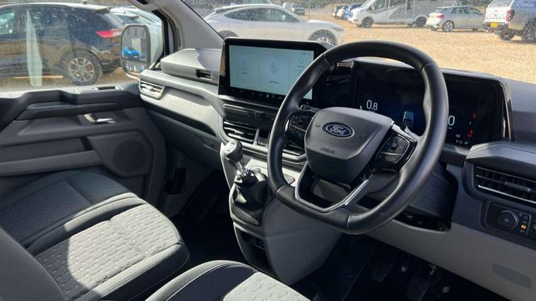 13" Touchscreen, 5G embedded modem, AECS NO SMS/Roll Detect 2G, PAS, Tyre pressure monitor, SYNC 4 - Android Auto/Apple Car Play, advance speech recognition, over the air update capability, Automatic headlights, Automatic windscreen wipers, Body coloured door mirrors, Body coloured front bumper, Body coloured rear bumpers, Daytime running lights, Electric front windows with one touch facility for driver and front passenger, Front mud flaps, Front splash guards, Low roof line, Quickclear front window defroster, Rear cargo hinged door, Rear splash guards, Trailer sway control, 8 Load compartment tie down loops, Courtesy light, Interior grab handle with driver's sunglasses holder, LED lights, Locking glove box lid, Sensico gearshift knob, 2 remote keys, Alcohol Interlock wiring preparation pack, Keyless entry and start, Locking wheel lug nut, Thatcham category 1 alarm, 20L AdBlue tank, ABS, Diesel particulate filter, ESP, Hill launch assist, Traction control, Full wheelcovers,