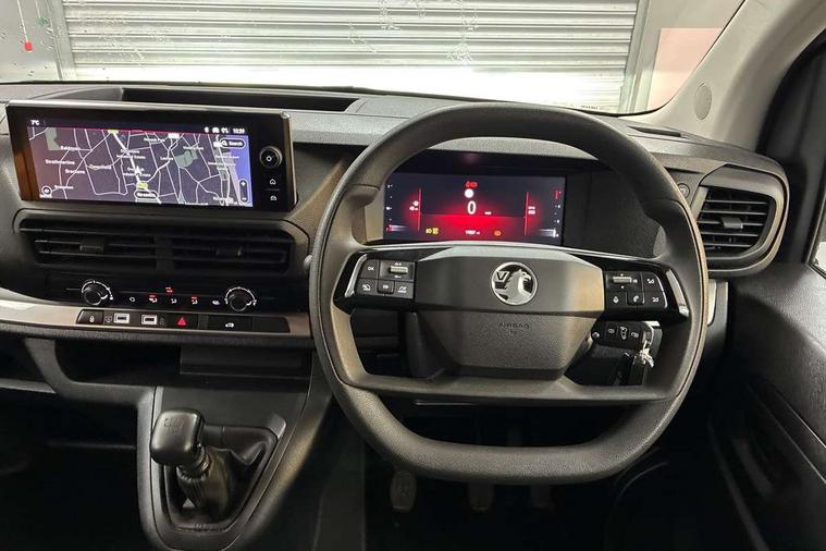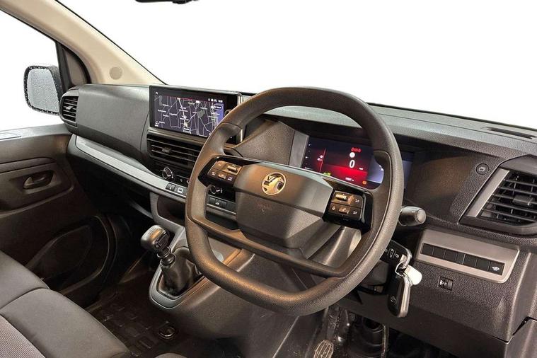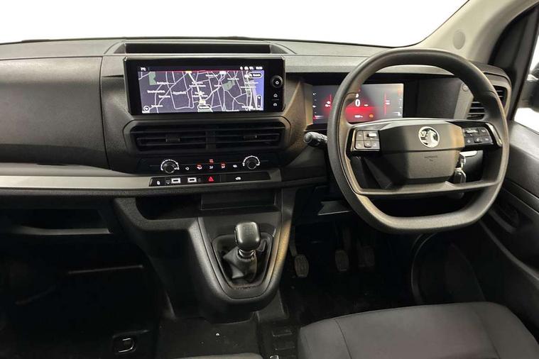 10" digital instrumental cluster, Central fascia display with digital clock, outside air temperature and audio information, Connectivity via BTA with RCA, Cruise control and speed limiter, Driver Attention Alert, level - 3, e-Call and b-Call, Electronic power steering (EPS), Energy absorbing steering column, Forward collision alert, Intelligent Speed Assist, Lane keeping assist, Live navigation plus, Mobile phone portal - Bluetooth, Vehicle microphone, Phone book access, Smartphone interface with Apple carplay/Android Auto, Multi-function trip computer, Multimedia pro nav system with AM/FM/DAB radio, 10" HD touchscreen with wireless mirror screen, 4G connectivity, Voice control and USB connection, Rear parking distance sensor, TPMS (Tyre pressure monitoring system), Vauxhall connect, Audio controls mounted on steering wheel, Flexible multi-functional short antenna (200mm), Two speakers and two tweeters, Automatic headlamps on/off, Black side protection mouldings, Body colour door handles, Body colour side sliding door rail cover, Body coloured front bumper, Body coloured rear corner bumper with black centre section, Eco LED headlamps with integrated daytime running lights, Electrically adjustable + heated door mirrors, Familial vizor, Front electric windows with one touch facility, High beam assist, Laminated acoustic windscreen, Lockable fuel filler cap, Offside and nearside sliding side access doors, Painted decor strips, Painted exterior rear view mirror cover, Rain sensitive windscreen wipers, Twin solid rear doors, 12V socket in lower glove box (1 only in cabin), Air recirculation facility, Chilled glovebox facility, Curitiba cloth upholstery, Driver's seat armrest, Dual passenger bench seat with fold-up outer seat, folddown writing table in central seat back and storage under, Ergonomic 6-way adjustable driver's seat with reach, rake, height and lumbar adjustment, Fixed floor mounted load restraint lashing eyes x8, Fold flat centre seat backrest, Interior roof trim, Manual air conditioning, Overhead console with 1 ceiling lamp (dome type and 3 lamps), Polyurethane steering wheel, Reach and rake adjustable steering wheel, TPO plastic flooring, USB socket in cabin (dashboard), Camera pack with connected NAVI - Vivaro, City pack with dynamic surround view - Vivaro, Dynamic Surround View with Connected Navi Pack - Vivaro, Automatic fuel cut-off and door unlocking in event of accident, Driver and passenger airbags, Height adjustable lap and diagonal inertia reel front seatbelts, Passenger airbag deactivation manually, Dashboard mounted central locking push button and auto locking above 7mph, Immobiliser, Remote control central locking and deadlocking, Remote control ultrasonic security alarm system, Selective door locking, Two keys with integral remote, 22.5 litres AdBlue tank, 70L fuel tank, ABS, Advanced emergency braking system (AEBS), EBA, Electronic brake force distribution (EBFD), ESC, Floor mounted handbrake lever, Hill start assist, Manual parking brake, Traction control, Mistral black dashboard trim with liquid paladium decor strip in mid-section, Michelin Agilis tyres - 215/60 R17C,