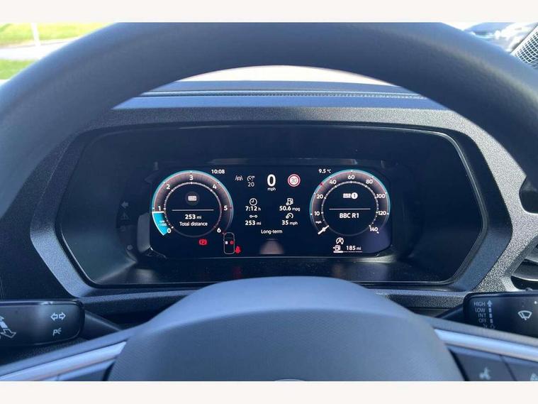 Bluetooth - Mobile phone interface, Car2X technology, Driver alert system, eCall emergency system, Intelligent Speed Assist, Lane assist, Seatbelt warning indicator, Service indicator, Start-stop system with regenerative braking, 2 USB interfaces type C in dashboard, DAB Radio, We Connect Basic Preparation, Automatic hazard light activation under emergency braking, Black front and rear bumpers, Electric front windows, Heat insulating windscreen, Roof rail preparation, Windscreen wiper with variable intermittent delay and wash-wipe system, Dimming breakaway interior rear view mirror, Electronically controlled heating system, Interior light in headliner incorporting LED technology, Lockable glove compartment door with light, Manual heating and ventilation system, Manual height adjustment for front seats, Reach and rake adjustable steering column, Six lashing points for securing loads, 3-point seat belts in front, with pretensioner and height adjustment, Driver and front passenger airbag with front passenger airbag deactivation, Tyre pressure monitoring system, Anti-theft alarm system, interior monitoring, backup horn, and towing protection, Electronic engine immobiliser, Remote central locking with deadlocks, interior locking, Anti locking braking system (ABS), Automatic post collision braking system, Autonomous Emergency Braking Front Assist with Pedestrian Monitoring, Brake assist, Diesel particulate filter, Electric parking brake with auto hold function, Electronic brake force distribution (EBD), Electronic differential lock (EDL), Electronic stabilisation programme (ESP), Engine drag torque control (MSR), Hill hold assist, Traction control system (TCS), Decorative beige birch vein inserts, Full size wheel trims,