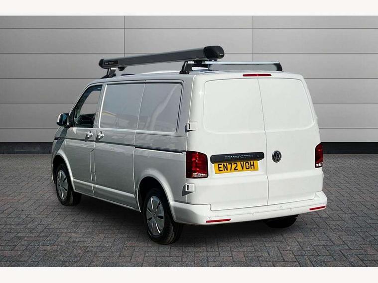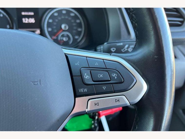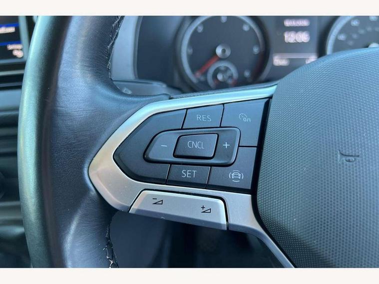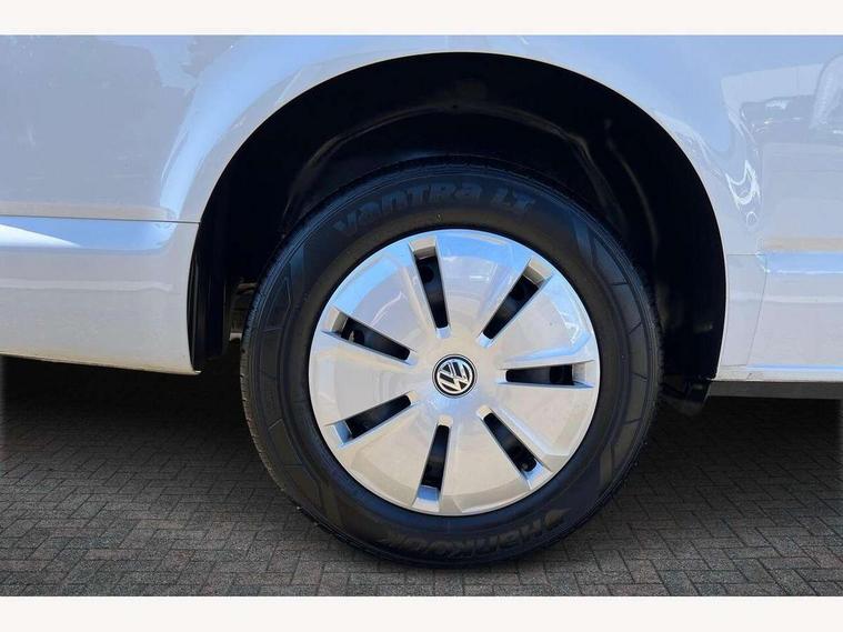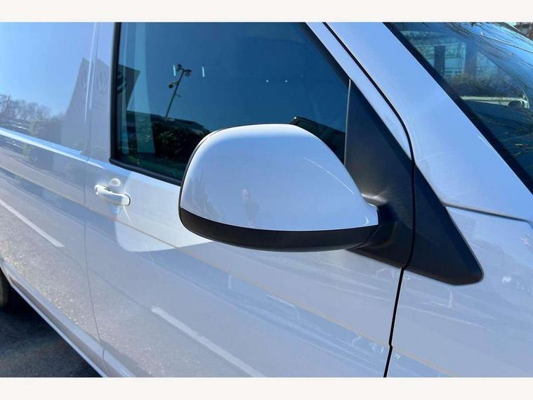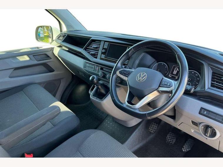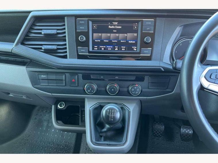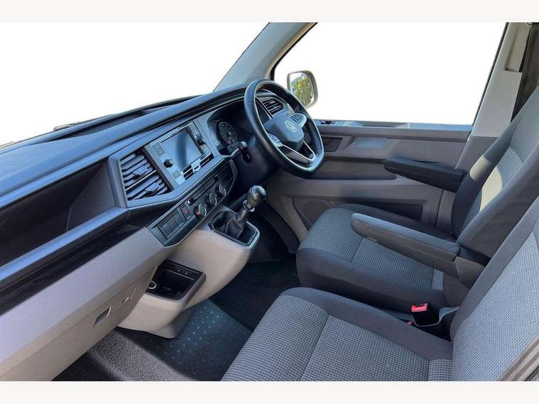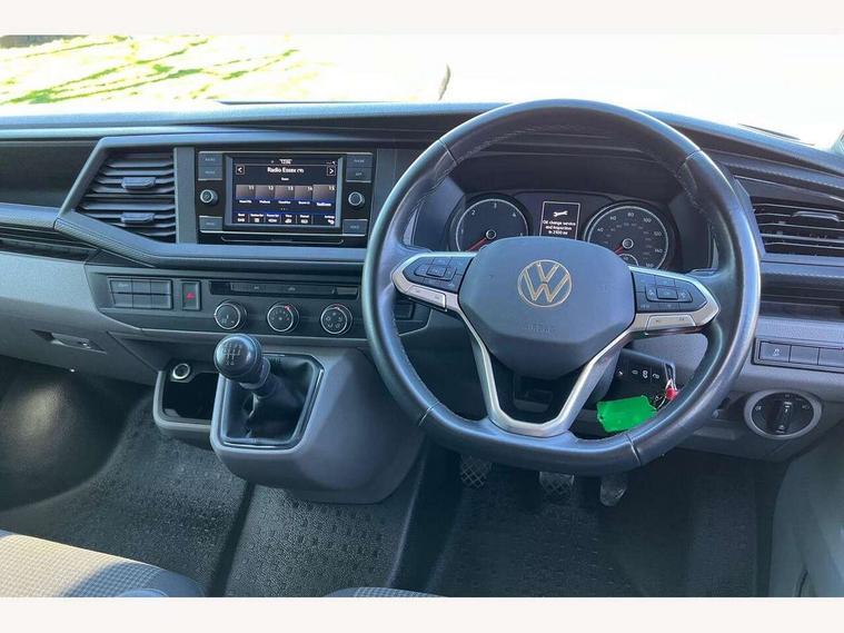 Cross wind assist, Dimmable illuminated instruments, Driver alert with Multi-function display plus, eCall emergency system, Forward collision warning front assist with autonomous emergency braking, Mobile phone interface, Multi function display plus with black and white display, 2 USB interfaces type C in dashboard, 4 speakers with 2 tweeters and 2 woofers, Composition colour radio with 6.5" touchscreen, Digital radio reception (DAB+), Volkswagen app connect, 4 stages windshield wiper intermittent control for windshield wipers, Closing rear wing door with unlatching from the inside, H7 twin halogen headlamps, Heat insulating glass (green) in cab and passenger/load compartment, Heat insulating windshield made of laminated glass, Left convex exterior mirror, Rear wing doors without window apertures, Right convex exterior mirror, Separate Daytime running lights, Transporter nameplate on the rear fender, Unpainted radiator grille with 2 chrome trims, 3 spoke leather wrapped multi function steering wheel, Comfort headliner in cab, hardboard roof trim in passenger and load compartment, Dust/pollen filter, Folding grab handles on roof frame, Front and rear left without window closed side panel in load compartment, Front seats on the right in 1st row of seat, Glove compartment without illumination, Heavy duty tool kit and jack, High partition, Interior plastic loading edge protection, LED Interior lighting in load and passenger compartment, Manual adjustable lumbar support for right single seat in 1st row seats, Standard lower part dashboard in palladium, Without breakaway interior rear view mirror, Without refrigerant, Without right side window apertures in passenger and load compartment, Non smoker pack - Transporter, 3 point height adjustable seat belts on outer seats cab with electric pretensioners, Driver and front passenger airbag with front passenger airbag deactivation, Warning buzzer and light for driver and front passenger seat belt not fastened, Without child safety lock in passenger compartment, Electronic immobiliser, Wheel bolts without wheel locks, 16" chassis with 16" brake system, Diesel particulate filter, Electronic stability control, ABS, ASR with deactivation button, hill start assist and brake assist system, Standard anti drum measures, Start/stop system with regenerative breaking,