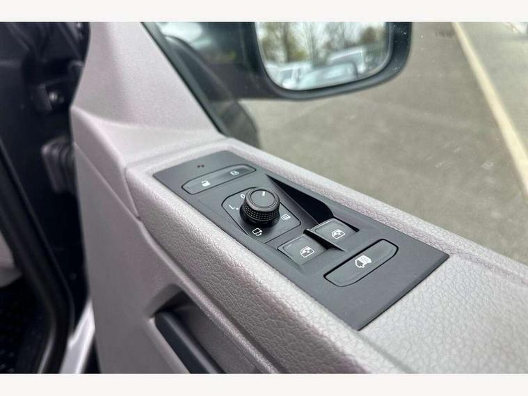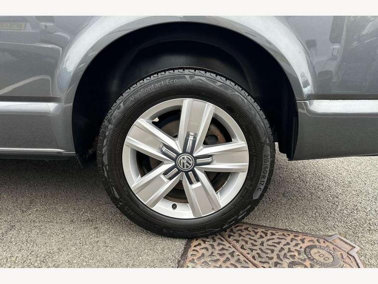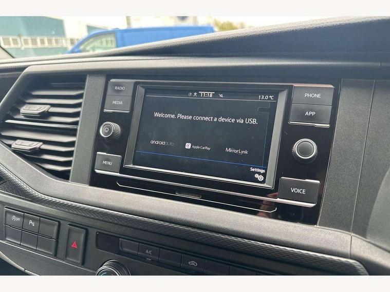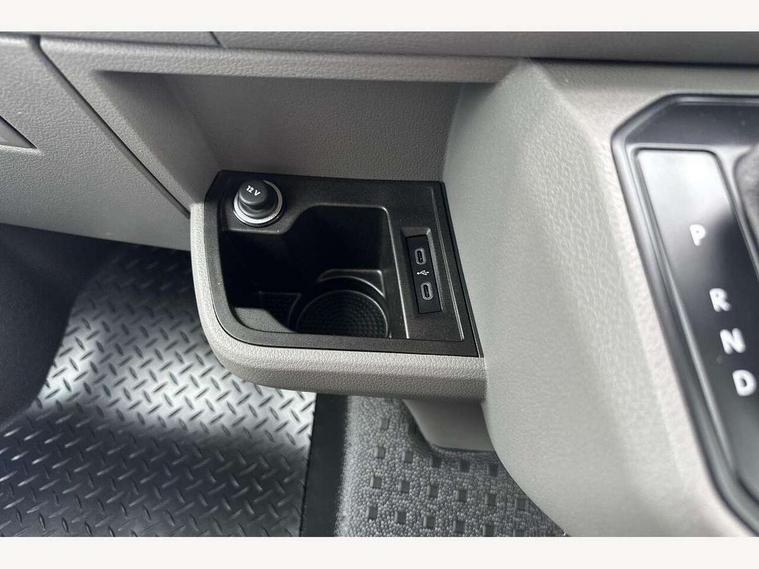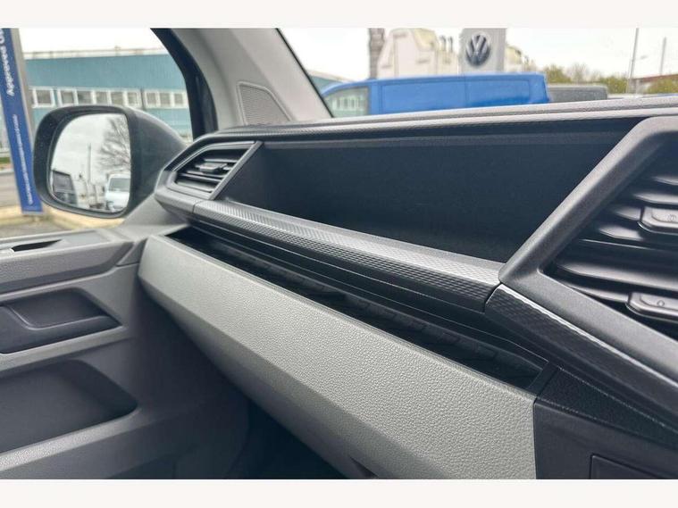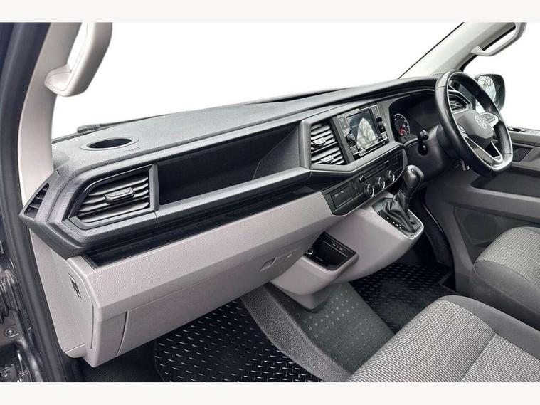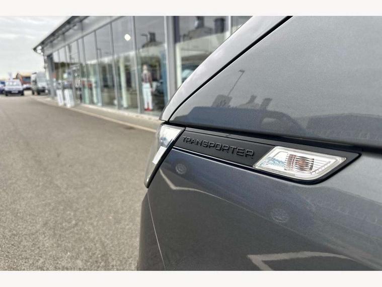 Adaptive cruise control, Cross wind assist, Dimmable illuminated instruments, Driver alert with Multi-function display plus, eCall emergency system, Forward collision warning front assist with autonomous emergency braking, Mobile phone interface, Multi function display plus with black and white display, 2 USB interfaces type C in dashboard, 4 speakers with 2 tweeters and 2 woofers, Composition colour radio with 6.5" touchscreen, Digital radio reception (DAB+), Volkswagen app connect, Automatic headlight control, leaving home and manual coming home feature, Closing rear wing door with unlatching from the inside, Front fog lamps with cornering light, Heat insulating glass (green) in cab and passenger/load compartment, Heated front windscreen, Left convex exterior mirror, Power folding adjustable door mirrors with separately heated, Radiator grille with 2 chrome trims, Rear wing doors without window apertures, Right convex exterior mirror, Transporter nameplate on the rear fender, Windshield wiper intermittent control with rain sensor for windshield wipers, 3 spoke leather wrapped multi function steering wheel, Auto dimming breakaway interior rear view mirror, Comfort headliner in cab, hardboard roof trim in passenger and load compartment, Dust/pollen filter, Front and rear left without window closed side panel in load compartment, Front seats on the right in 1st row of seat, Glove compartment with illumination, Heavy duty tool kit and jack, High partition, Interior plastic loading edge protection, LED Interior lighting in load and passenger compartment, Manual adjustable lumbar support for right single seat in 1st row seats, Refrigerant R134a, Standard lower part dashboard in palladium, Storage compartments on cab seats and reading light, Without right side window apertures in passenger and load compartment, Comfort pack - Transporter, Exterior pack without fog light- Transporter, Non smoker pack - Transporter, 3 point height adjustable seat belts on outer seats cab with electric pretensioners, Driver and front passenger airbag with front passenger airbag deactivation, Warning buzzer and light for driver and front passenger seat belt not fastened, Without child safety lock in passenger compartment, Anti theft alarm system with interior monitoring in cab, backup horn and towing protection, Lockable wheel bolts, 16" chassis with 16" brake system, Diesel particulate filter, Electronic stability control, ABS, ASR with deactivation button, hill start assist and brake assist system, Start/stop system with regenerative breaking, 17" Devonport alloy wheels,