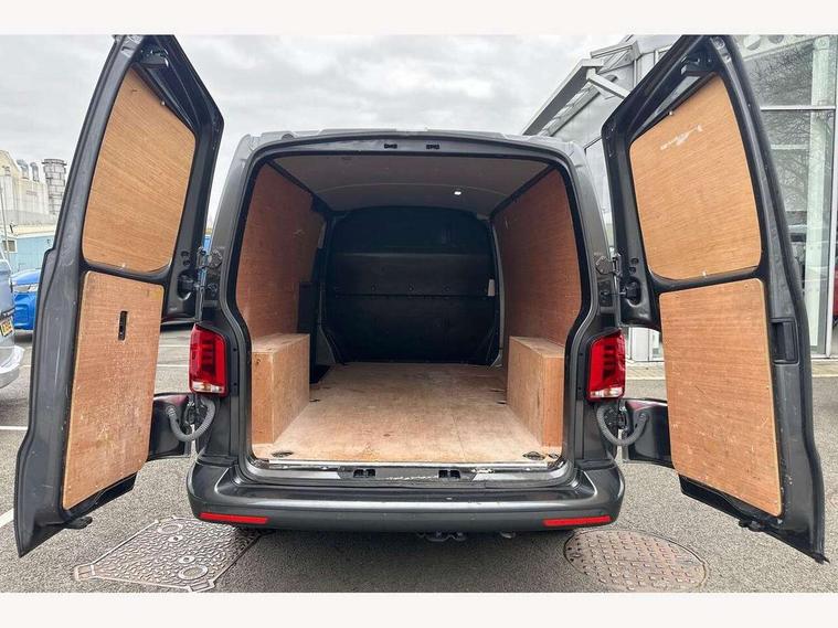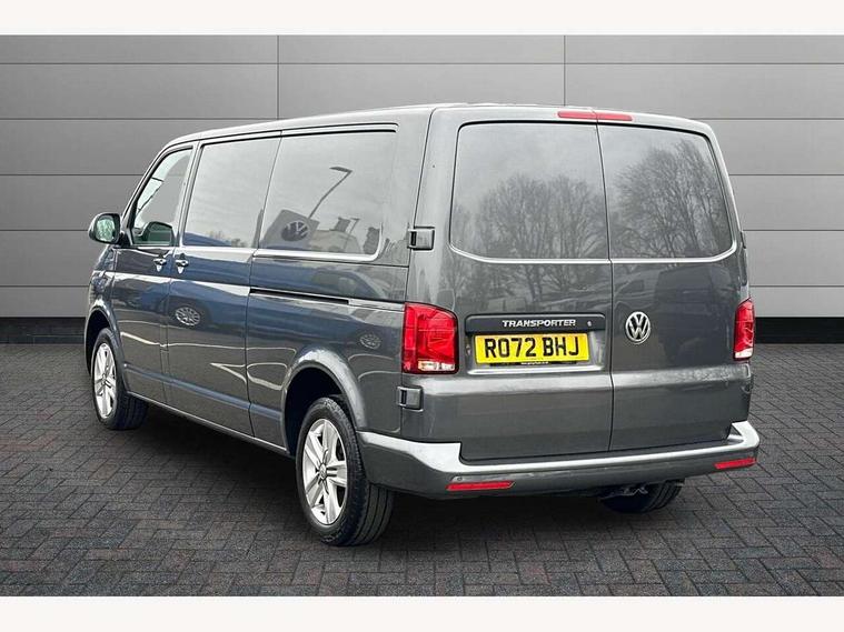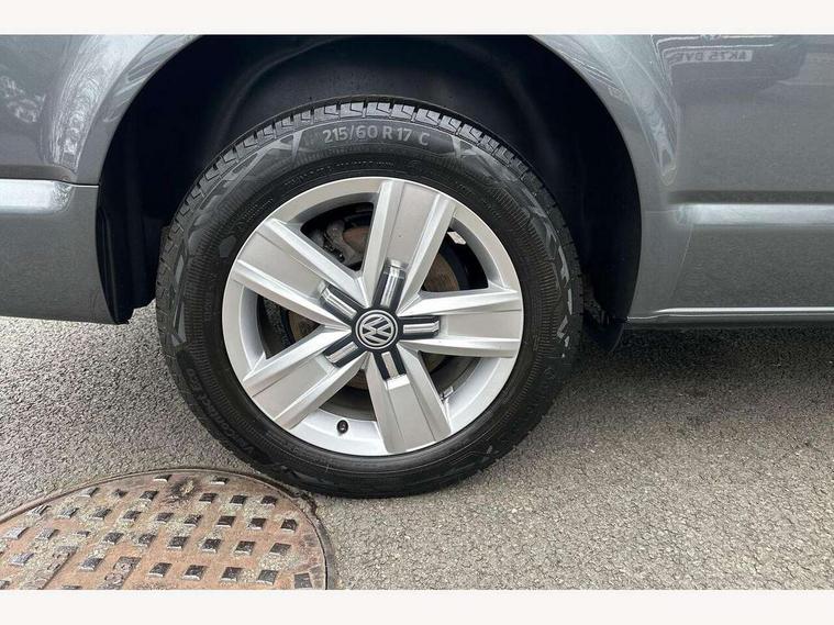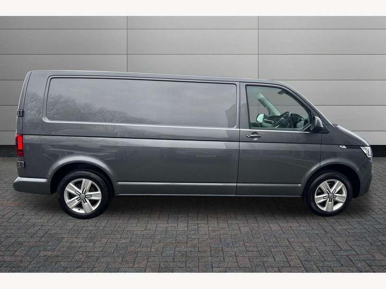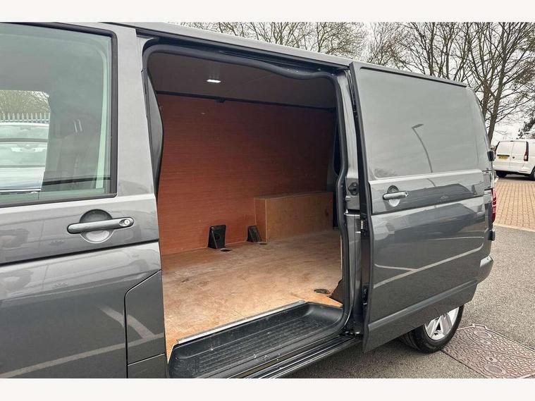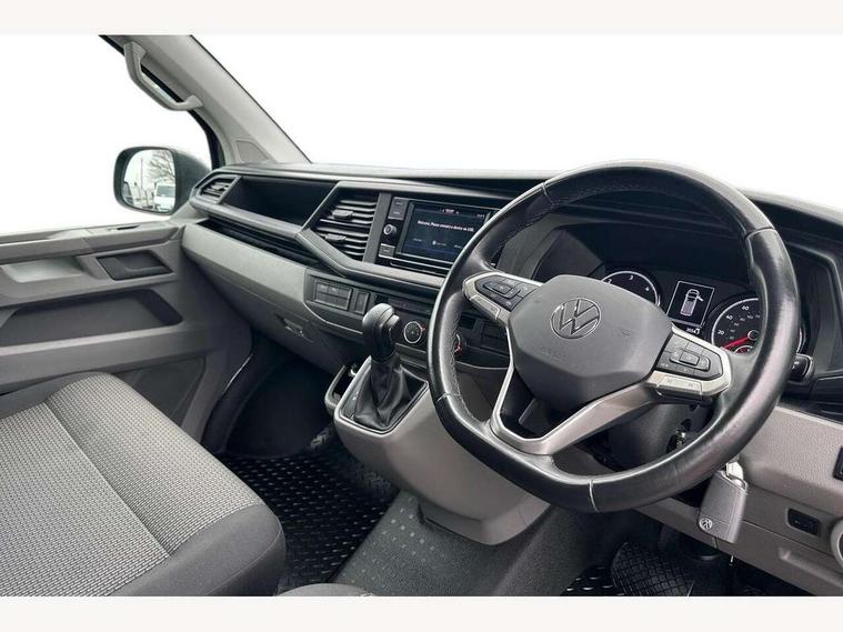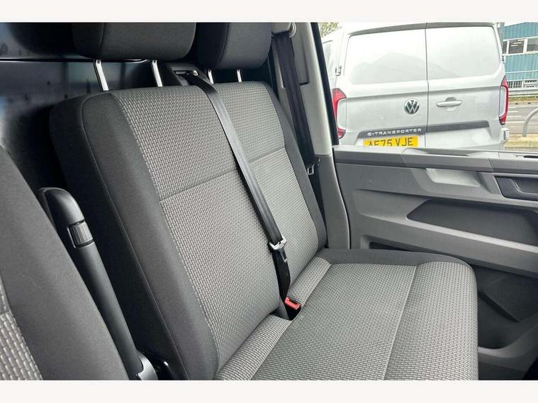 Adaptive cruise control, Cross wind assist, Dimmable illuminated instruments, Driver alert with Multi-function display plus, eCall emergency system, Forward collision warning front assist with autonomous emergency braking, Mobile phone interface, Multi function display plus with black and white display, 2 USB interfaces type C in dashboard, 4 speakers with 2 tweeters and 2 woofers, Composition colour radio with 6.5" touchscreen, Digital radio reception (DAB+), Volkswagen app connect, Automatic headlight control, leaving home and manual coming home feature, Closing rear wing door with unlatching from the inside, Front fog lamps with cornering light, Heat insulating glass (green) in cab and passenger/load compartment, Heated front windscreen, Left convex exterior mirror, Power folding adjustable door mirrors with separately heated, Radiator grille with 2 chrome trims, Rear wing doors without window apertures, Right convex exterior mirror, Transporter nameplate on the rear fender, Windshield wiper intermittent control with rain sensor for windshield wipers, 3 spoke leather wrapped multi function steering wheel, Auto dimming breakaway interior rear view mirror, Comfort headliner in cab, hardboard roof trim in passenger and load compartment, Dust/pollen filter, Front and rear left without window closed side panel in load compartment, Front seats on the right in 1st row of seat, Glove compartment with illumination, Heavy duty tool kit and jack, High partition, Interior plastic loading edge protection, LED Interior lighting in load and passenger compartment, Manual adjustable lumbar support for right single seat in 1st row seats, Refrigerant R134a, Standard lower part dashboard in palladium, Storage compartments on cab seats and reading light, Without right side window apertures in passenger and load compartment, Comfort pack - Transporter, Exterior pack without fog light- Transporter, Non smoker pack - Transporter, 3 point height adjustable seat belts on outer seats cab with electric pretensioners, Driver and front passenger airbag with front passenger airbag deactivation, Warning buzzer and light for driver and front passenger seat belt not fastened, Without child safety lock in passenger compartment, Anti theft alarm system with interior monitoring in cab, backup horn and towing protection, Lockable wheel bolts, 16" chassis with 16" brake system, Diesel particulate filter, Electronic stability control, ABS, ASR with deactivation button, hill start assist and brake assist system, Start/stop system with regenerative breaking, 17" Devonport alloy wheels,