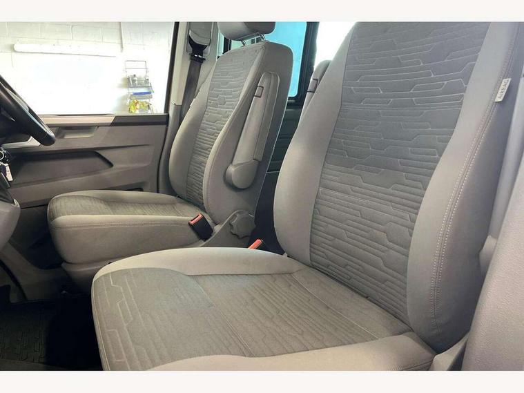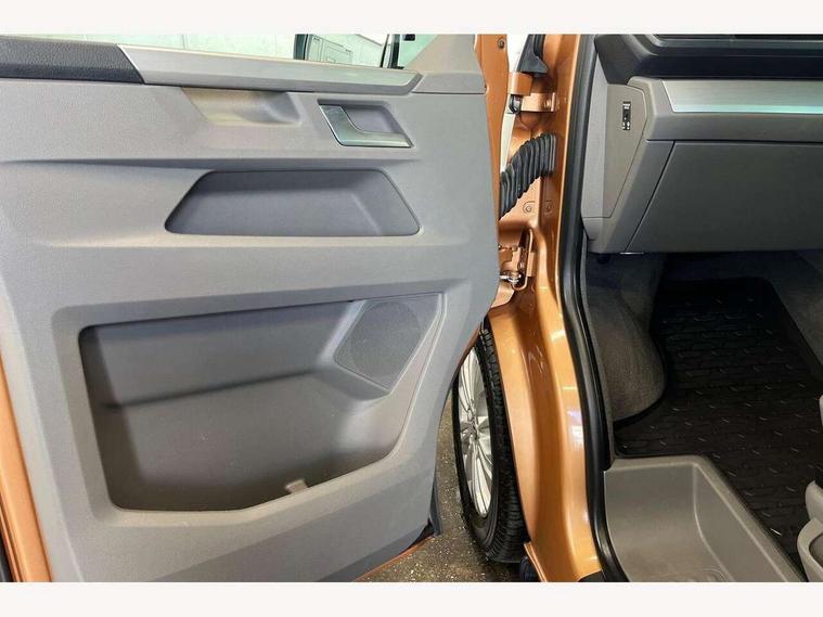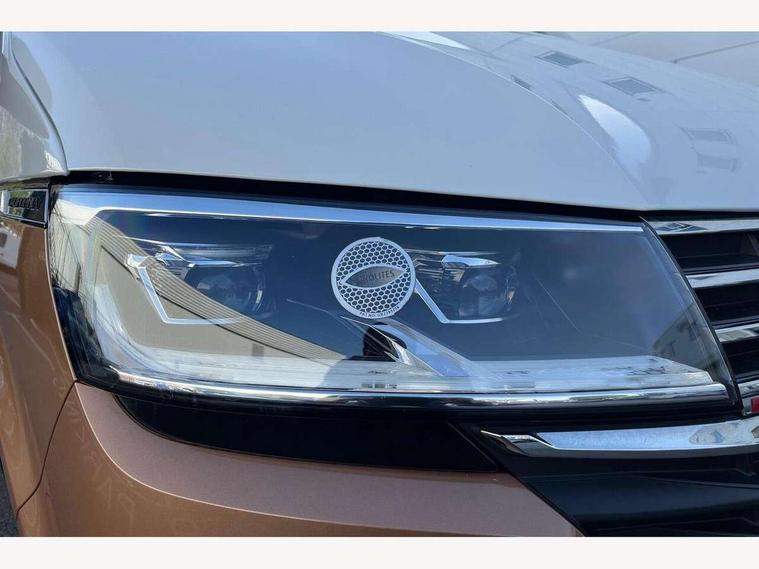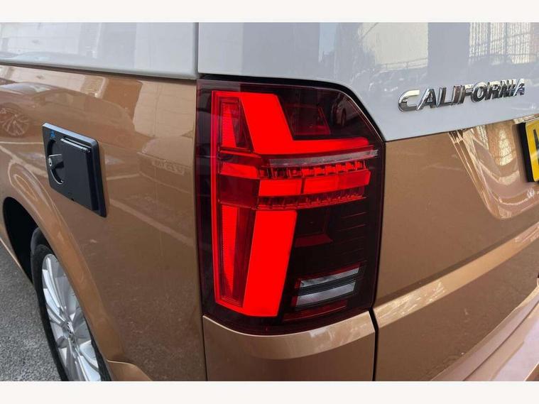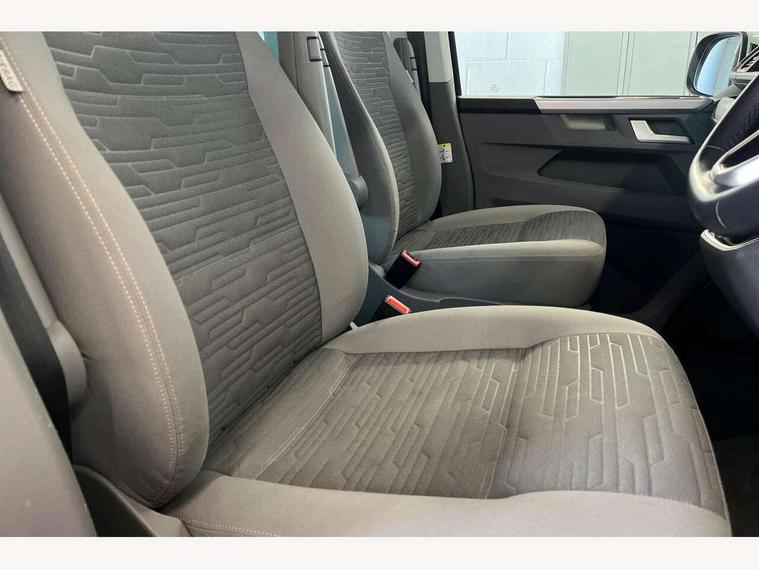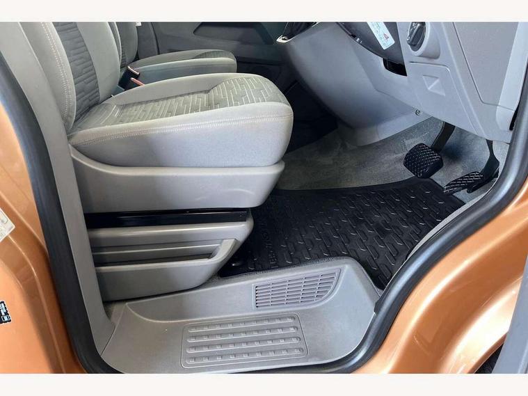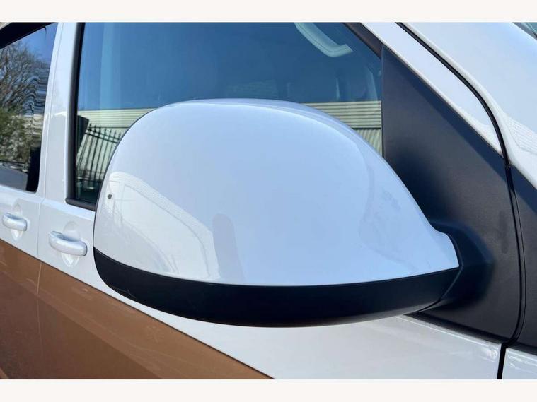 8" touch screen, Cross wind assist, Digital cockpit and driver alert system, eCall emergency system, Mobile phone interface, Navigation system preparation, Service interval indicator, Side assist, Speed limiter, Start/stop system with regenerative braking, Tailgate latch without unlocking function from inside, Tailgate with window aperture and with power latching, Voice control system, Wired and wireless app connect, 17 inch chassis with 17 inch disc brakes in front and 16 inch disc brake in rear, 2 additional batteries with free maintanace including 1 additional battery with cut-off relay, 70 litre fuel tank, 2 (type C) USB interfaces in dashboard, 8 speakers (4 tweeters + 4 woofers), Digital radio reception (DAB+), Regional code ECE for radio, Additional dust seals on the outside, Automatic headlight range control, Body coloured door handles, Body coloured door mirrors, California nameplate on the fender and on the rear, Electrohydrolic operated pop up roof with 3 windows and 1 front aperture, Front fog lights with cornering function, Heat insulating cab side windows, passenger compartment side windows tinted and with double glazing, Heated washer nozzles in front and washer fluid level indicator, High level 3rd brake light, LED headlamps with LED separate daytime running light, Left convex exterior mirror, Mounting rails on the roof (preparation for movable roof rack), Power adjustable, heated, power folding exterior mirrors, folding possible via vehicle key, Privacy glass with heat insulation, Radiator grille painted in black with 5 chrome trims, additional chrome trim at lower radiator grille, Rear boot, Rear side wing doors, Rear window with insulating glass, rear window wiper and washer system, Right convex exterior mirror, Sliding window in sliding door and fixed window in rear passenger compartment, right, Sliding window with fly screen in passenger compartment at left, Sliding window with fly screen in passenger compartment at right, Without left sliding door in load/passenger compartment, 1 waste bin in door storage compartment of the cab, 12V outlets in dashboard X 2, 2 velour floor mats, 2-seater bench/bed, movable along rail system and folds down into a two person bed, 230V inlet with charging feature for vehicle batteries and 230V outlet in the interior, 3 spoke leather wrapped multifunction steering wheel, Allergen filter, Armrest for both cab seats, Camping table for inside/outside in sliding door and 2 folding chairs in tailgate, Child seat anchors ISOFIX and top tether for Multivan/California in 2nd to 4th row of seats, Climatronic 3 zone air conditioning with 2nd evaporator, auxiliary heater, air conditioned headliner and additional passenger control, Dimmable illuminated instruments, Electromechanical speed sensitive power steering, height and longitudinally adjustable steering column, Front head restraints, Fully functional kitchen with gas hob, sink and 42 litre compressor cool box, Glove compartment with illumination, Grab handles on A pillar for access, on driver and front passenger side, Heated driver and front passenger seats, Illuminated steps in passenger/load compartment, Illuminated sun visors with mirror and airbag label on front passenger sun visor, Interior light concept for camper with comfort in passenger compartment incl additional LED light in the pop up roof for the loft bed, in the tailgate, Interior loading edge protection in plastic, Jack and tool kit, Manually adjustable lumbar supports for left and right single seat in the 1st row of seats, Operating voltage 12V including 230V outlet on driver seat, Plastic floor covering in passenger/load compartment, Programmable parking heater with radio remote control and auxiliary heater, Rear head restraints, Refrigerant R1234yf, Roof bed (2000 x 1200 mm) with spring plates and mattress, Soft folding grab handles on roof frame, Special interior noise suppression measures, Special sound deadening measures in cab and passenger compartment, Step illumination with California lettering, Swivel seat on the left, with lumbar support in 1st row of seats, Swivel seat on the right, with lumbar support in 1st row of seats, Waeco compressor fridge, Without height adjustment for driver and single passenger seats, Lights and vision pack - California, Smokers pack - California, Airbags - Drivers and front passengers side and curtain airbags, Driver/Front Passenger airbags, Electronic stability control, ABS, ASR, EDL, brake assist system, Front assist with Autonomous emergency braking for Adaptive cruise control (ACC), Height adjustable 3 point seat belts on outer seats in cab with electric pretensioners, Hill start assist, Manual passenger airbag deactivation function, Power operated child safety locks, Single tone horn, Warning buzzer and light for driver seat belt not fastened, Anti theft alarm system with interior monitoring in cab, backup horn and towing protection, Central locking system with radio remote control, system controls inside and safelock, Lockable wheel bolts, Comfort dashboard lower part in palladium with chrome elements and bezels painted in black,