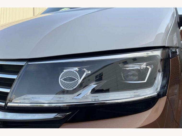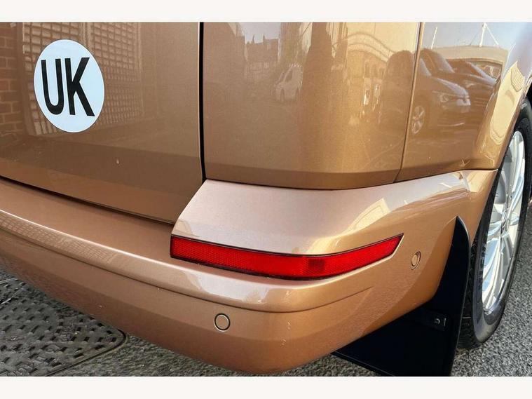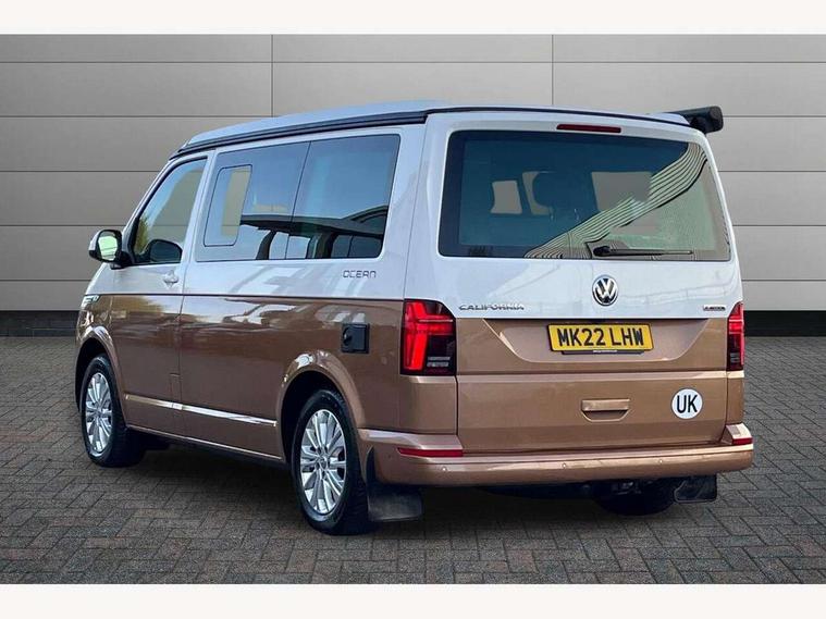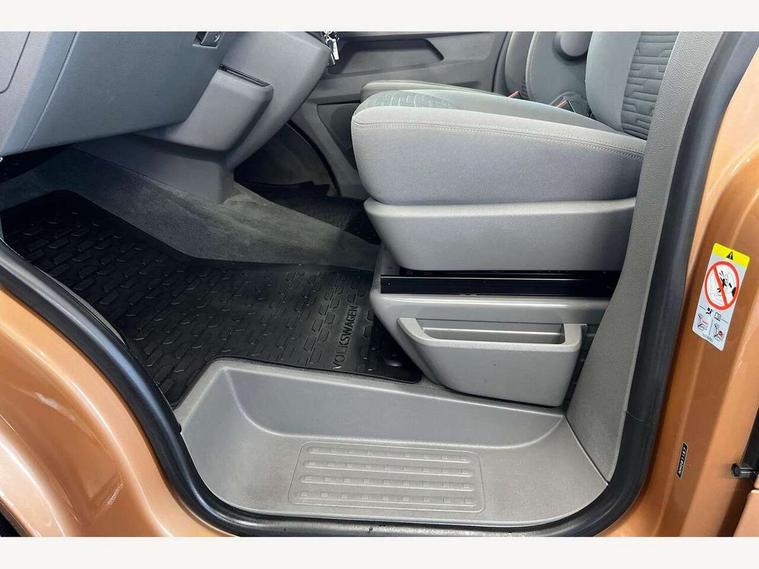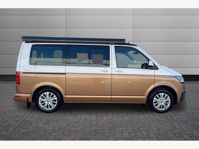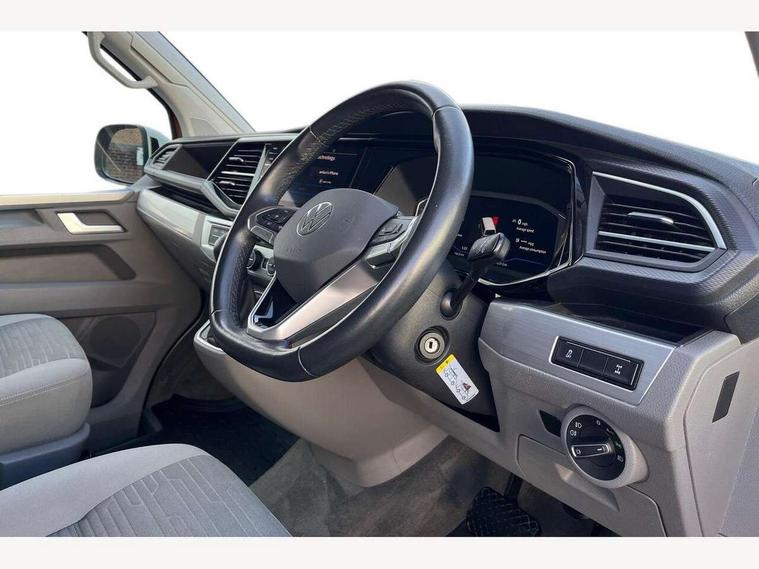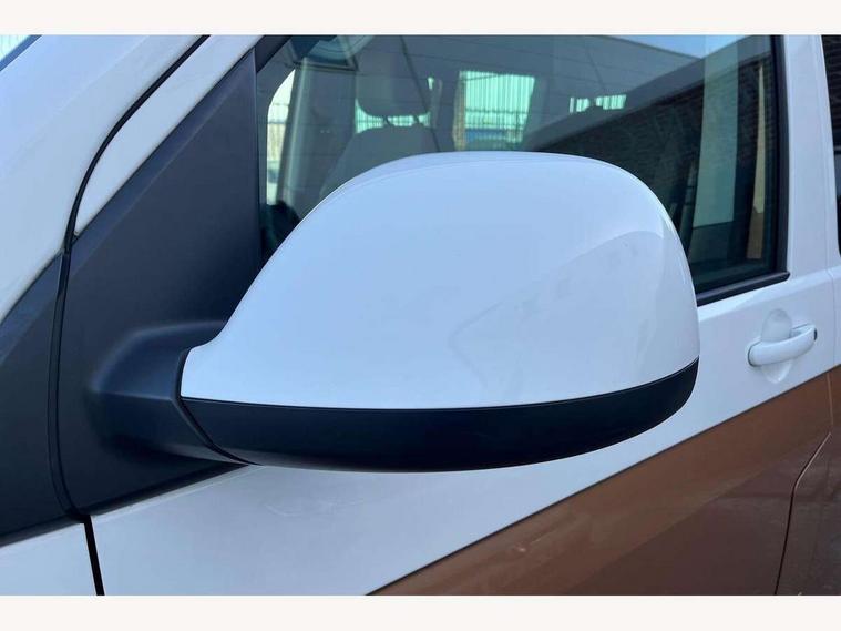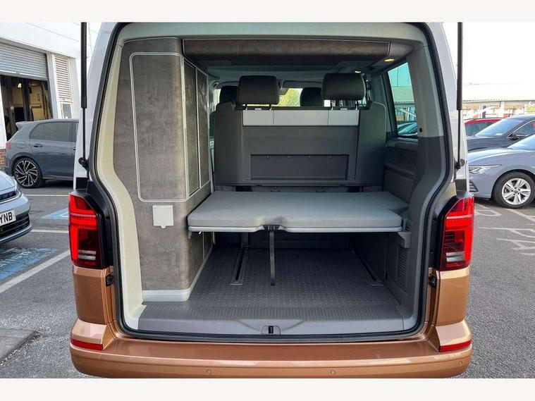 8" touch screen, Cross wind assist, Digital cockpit and driver alert system, eCall emergency system, Mobile phone interface, Navigation system preparation, Service interval indicator, Side assist, Speed limiter, Start/stop system with regenerative braking, Tailgate latch without unlocking function from inside, Tailgate with window aperture and with power latching, Voice control system, Wired and wireless app connect, 17 inch chassis with 17 inch disc brakes in front and 16 inch disc brake in rear, 2 additional batteries with free maintanace including 1 additional battery with cut-off relay, 70 litre fuel tank, 2 (type C) USB interfaces in dashboard, 8 speakers (4 tweeters + 4 woofers), Digital radio reception (DAB+), Regional code ECE for radio, Additional dust seals on the outside, Automatic headlight range control, Body coloured door handles, Body coloured door mirrors, California nameplate on the fender and on the rear, Electrohydrolic operated pop up roof with 3 windows and 1 front aperture, Front fog lights with cornering function, Heat insulating cab side windows, passenger compartment side windows tinted and with double glazing, Heated washer nozzles in front and washer fluid level indicator, High level 3rd brake light, LED headlamps with LED separate daytime running light, Left convex exterior mirror, Mounting rails on the roof (preparation for movable roof rack), Power adjustable, heated, power folding exterior mirrors, folding possible via vehicle key, Privacy glass with heat insulation, Radiator grille painted in black with 5 chrome trims, additional chrome trim at lower radiator grille, Rear boot, Rear side wing doors, Rear window with insulating glass, rear window wiper and washer system, Right convex exterior mirror, Sliding window in sliding door and fixed window in rear passenger compartment, right, Sliding window with fly screen in passenger compartment at left, Sliding window with fly screen in passenger compartment at right, Without left sliding door in load/passenger compartment, 1 waste bin in door storage compartment of the cab, 12V outlets in dashboard X 2, 2 velour floor mats, 2-seater bench/bed, movable along rail system and folds down into a two person bed, 230V inlet with charging feature for vehicle batteries and 230V outlet in the interior, 3 spoke leather wrapped multifunction steering wheel, Allergen filter, Armrest for both cab seats, Camping table for inside/outside in sliding door and 2 folding chairs in tailgate, Child seat anchors ISOFIX and top tether for Multivan/California in 2nd to 4th row of seats, Climatronic 3 zone air conditioning with 2nd evaporator, auxiliary heater, air conditioned headliner and additional passenger control, Dimmable illuminated instruments, Electromechanical speed sensitive power steering, height and longitudinally adjustable steering column, Front head restraints, Fully functional kitchen with gas hob, sink and 42 litre compressor cool box, Glove compartment with illumination, Grab handles on A pillar for access, on driver and front passenger side, Heated driver and front passenger seats, Illuminated steps in passenger/load compartment, Illuminated sun visors with mirror and airbag label on front passenger sun visor, Interior light concept for camper with comfort in passenger compartment incl additional LED light in the pop up roof for the loft bed, in the tailgate, Interior loading edge protection in plastic, Jack and tool kit, Manually adjustable lumbar supports for left and right single seat in the 1st row of seats, Operating voltage 12V including 230V outlet on driver seat, Plastic floor covering in passenger/load compartment, Programmable parking heater with radio remote control and auxiliary heater, Rear head restraints, Refrigerant R1234yf, Roof bed (2000 x 1200 mm) with spring plates and mattress, Soft folding grab handles on roof frame, Special interior noise suppression measures, Special sound deadening measures in cab and passenger compartment, Step illumination with California lettering, Swivel seat on the left, with lumbar support in 1st row of seats, Swivel seat on the right, with lumbar support in 1st row of seats, Waeco compressor fridge, Without height adjustment for driver and single passenger seats, Lights and vision pack - California, Smokers pack - California, Airbags - Drivers and front passengers side and curtain airbags, Driver/Front Passenger airbags, Electronic stability control, ABS, ASR, EDL, brake assist system, Front assist with Autonomous emergency braking for Adaptive cruise control (ACC), Height adjustable 3 point seat belts on outer seats in cab with electric pretensioners, Hill start assist, Manual passenger airbag deactivation function, Power operated child safety locks, Single tone horn, Warning buzzer and light for driver seat belt not fastened, Anti theft alarm system with interior monitoring in cab, backup horn and towing protection, Central locking system with radio remote control, system controls inside and safelock, Lockable wheel bolts, Comfort dashboard lower part in palladium with chrome elements and bezels painted in black,