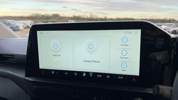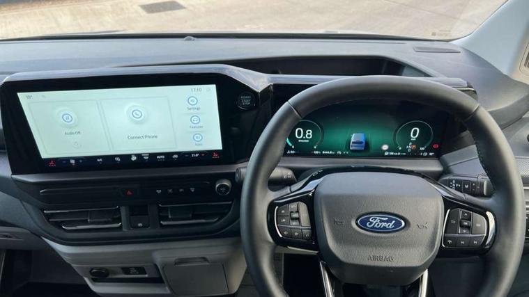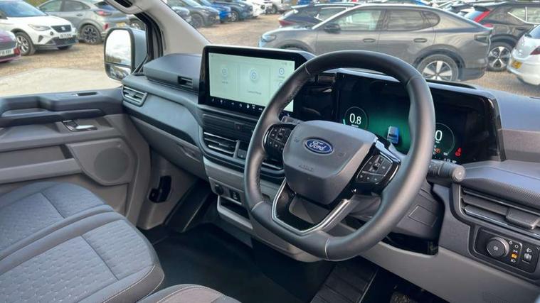13" Touchscreen, 5G embedded modem, AECS NO SMS/Roll Detect 2G, PAS, Tyre pressure monitor, SYNC 4 - Android Auto/Apple Car Play, advance speech recognition, over the air update capability, Automatic headlights, Automatic windscreen wipers, Body coloured door mirrors, Body coloured front bumper, Body coloured rear bumpers, Daytime running lights, Electric front windows with one touch facility for driver and front passenger, Front mud flaps, Front splash guards, Low roof line, Quickclear front window defroster, Rear cargo hinged door, Rear splash guards, Trailer sway control, 6 Load compartment tie down loops, Courtesy light, Interior grab handle with driver's sunglasses holder, LED lights, Locking glove box lid, Sensico gearshift knob, 2 remote keys, Alcohol Interlock wiring preparation pack, Keyless entry and start, Locking wheel lug nut, Thatcham category 1 alarm, 20L AdBlue tank, ABS, Diesel particulate filter, ESP, Hill launch assist, Traction control, Full wheelcovers,