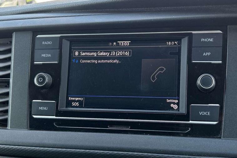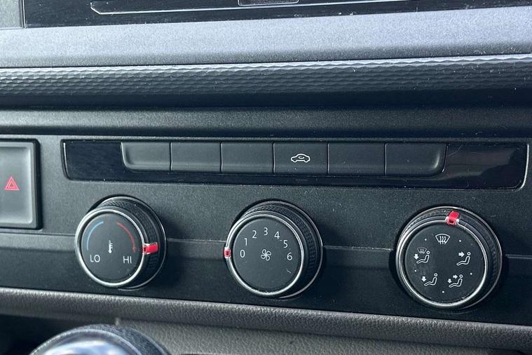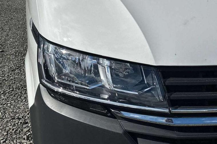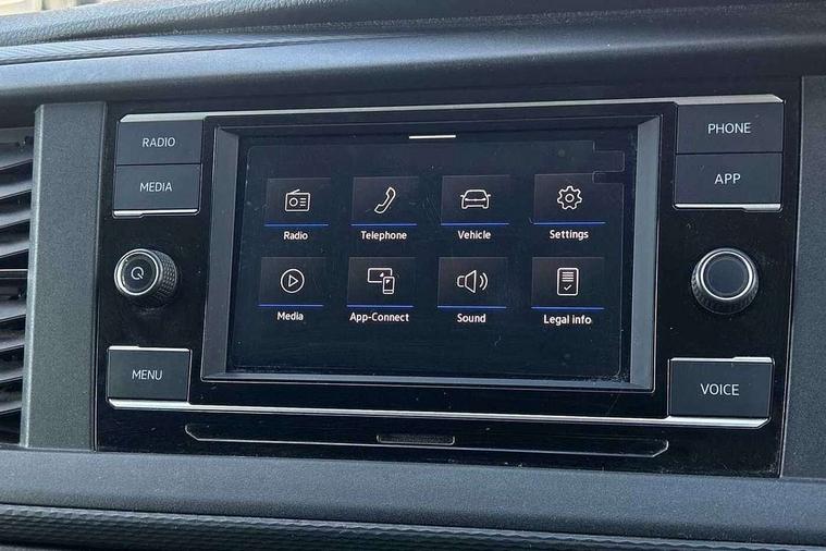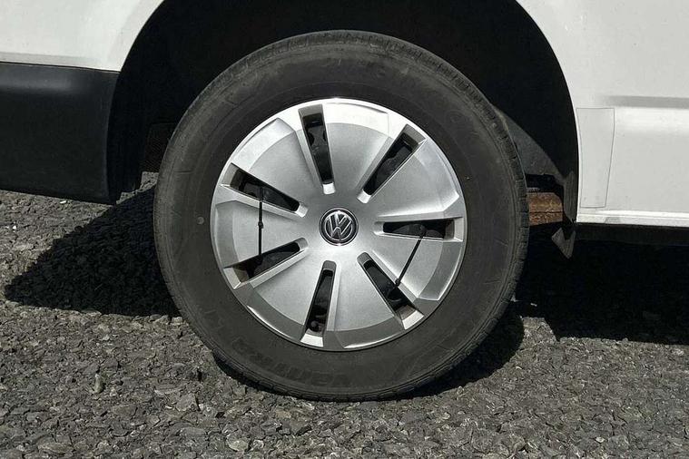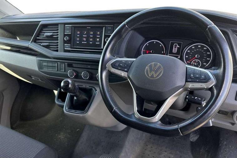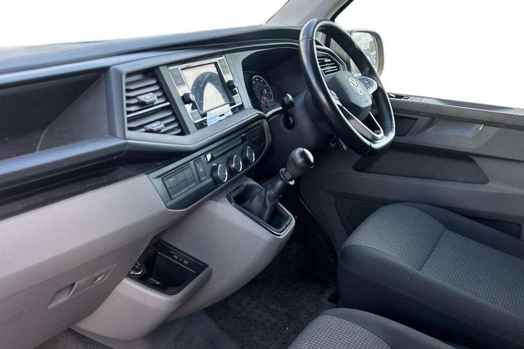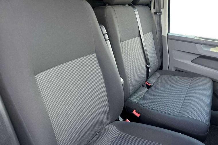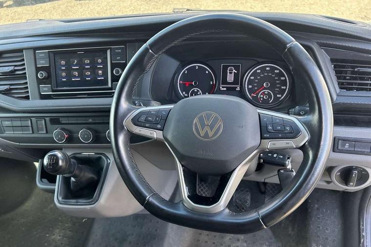 Cross wind assist, Dimmable illuminated instruments, Driver alert with Multi-function display plus, eCall emergency system, Forward collision warning front assist with autonomous emergency braking, Mobile phone interface, Multi function display plus with black and white display, 2 USB interfaces type C in dashboard, 4 speakers with 2 tweeters and 2 woofers, Composition colour radio with 6.5" touchscreen, Digital radio reception (DAB+), Volkswagen app connect, 4 stages windshield wiper intermittent control for windshield wipers, Closing rear wing door with unlatching from the inside, H7 twin halogen headlamps, Heat insulating glass (green) in cab and passenger/load compartment, Heat insulating windshield made of laminated glass, Left convex exterior mirror, Rear wing doors without window apertures, Right convex exterior mirror, Separate Daytime running lights, Transporter nameplate on the rear fender, Unpainted radiator grille with 2 chrome trims, 3 spoke leather wrapped multi function steering wheel, Comfort headliner in cab, hardboard roof trim in passenger and load compartment, Dust/pollen filter, Folding grab handles on roof frame, Front and rear left without window closed side panel in load compartment, Front seats on the right in 1st row of seat, Glove compartment without illumination, Heavy duty tool kit and jack, High partition, Interior plastic loading edge protection, LED Interior lighting in load and passenger compartment, Manual adjustable lumbar support for right single seat in 1st row seats, Standard lower part dashboard in palladium, Without breakaway interior rear view mirror, Without refrigerant, Without right side window apertures in passenger and load compartment, Non smoker pack - Transporter, 3 point height adjustable seat belts on outer seats cab with electric pretensioners, Driver and front passenger airbag with front passenger airbag deactivation, Warning buzzer and light for driver and front passenger seat belt not fastened, Without child safety lock in passenger compartment, Electronic immobiliser, Wheel bolts without wheel locks, 16" chassis with 16" brake system, Diesel particulate filter, Electronic stability control, ABS, ASR with deactivation button, hill start assist and brake assist system, Standard anti drum measures, Start/stop system with regenerative breaking,
