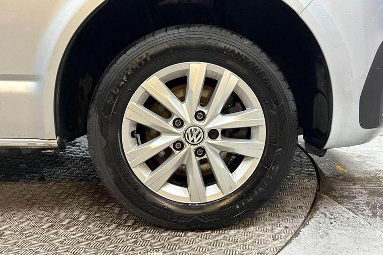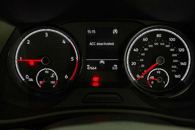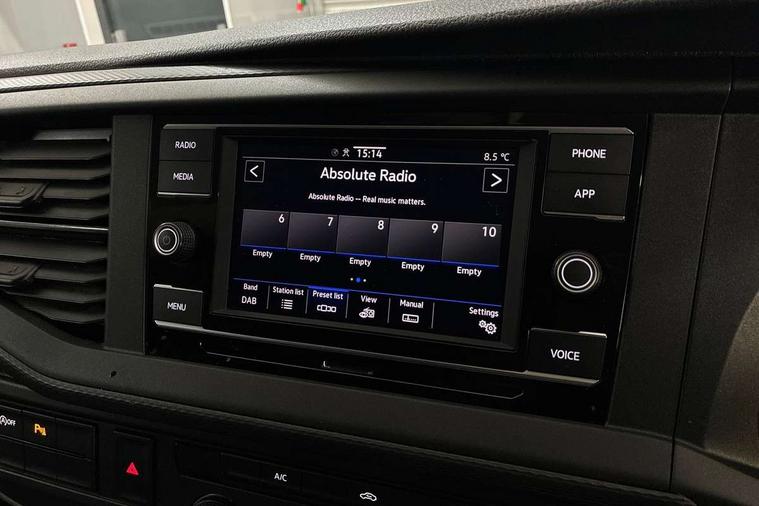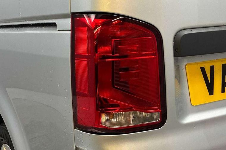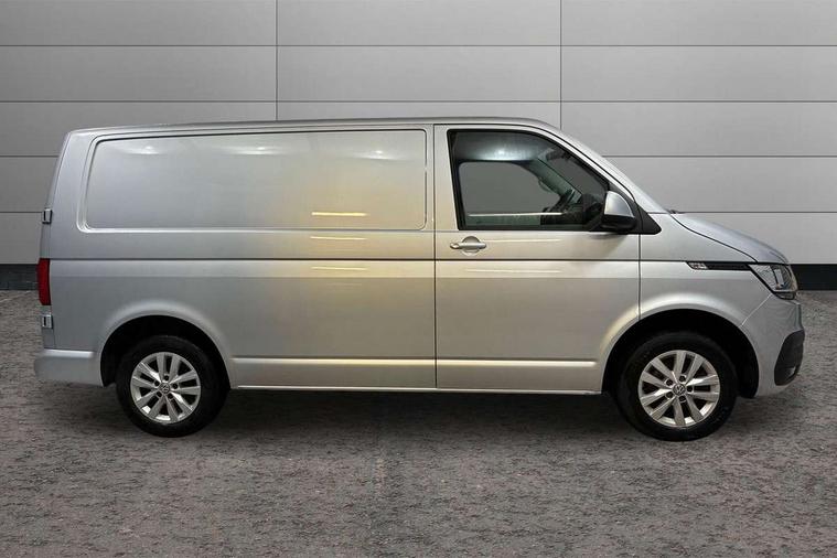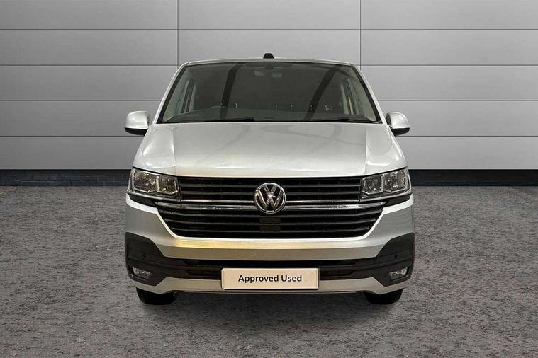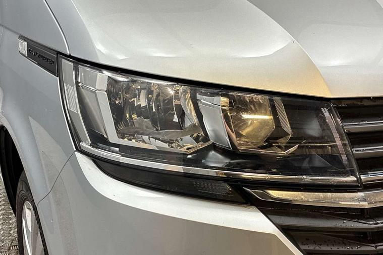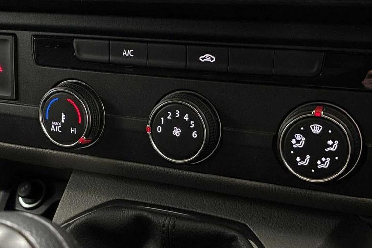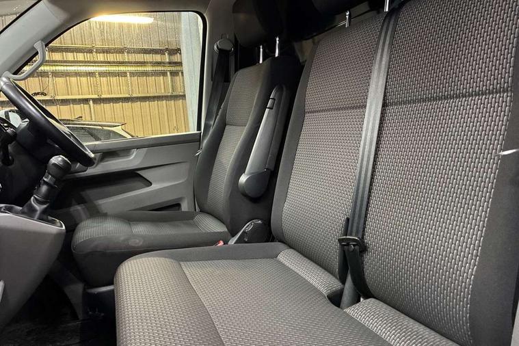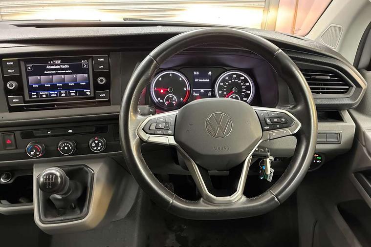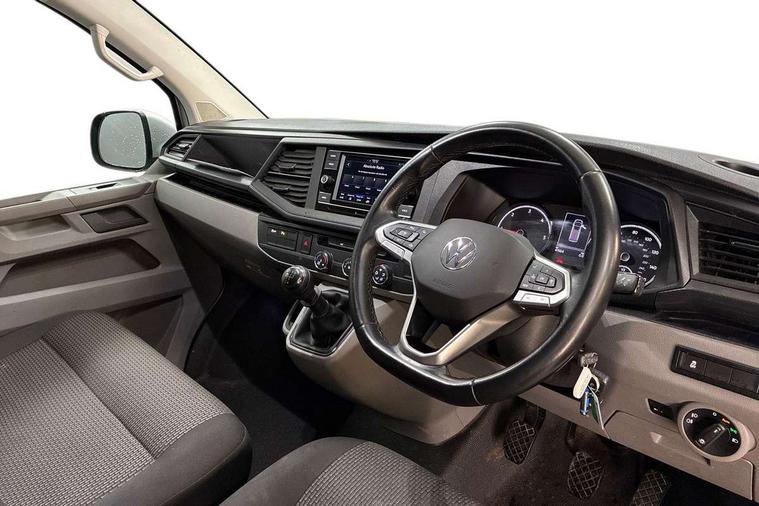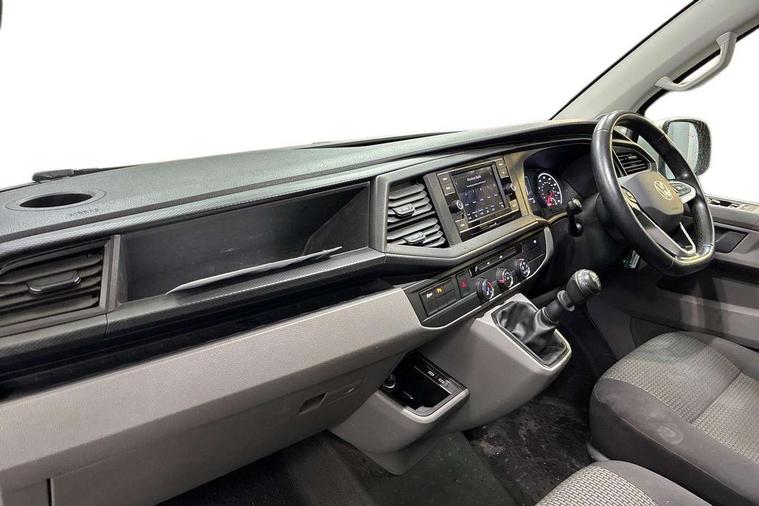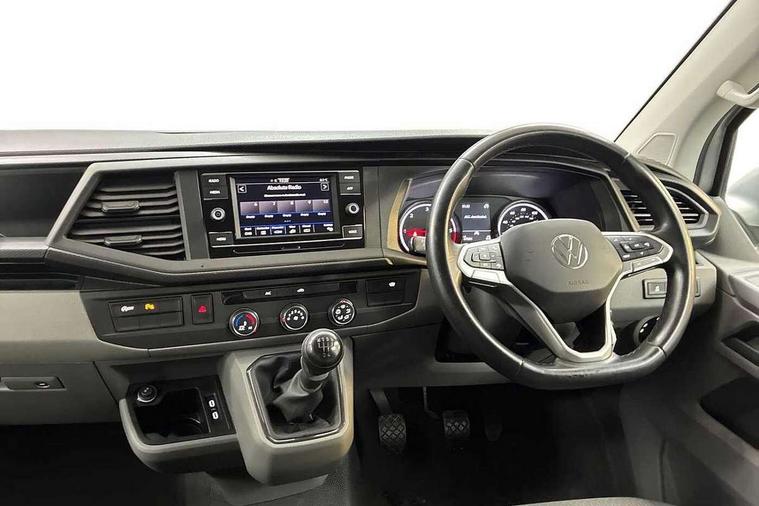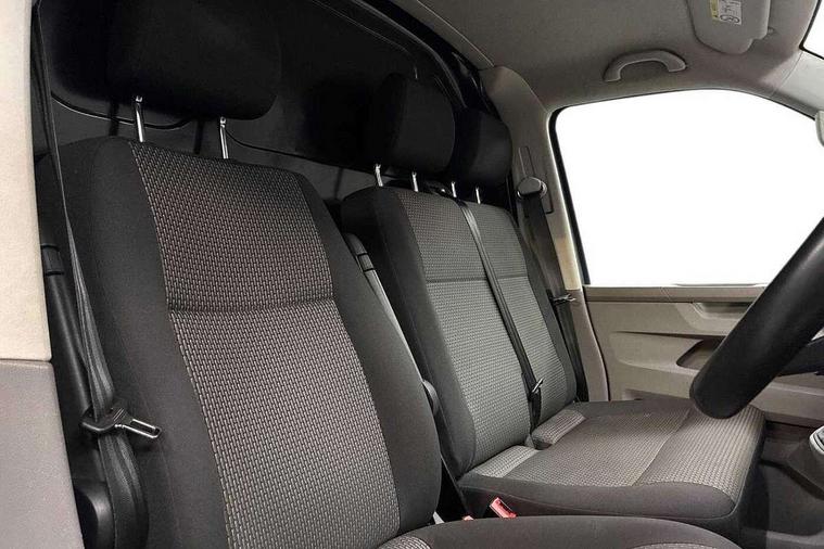 Adaptive cruise control, Cross wind assist, Dimmable illuminated instruments, Driver alert with Multi-function display plus, eCall emergency system, Forward collision warning front assist with autonomous emergency braking, Mobile phone interface, Multi function display plus with black and white display, 2 USB interfaces type C in dashboard, 4 speakers with 2 tweeters and 2 woofers, Composition colour radio with 6.5" touchscreen, Digital radio reception (DAB+), Volkswagen app connect, Automatic headlight control, leaving home and manual coming home feature, Closing rear wing door with unlatching from the inside, Front fog lamps with cornering light, Heat insulating glass (green) in cab and passenger/load compartment, Heated front windscreen, Left convex exterior mirror, Power folding adjustable door mirrors with separately heated, Radiator grille with 2 chrome trims, Rear wing doors without window apertures, Right convex exterior mirror, Transporter nameplate on the rear fender, Windshield wiper intermittent control with rain sensor for windshield wipers, 3 spoke leather wrapped multi function steering wheel, Auto dimming breakaway interior rear view mirror, Comfort headliner in cab, hardboard roof trim in passenger and load compartment, Dust/pollen filter, Front and rear left without window closed side panel in load compartment, Front seats on the right in 1st row of seat, Glove compartment with illumination, Heavy duty tool kit and jack, High partition, Interior plastic loading edge protection, LED Interior lighting in load and passenger compartment, Manual adjustable lumbar support for right single seat in 1st row seats, Refrigerant R134a, Standard lower part dashboard in palladium, Storage compartments on cab seats and reading light, Without right side window apertures in passenger and load compartment, Comfort pack - Transporter, Exterior pack without fog light- Transporter, Non smoker pack - Transporter, 3 point height adjustable seat belts on outer seats cab with electric pretensioners, Driver and front passenger airbag with front passenger airbag deactivation, Warning buzzer and light for driver and front passenger seat belt not fastened, Without child safety lock in passenger compartment, Anti theft alarm system with interior monitoring in cab, backup horn and towing protection, Lockable wheel bolts, 16" chassis with 16" brake system, Diesel particulate filter, Electronic stability control, ABS, ASR with deactivation button, hill start assist and brake assist system, Start/stop system with regenerative breaking, 16" Clayton alloy wheels,