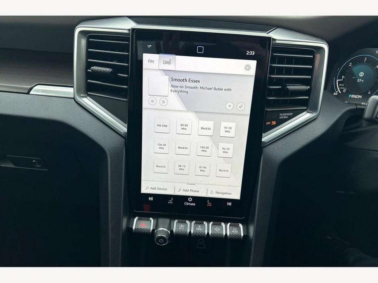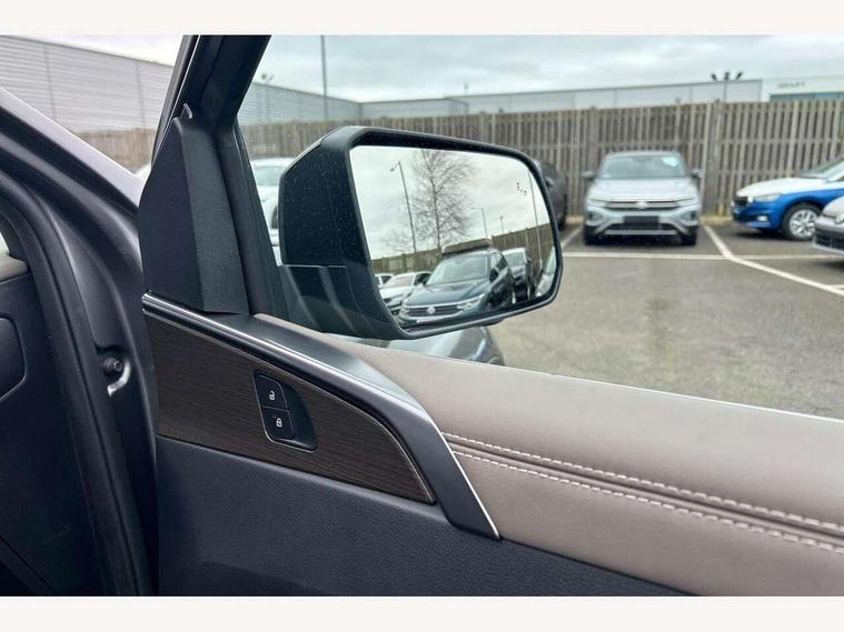 12-inch Infotainment system, Adaptive cruise control ACC with predictive speed limiter, Area View 360 camera, Autonomous emergency braking front assist with monitoring and braking for vehicles, pedestrians, cyclists, Digital Cockpit 12-inch, Dynamic road sign display, eCall emergency system, Lane keeping system lane assist and lane change system side assist, Navigation system, Park assist including park distance control in front and rear, rear traffic alert, PAS, Selector lever, Without manual activation of 360-degree surround and cargo area lighting, Without tachograph, Without trailer maneuvering system Trailer Assist, 1 USB charging socket on the interior rearview mirror, 6 speakers, AM / FM antenna and digital radio reception DAB+, Preparation for VW Connect Basic and VW Connect Navigation, Advanced high-beam control Dynamic Light Assist for IQ.LIGHT LED matrix headlamps, Black bumper in rear with chrome-plated styling elements, Body coloured exterior mirror housings and door handles, Body coloured front bumper, Body-colored rear gate handle, Chrome styling roll bar, Dark-tinted privacy glass rear side windows and rear window, Diversity antenna, Dynamic headlight range control, Exterior mirrors, power-adjustable, heated and power-folding, with surround lighting, Front and rear power windows, Fuel filler door with integrated misfueling prevention device, Heated rear window, IQ Light LED matrix headlamps, LED front fog lamps, LED rear combination lamps, Mud flaps front and rear, Radiator grille with chrome bezel, Satin air vents, Step with chrome insert, Trailer hitch preparation, Windshield sound-insulating with windshield heater, Windshield wiper intermittent control with rain sensor, Without hardtop, Without roof rails/roof rack, Without towing eyes in rear, Without trailer hitch, Without underride guard, 10-way power-adjustable driver seat and 8-way adjustable front passenger seat, 3 head restraints in 2nd row of seats, 3 point belts in addition height-adjustable in 1st row of seats, 3-point belts in 2nd row of seats, 3-seater bench in 2nd row of seats, Ambient lighting, Art velours upholstery, Carpet floor covering, Center armrest in rear, Child seat anchors ISOFIX on outer rear seats, i-Size compatible, Child seat recognition, Door handles in chrome, Driver seat with map pocket, Dual-zone climate control Climatronic, Gearshift/selector lever knob, leather, Glove compartment, illuminated and lockable, Headliner ebony black, Heating and fresh air system, Inductive charging feature, Leather-wrapped multi-function steering wheel, Overhead console 2 reading lights for driver and front passenger with glasses compartment in overhead console, Premium dashboard in leather look vinyl, Refrigerant, Roof grab handle on driver side, rigid grab handles, on A-pillar, Seat belt pretensioner, Seat occupied recognition with seat belt reminder for driver, front passenger and rear seat area, Sun visor on driver and front passenger side with illuminated vanity mirror, Tie-downs on the cargo area, Top tether child safety seat anchorage, Velour floor mats, Without hand brake lever, Without LED cargo area lighting, Without load compartment cover, Without load compartment loadliner, Without load support including protection frame on the rear cabin wall, Rear seat package II, Curtain and side airbags with center airbag, Front passenger airbag deactivation, Knee airbags for driver and front passenger, Without fire extinguisher, Without first aid kit, Anti-theft alarm system with interior monitoring, backup horn and towing protection, Keyless locking and starting system Keyless Access with SAFELOCK and 2 remote control folding keys, Online anti-theft alarm system, Rear gate lockable via central locking system, Remote control key, Tire Pressure Monitoring System (direct measurement), Wheel lock for spare wheel, Wheel locks, With programmable key, 120-V/230-V outlet in rear center console and cargo area, 3.55 gear ratio, Alternator - 250A, Automatic post collision braking system, Electronic parking brake, Electronic stability control (ESC) and Electromechanical brake booster, Emission standard, Four-wheel drive, Particle filter, Standard suspension, Stop/start function, Without differential lock in rear, Without electrical interface for external use, 6 switches in overhead console, 18" Amadora silver alloy wheels, Alloy spare wheel,