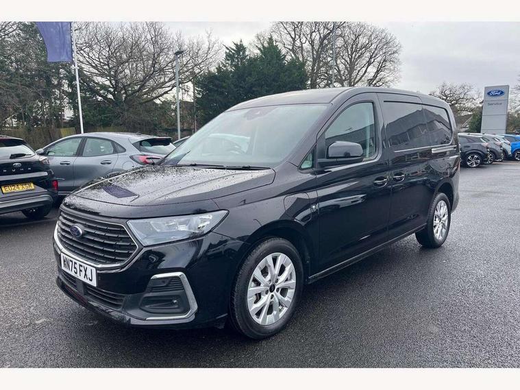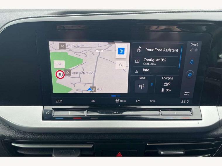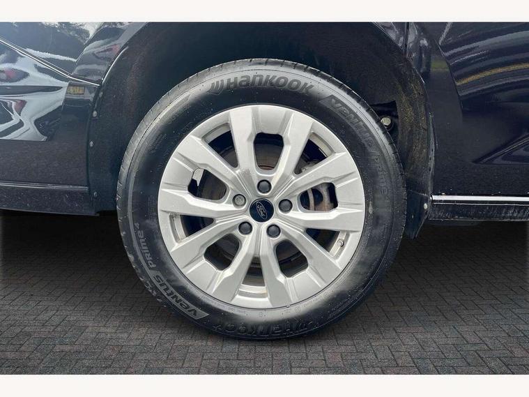 10" touchscreen infotainment display with volume and temperature slider controls, Android Auto and Apple Carplay with USB or wireless connectivity, Brake wear indicator, Enhanced digital cluster with navigation integration, Fordpass connect modem including eCall, Front camera system, PAS, Tyre pressure monitoring system with cluster display of tyre pressures, Wireless charging pad, 4 speakers, DAB radio bluetooth, voice control and navigation, Two USB (45W type C) front power/Data points, Auto Headlamps - Follow Me Home, Automatic headlamps on/off, Automatic windshield wiper, Black painted exterior mirror caps, Body colour door handles with silver door rail, Body coloured exterior tailgate handle, Body coloured front bumper, Body coloured rear bumper, Chrome grille and fog light surrounds, Day and night inside mirror, Dual power heated mirrors, Emergency brake light flashing, Front fog lights, High mounted stop lamp, Less roof rails, Misfuel Inhibitor, Power folding door mirrors, Power front windows - One touch up-down, Quickclear electric windshield defroster, Rear tinted glass, Standard green class windscreen, Tail lamps, Weather protection seals, 12V socket in cabin, 2 way front headrestraints, 4 way manually adjustable driver seat, 4 way manually adjustable passenger seat, Cargo area dual LED lights, Cargo area hardboard trim, Centre console with open stowage, Chrome air register, Driver and passenger sunvisor with mirror, Driver seat rotary recliner, Electronic dual zone automatic air conditioning, First row LED light with map lights, Fold flat passenger seat with integrated work surface, Foot pedal, Overhead storage compartment, Pollen filter without carbon filter, Reach and rake adjustable steering column, Recirculation heater, Rubber cab floor cover, Rubber load floor cover, Sensico gear shift knob, Sensico steering wheel, Silver interior door handles, Curtain airbags, Driver and front passenger airbag, Driver and passenger seatbelt reminder, Front active seat belts, Front passenger airbag deactivation, Front seat belt adjuster, 2 remote keys, Ford KeyFree system with power starter button and deadlocking, Immobiliser, Locking wheel bolts, Thatcham alarm system, 12v socket on cargo area, 50L fuel tank, ABS, Charging cable (Type 2 Mode 3), Electric parking brake, Emergency brake assist, ESP, RSC, wind mitigation, Standard duty alternator, Start/stop system, Traction control, Gloss black cluster and infotainment bezels with silver painted instrument panel spear, 17" silver alloy wheels with blue centre caps, 215/55 R17 tyres, Tyre repair kit,
