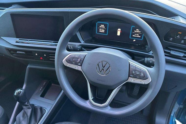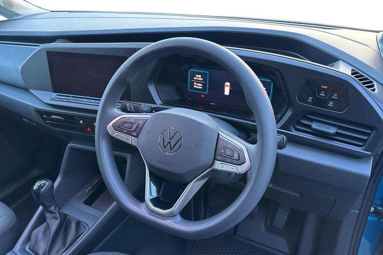 Bluetooth - Mobile phone interface, Car2X technology, Driver alert system, eCall emergency system, Intelligent Speed Assist, Lane assist, Seatbelt warning indicator, Service indicator, Start-stop system with regenerative braking, 2 USB interfaces type C in dashboard, DAB Radio, We Connect Basic Preparation, Automatic hazard light activation under emergency braking, Black front and rear bumpers, Electric front windows, Heat insulating windscreen, Roof rail preparation, Windscreen wiper with variable intermittent delay and wash-wipe system, Dimming breakaway interior rear view mirror, Electronically controlled heating system, Interior light in headliner incorporting LED technology, Lockable glove compartment door with light, Manual heating and ventilation system, Manual height adjustment for front seats, Reach and rake adjustable steering column, Six lashing points for securing loads, 3-point seat belts in front, with pretensioner and height adjustment, Driver and front passenger airbag with front passenger airbag deactivation, Tyre pressure monitoring system, Anti-theft alarm system, interior monitoring, backup horn, and towing protection, Electronic engine immobiliser, Remote central locking with deadlocks, interior locking, Anti locking braking system (ABS), Automatic post collision braking system, Autonomous Emergency Braking Front Assist with Pedestrian Monitoring, Brake assist, Diesel particulate filter, Electric parking brake with auto hold function, Electronic brake force distribution (EBD), Electronic differential lock (EDL), Electronic stabilisation programme (ESP), Engine drag torque control (MSR), Hill hold assist, Traction control system (TCS), Decorative beige birch vein inserts, Full size wheel trims,