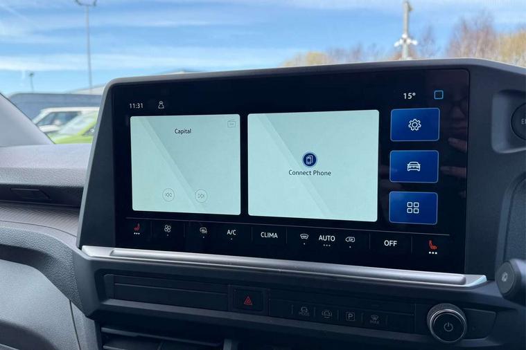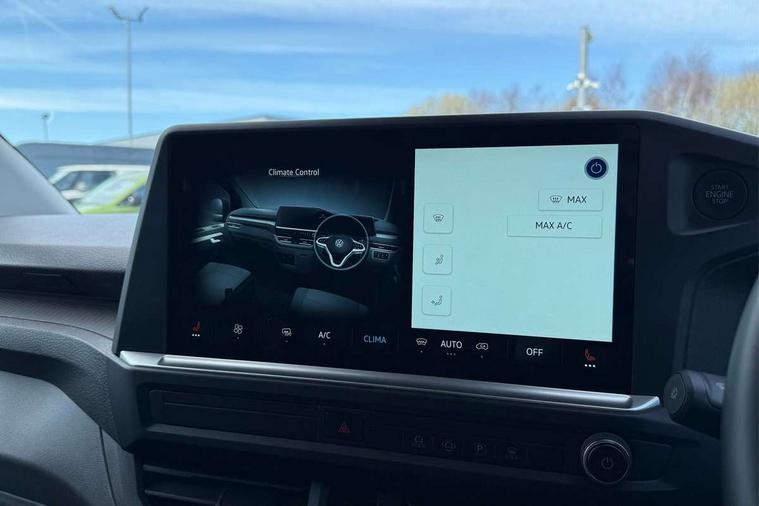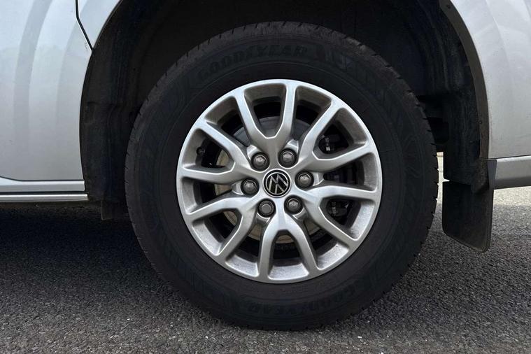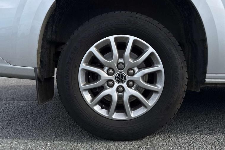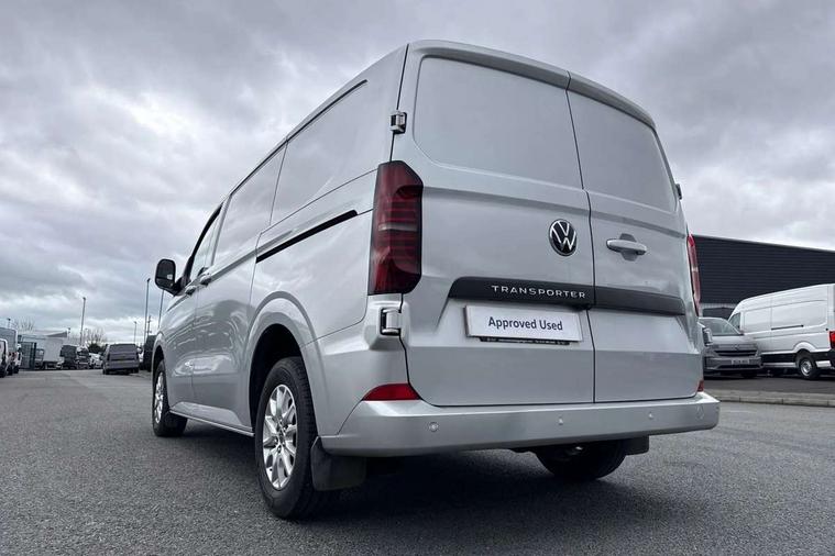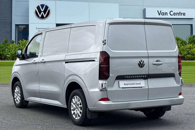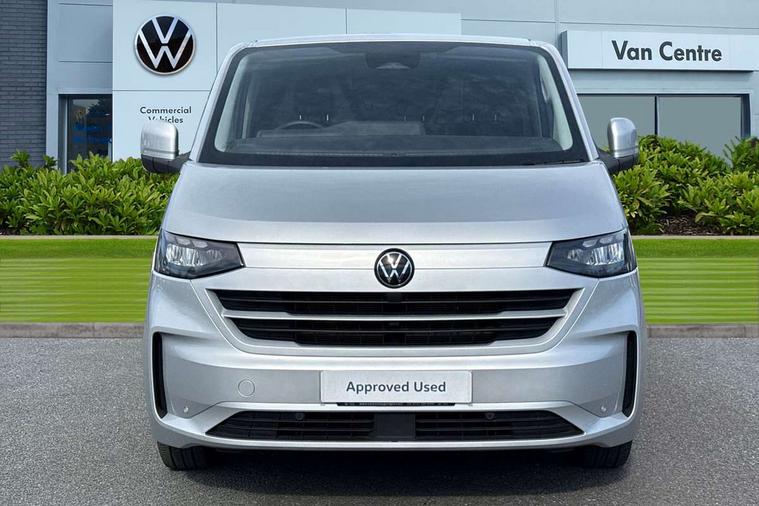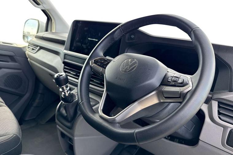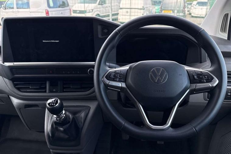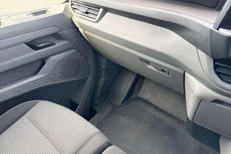 12" digital drivers display, 13" touchscreen infotainment display with wireless app connect and DAB radio, 5G Modem, Adaptive cruise control, Apple CarPlay and Android Auto, Dynamic road sign display, eCall emergency system, Electromechanical speed sensitive power steering, height and longitudinally adjustable steering column, Lane and blind spot assist with exit warning system, Preparation of VW connect and connect plus, Wireless mobile phone charging, Wrong way driver warning, Body colour bumpers, Body coloured door handles, Body coloured door mirrors, Body coloured radiator grille, Electrically heated, adjustable and folding door mirrors, Heat reflecting side window glass, Mud flaps front and rear, Rear Transporter nameplate in black grained decorative trim, Vehicle opening configuration 1x 1st row of seats, 2x all doors, 12V outlet in centre console and 12V outlet on rear right D-pillar, 2x 15-W USB data/charging ports in dashboard and 1x USB-C, 1x USB-A center bottom, 2x LED lights in load compartment, 3x additional super bright LED lights in load compartment, 4 way height and tilt adjustable head restraints, 5 additional USB-C charging ports, Black plastic scuff plate for sliding door in cargo without illumination, Cabin interior lighting, Glasses compartment in driver side roof, Grab handle on A-pillar passenger side, Illuminated lockable glovebox, Lashing rings for reinforced floor covering, Leatherette gear lever, Narrow centre console with cup holder and compartment for mobile phone, Overhead storage compartment, Rubber floor covering in cab, Striped fabric upholstery, Without passenger seats in load compartment, Driver and front passenger airbag with front passenger airbag deactivation, Dual tone horn, Front and curtain airbags for driver and front passenger, Seat belt pretensioner for driver seat, Anti theft alarm system with interior monitoring in cab, backup horn and towing protection, Electronic immobiliser, Lockable wheel bolts, Preparation for alcohol ignition interlock, 5+ Promise, Alternator - 230A, Electromechanical brake booster, Electronic stability control, ABS, ASR with deactivation button, hill start assist and brake assist system,