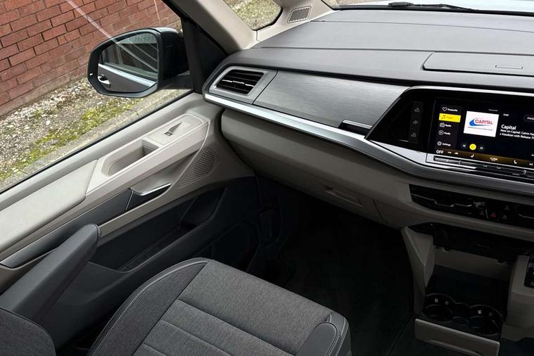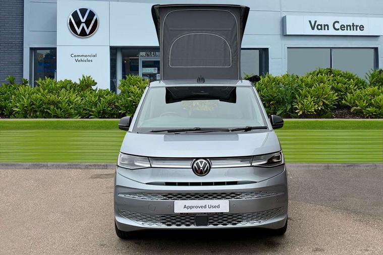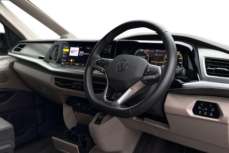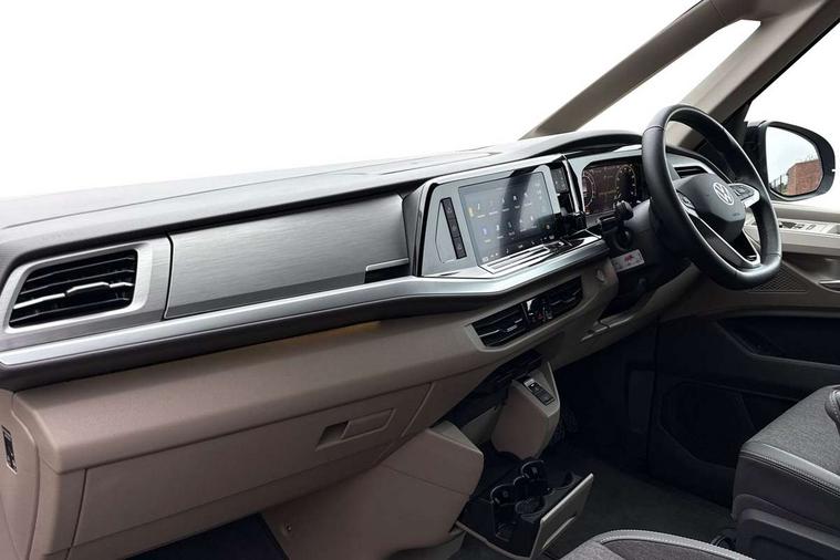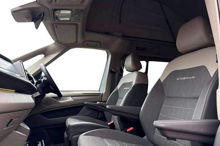 Advanced driver attention and drowsiness monitor, California on tour app, Digital cockpit pro, Discover Pro Navigation system, Driving profile selection, eCall emergency system, Emergency assist, Function control unit, IDA voice assistant and voice enhancer, Lane keeping system Lane Assist, Mobile phone interface, Multifunction camera, PAS, Preparation for online services, Tailgate with window aperture and with power latching, Traffic sign recognition, Turn assist with evasive assistance, Volkswagen wired and wireless app connect, Additional batteries 2nd and 3rd with voltage transformer NV, Battery without capacity specification, Standard battery/generator, Standard suspension and shock absorption, 2 USB-C ports at the front, 4 USB-C charging sockets in the passenger compartment, 8 Speakers, Digital radio reception (DAB), 3rd brake light, 65% light absorbing privacy glass, Dynamic Light Assist for LED matrix headlights, Electro hydraulic elevating roof, with three windows including one front passengers panorama opening, canvas in Basalt Grey, Four speed control for windscreen wipers, Heat and sound insulating laminated safety glass windshield, Heated windscreen, High gloss black door mirrors, Illuminated molding between headlamps, Nameplate set California, Poor weather light including cornering light, Rear boot, Red LED tail lights, Sliding window in front with fly screen in passenger compartment left/right & fixed window in rear in load passenger compartment at left, Windscreen wiper intermittent control, 2 single seats with integrated seatbelt and sleeping mat, 230V external inlet with charging feature for vehicle batteries, 230V inverter with socket on driver seat, Additional interior noise attenuation plus, Ambient interior lighting, Armrest on front swivel seats in both sides with electric lumbar support, Camper parking heater for continuous operation & parking heater for windshield defrosting with radio remote control, Darkening roller blinds and thermo mats, Drawers under the outer seats in the cab and passenger compartment & 2 waste bins, Front and rear headrests, Heated front seats, Heated steering wheel, Kitchen with outdoor folding table for cooking and roof storage box in décor 2, Lockable glove compartment with lighting, Multifunction leather steering wheel with paddle shifters, Plastic floor covering in passenger/load compartment, Single front passenger seat, Surround lighting in door area, Swivel seat on left with height adjustable including drawer, Swivel seat on right with height adjustable including drawer, Advanced assistance pack - California, Top package - California, 2x3 point automatic seatbelts at the rear outside with ECE label, with/without belt tensioner, Autonomous emergency braking front assist with pedestrian and cyclist monitoring, Child locks, Driver and front passenger airbags with front passenger airbag deactivation button, First aid kit with warning triangle and safety vest, Front Assist with pedestrian and cyclist detection, Front disc brakes, Height adjustable three point automatic seatbelts at front with belt and end fitting tensioners, Side and curtain airbags for driver and front passenger, curtain airbags for outer seats in rear, centre airbag in front, Swerve support and oncoming vehicle braking when turning, Tyre pressure loss indicator, Anti theft alarm system with interior monitoring in cab, backup horn and towing protection, Central locking + keyless locking and starting system Keyless Advanced with safe lock, Lockable wheel bolts, Preparation for alcohol interlock, 5+ Promise service plan, Dark silver brushed decorative inlays, Tool kit, Trims for alloy wheels, Tyre mobility kit,