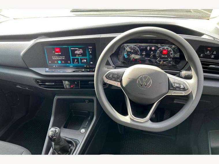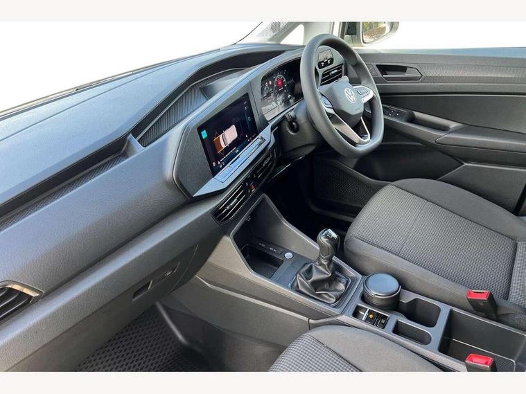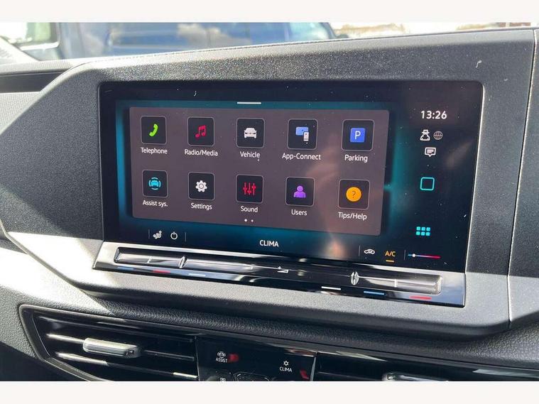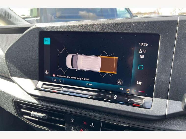 Bluetooth - Mobile phone interface, Car2X technology, Driver alert system, eCall emergency system, Intelligent Speed Assist, Lane assist, Seatbelt warning indicator, Service indicator, Start-stop system with regenerative braking, 2 USB interfaces type C in dashboard, DAB Radio, We Connect Basic Preparation, Automatic hazard light activation under emergency braking, Black front and rear bumpers, Electric front windows, Heat insulating windscreen, Roof rail preparation, Windscreen wiper with variable intermittent delay and wash-wipe system, Dimming breakaway interior rear view mirror, Electronically controlled heating system, Interior light in headliner incorporting LED technology, Lockable glove compartment door with light, Manual heating and ventilation system, Manual height adjustment for front seats, Reach and rake adjustable steering column, Six lashing points for securing loads, 3-point seat belts in front, with pretensioner and height adjustment, Driver and front passenger airbag with front passenger airbag deactivation, Tyre pressure monitoring system, Anti-theft alarm system, interior monitoring, backup horn, and towing protection, Electronic engine immobiliser, Remote central locking with deadlocks, interior locking, Anti locking braking system (ABS), Automatic post collision braking system, Autonomous Emergency Braking Front Assist with Pedestrian Monitoring, Brake assist, Diesel particulate filter, Electric parking brake with auto hold function, Electronic brake force distribution (EBD), Electronic differential lock (EDL), Electronic stabilisation programme (ESP), Engine drag torque control (MSR), Hill hold assist, Traction control system (TCS), Decorative beige birch vein inserts, Full size wheel trims,