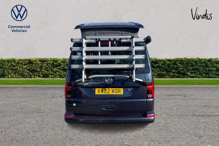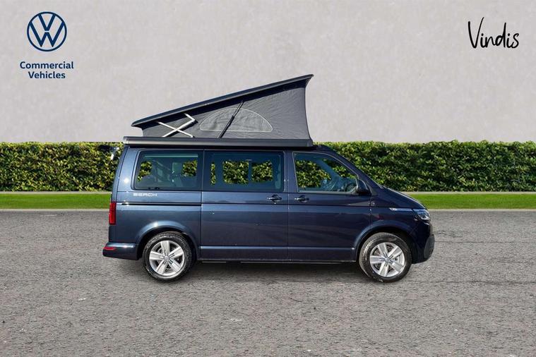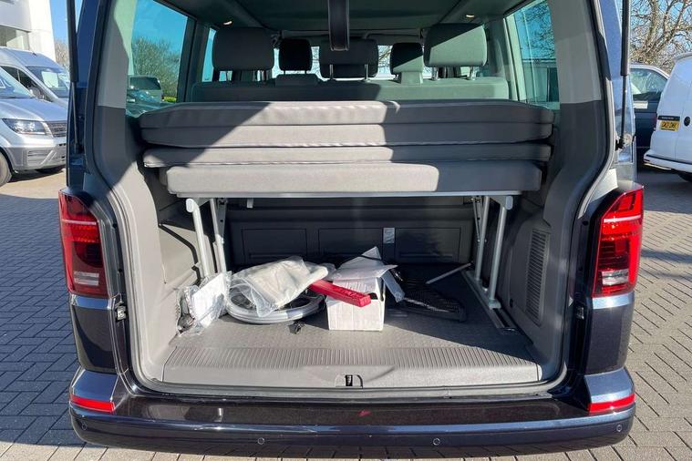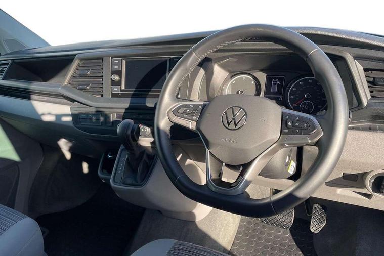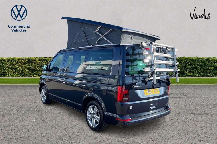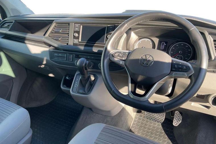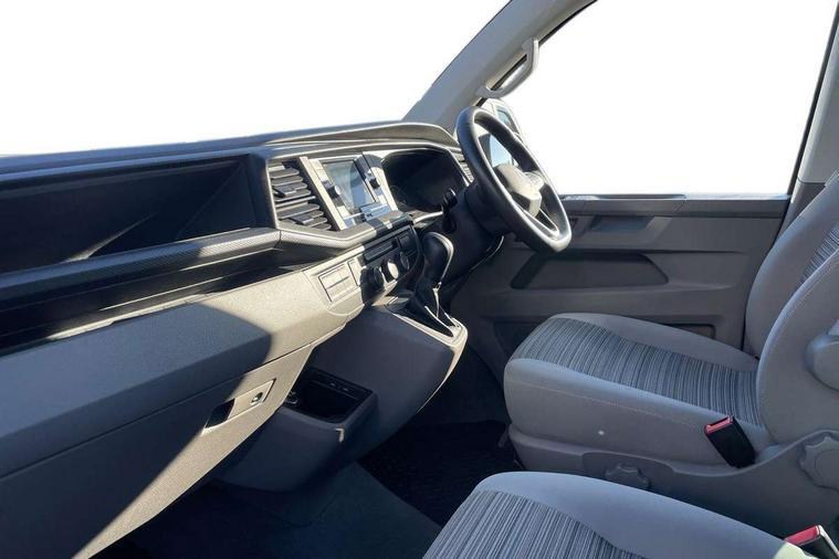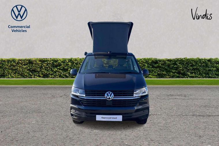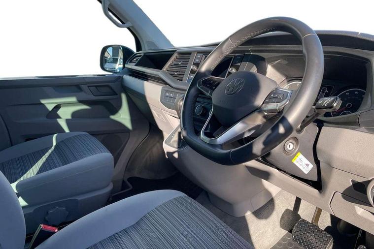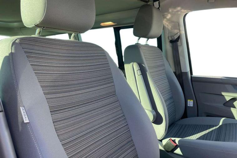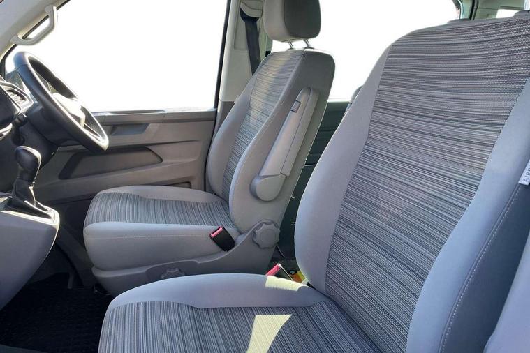 Cross wind assist, Driver alert system, eCall emergency system, Mobile phone interface, Multifunction display premium with color display, Service interval indicator, Speed limiter, Start/stop system with regenerative braking, Tailgate latch without unlocking function from inside, Tailgate with window aperture, Volkswagen app connect, Without lane change system side Assist, Without voice control, Without washerfluid level indicator and without heated washer nozzles, 17 inch chassis with 17 inch disc brakes in front and 16 inch disc brake in rear, 2 (type C) USB interfaces in dashboard, 8 speakers (4 tweeters + 4 woofers), Composition colour radio with 6.5 inch touchscreen, Digital radio reception (DAB+), Regional code ECE for radio, Additional dust seals on the outside, Body colour bumpers, Body coloured door handles, Body coloured door mirrors, California nameplate on the fender and on the rear, Fixed front and rear side windows in load/passenger compartment on driver side, Headlight range control, High level 3rd brake light, Left convex exterior mirror, Mounting rails on the roof (preparation for movable roof rack), Radiator grille with 2 chrome trims, Rear boot, Rear heated window with window wiper and washer system, Red LED rear combination lamps, Right convex exterior mirror, Without left sliding door in load/passenger compartment, 1 waste bin in door storage compartment of the cab, 12V outlets in dashboard X 2, 230V inlet with charging feature for vehicle batteries and 230V outlet in the interior, 3 spoke leather wrapped multifunction steering wheel, Allergen filter, Armrest for both cab seats, Camping table for inside/outside in sliding door and 2 folding chairs in tailgate, Child seat anchors ISOFIX and top tether for Multivan/California in 2nd to 4th row of seats, Dimmable illuminated instruments, Electromechanical speed sensitive power steering, height and longitudinally adjustable steering column, Front head restraints, Glove compartment with illumination, Grab handles on A pillar for access, on driver and front passenger side, Illuminated steps in passenger/load compartment, Illuminated sun visors with mirror and airbag label on front passenger sun visor, Interior loading edge protection in plastic, Jack and tool kit, Manually adjustable lumbar supports for left and right single seat in the 1st row of seats, Mini kitchen (on side panel between B and C pillar) with 1 gas cooking plat, Operating voltage 12V including 230V outlet on driver seat, Plastic floor covering in passenger/load compartment, Rear head restraints, Refrigerant R1234yf, Roof bed (2000 x 1200 mm) with spring plates and mattress, Soft folding grab handles on roof frame, Special interior noise suppression measures, Special sound deadening measures in cab and passenger compartment, Step illumination with California lettering, Swivel seat on the left, with lumbar support in 1st row of seats, Swivel seat on the right, with lumbar support in 1st row of seats, Without floor mats, Without height adjustment for driver and single passenger seats, Without insulating box and without refrigerated glove compartment, Smokers pack - California, 3x3 point rear seat belts, Airbags - Drivers and front passengers side and curtain airbags, Driver/Front Passenger airbags, Electronic stability control, ABS, ASR, EDL, brake assist system, Front assist with Autonomous emergency braking for Adaptive cruise control (ACC), Height adjustable 3 point seat belts on outer seats in cab with electric pretensioners, Hill start assist, Manual passenger airbag deactivation function, Power operated child safety locks, Single tone horn, Warning buzzer and light for driver seat belt not fastened, Anti theft alarm system with interior monitoring in cab, backup horn and towing protection, Central locking system with radio remote control, system controls inside and safelock, Lockable wheel bolts,