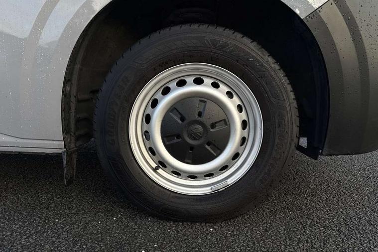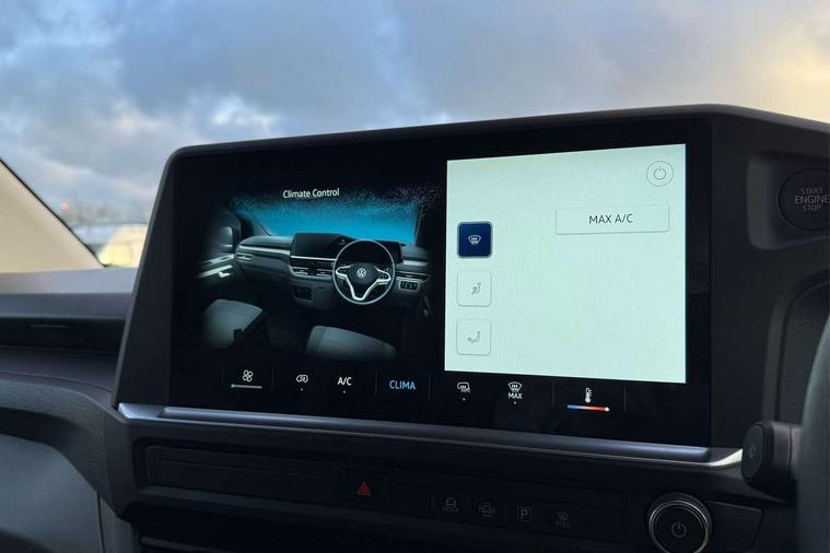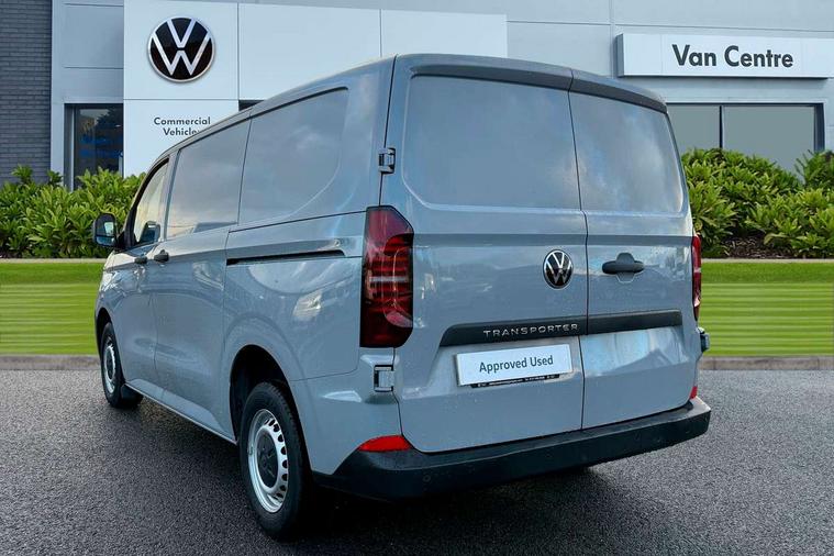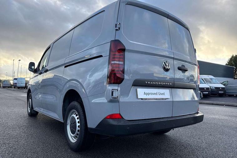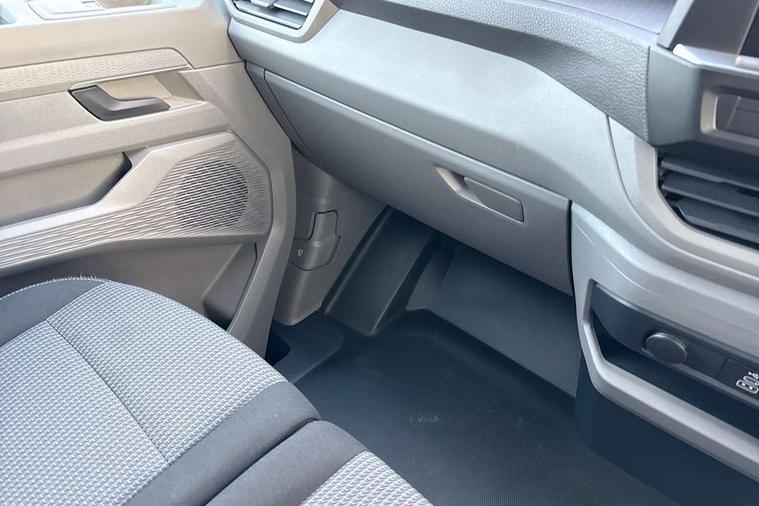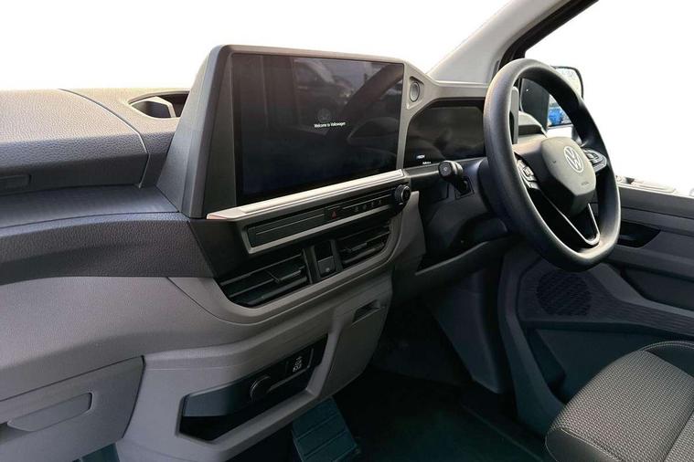 12" digital drivers display, 13" touchscreen infotainment display with wireless app connect and DAB radio, 5G Modem, Apple CarPlay and Android Auto, Cruise control, Dynamic road sign display, eCall emergency system, Electromechanical speed sensitive power steering, height and longitudinally adjustable steering column, Lane assist, Preparation of VW connect and connect plus, Wrong way driver warning, 4 speakers - 2x dashboard, 2x cab doors, Grained black door handles, Heat reflecting side window glass, High beam control, Laminated windshield made of heat-reflecting glass, LED rear combination lamps, Rear Transporter nameplate in black grained decorative trim, Vehicle opening configuration 1x 1st row of seats, 2x all doors, 2x 15-W USB data/charging ports in dashboard and 1x USB-C, 1x USB-A center bottom, 2x LED lights in load compartment, 4 way height and tilt adjustable head restraints, Black plastic scuff plate for sliding door in cargo without illumination, Cabin interior lighting, Lashing rings for reinforced floor covering, Narrow centre console with cup holder and compartment for mobile phone, Overhead storage compartment, Roof grab handle on front passenger side, Rubber floor covering in cab, Standard glove compartment, Striped fabric upholstery, Without passenger seats in load compartment, Exterior pack 1 - Transporter, Interior trim pack - Transporter, Driver and front passenger airbag with front passenger airbag deactivation, Dual tone horn, Front and curtain airbags for driver and front passenger, Seat belt pretensioner for driver seat, Electronic immobiliser, Preparation for alcohol ignition interlock, 5+ Promise, Alternator - 230A, Electronic stability control, ABS, ASR with deactivation button, hill start assist and brake assist system,