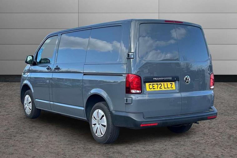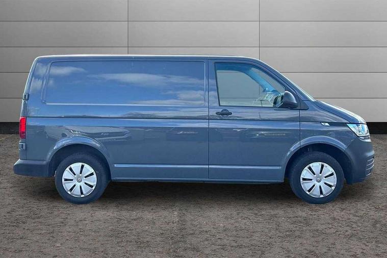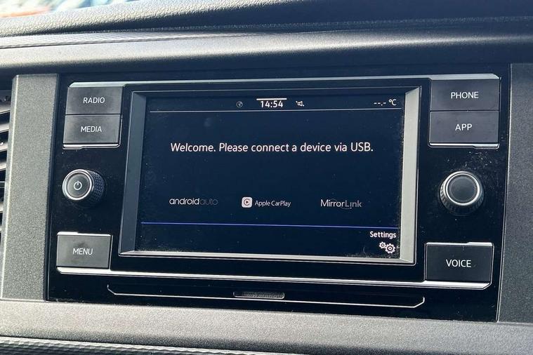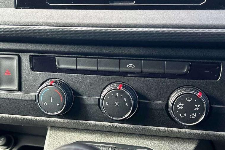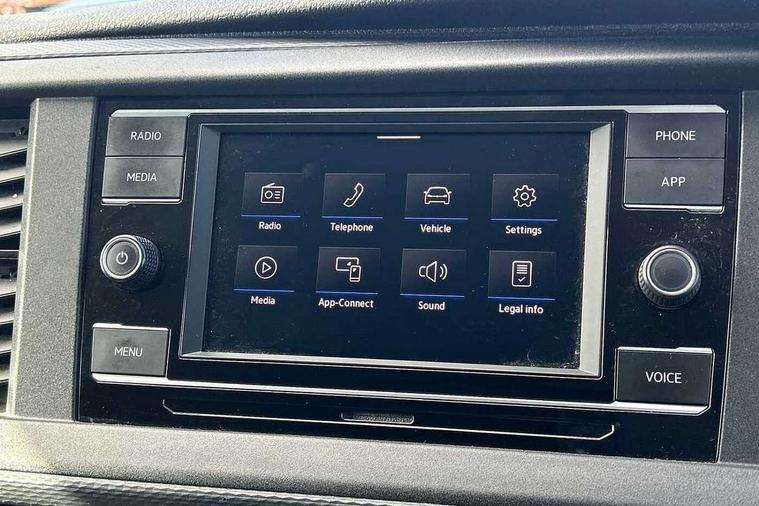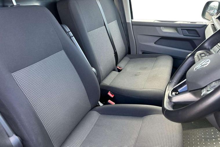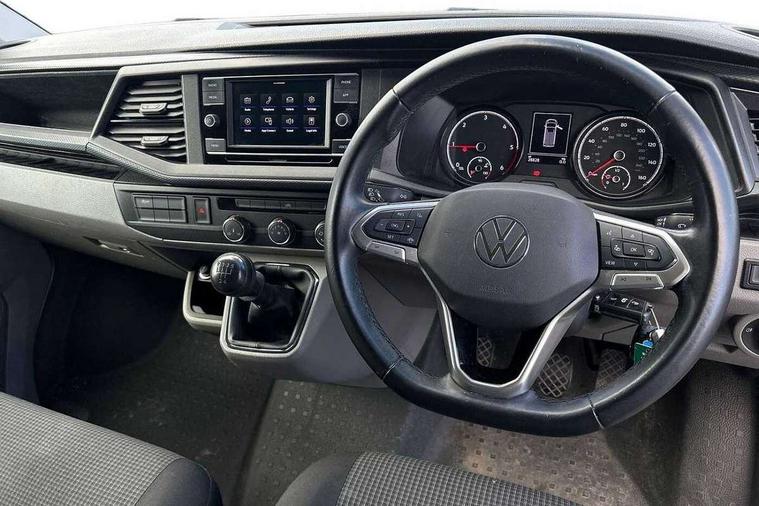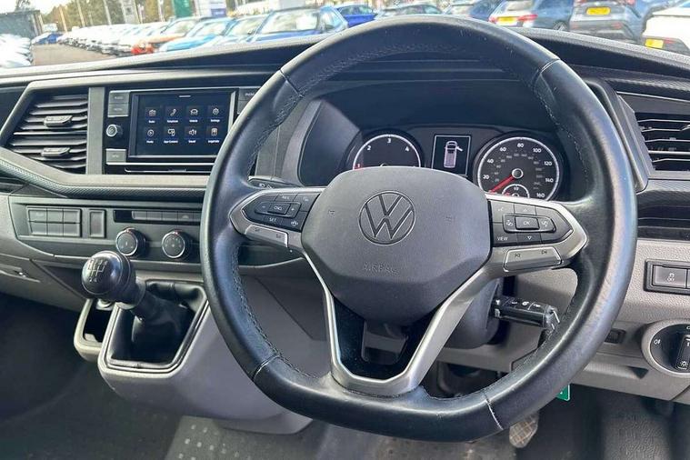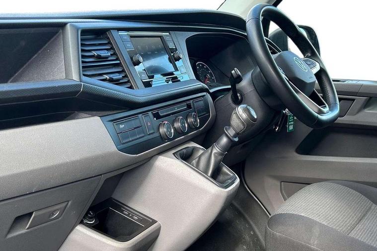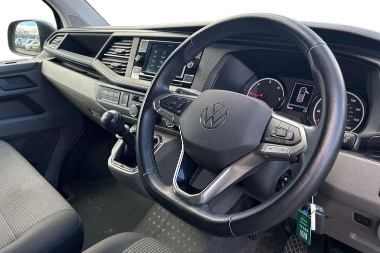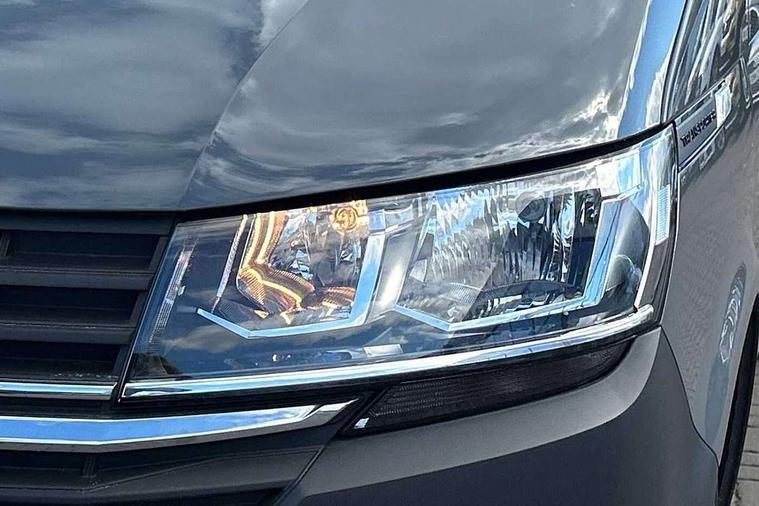 Cross wind assist, Dimmable illuminated instruments, Driver alert with Multi-function display plus, eCall emergency system, Forward collision warning front assist with autonomous emergency braking, Mobile phone interface, Multi function display plus with black and white display, 2 USB interfaces type C in dashboard, 4 speakers with 2 tweeters and 2 woofers, Composition colour radio with 6.5" touchscreen, Digital radio reception (DAB+), Volkswagen app connect, 4 stages windshield wiper intermittent control for windshield wipers, Closing rear wing door with unlatching from the inside, H7 twin halogen headlamps, Heat insulating glass (green) in cab and passenger/load compartment, Heat insulating windshield made of laminated glass, Left convex exterior mirror, Rear wing doors without window apertures, Right convex exterior mirror, Separate Daytime running lights, Transporter nameplate on the rear fender, Unpainted radiator grille with 2 chrome trims, 3 spoke leather wrapped multi function steering wheel, Comfort headliner in cab, hardboard roof trim in passenger and load compartment, Dust/pollen filter, Folding grab handles on roof frame, Front and rear left without window closed side panel in load compartment, Front seats on the right in 1st row of seat, Glove compartment without illumination, Heavy duty tool kit and jack, High partition, Interior plastic loading edge protection, LED Interior lighting in load and passenger compartment, Manual adjustable lumbar support for right single seat in 1st row seats, Standard lower part dashboard in palladium, Without breakaway interior rear view mirror, Without refrigerant, Without right side window apertures in passenger and load compartment, Non smoker pack - Transporter, 3 point height adjustable seat belts on outer seats cab with electric pretensioners, Driver and front passenger airbag with front passenger airbag deactivation, Warning buzzer and light for driver and front passenger seat belt not fastened, Without child safety lock in passenger compartment, Electronic immobiliser, Wheel bolts without wheel locks, 16" chassis with 16" brake system, Diesel particulate filter, Electronic stability control, ABS, ASR with deactivation button, hill start assist and brake assist system, Standard anti drum measures, Start/stop system with regenerative breaking,