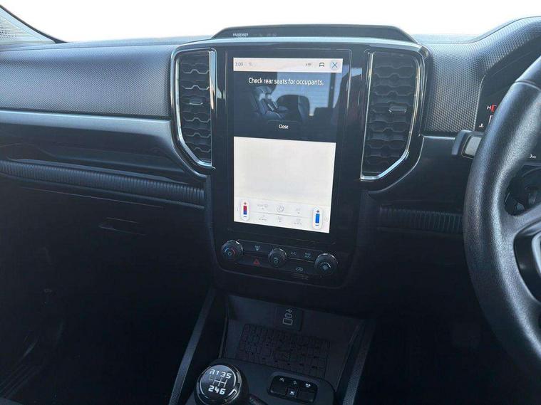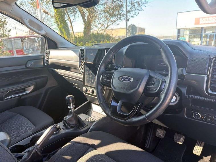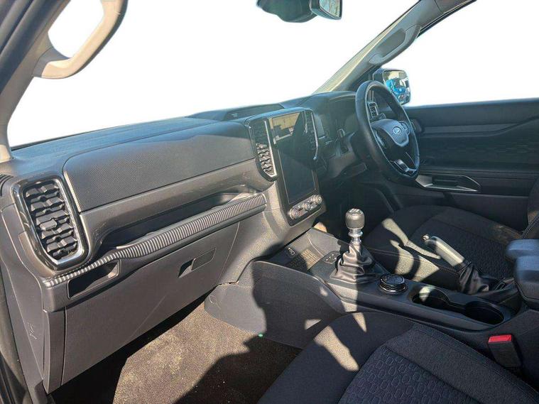 AEB and ISA, Conventional gearshift, Electric power assisted steering, Evasion steer assist, Fordpass connect modem including eCall and FordPass connectivity, Ice warning, Partial TFT/LCD instrument cluster, Passenger side roof mounted grab handle, Pre collision assist, Road departure warning, Traffic sign recognition, Trip computer, Acoustic laminated windscreen, Assisted conventional tailgate, Automatic headlights, Black rear underrun bar, Black wheel molding, Body coloured door handles, Capless fuel fill with electric release, Daytime running lights, Dual power heated fold back door mirror, E-marked glass, Electric rear window defroster, Electric windshield defroster, Electrochromic interior mirror, Fog lamp bezel, Front bumper lip, Front fog lamps, Front headlamp leveling, Front splash guard, Front towing hooks, High mounted stop lamp, Ladder rack, Level 1 halogen headlamps, Level 2 taillamps, Manual liftgate, Narrow bodyside moulding, Non locking capless fuel fill, Outside thermometer, Plastic body colour front bumper, Plastic side steps, Power front windows with one touch up/down, Power rear windows, Rain sensitive windshield wipers, Rear bumper extension, Rear fog lamps, Rear splash guard, Self coloured decklid handles, Step bars, Trailer tow class I, Trailer tow wiring, Under hood engine cover, Console with double lid, Door handles with inside MIC, Driver and passenger sunvisor with mirror, Elevate embossed cloth upholstery, Fold flat rear seat with durabale surface, Fresh air heater, Front throw in carpet floor mats, Glove box lids, High series air register, Light limestone headliner, Non woven carpet, Overhead console with dome lamps, Pollen filter, Premium front floor mats, Reach and rake adjustable steering column, Rear floor ducts, Roof storage for driver sunglasses, Steering wheel with multimedia controls, Tie down rails and rope hooks, Washer tank level warn lamp, Functional upgrade pack 3 - Ranger, Interior trim pack 8 - Ranger, Rear seat pack 15 - Ranger, Standard duty terrain pack - Ranger, Tachograph prep pack - Ranger, Child proof rear door locks, Driver and passenger airbag, Driver knee airbag, Head and thorax airbag in 2nd row, ISOFIX child safety seat attachment, Passenger knee airbag, Tyre pressure sensors, Flip key, Immobiliser, Locking wheel lug nut, Passive anti theft system, Power door dead locks, Power tailgate lock, Thatcham alarm system, Thatcham security system, ABS and ESP+, Front disc and rear drum brakes, Mechanical parking brake, Rear power point plug, Standard duty suspension, 17" conventional steel spare wheel,