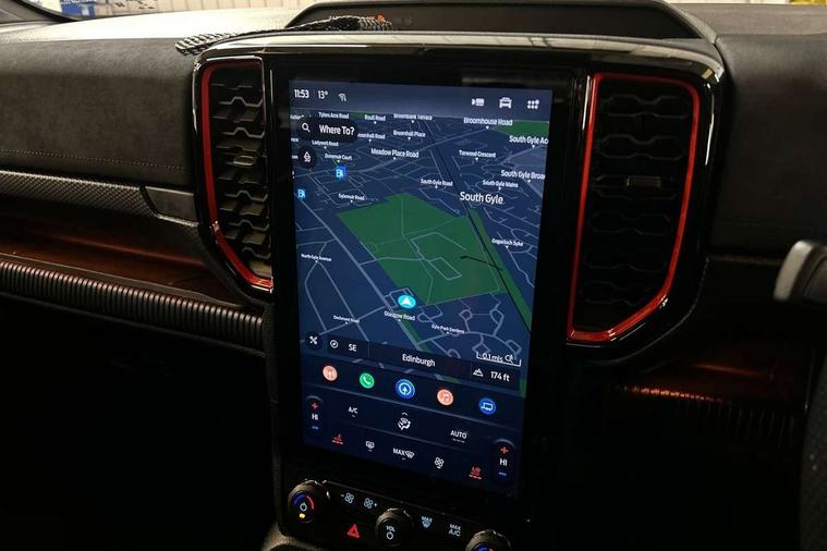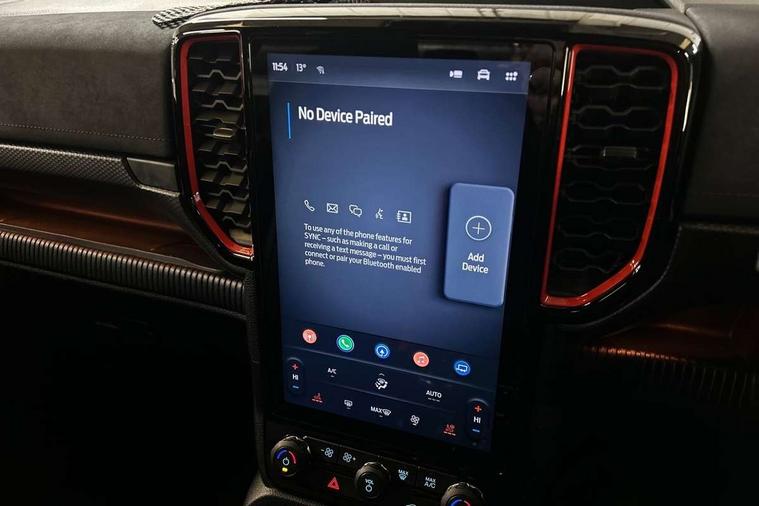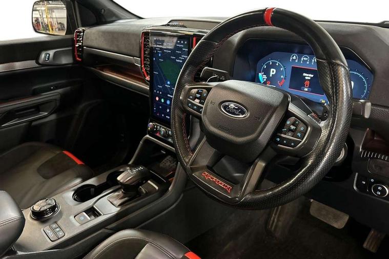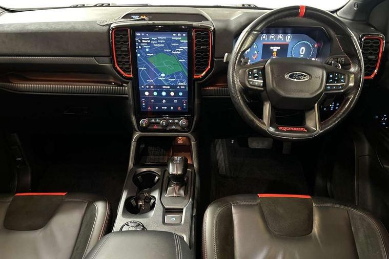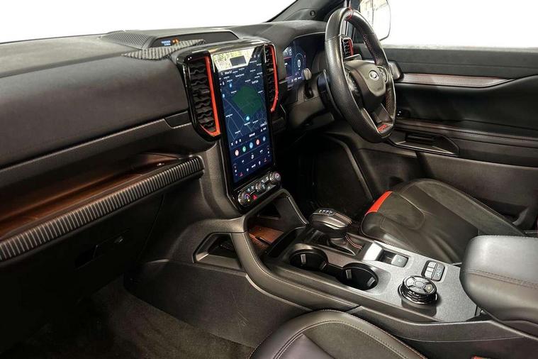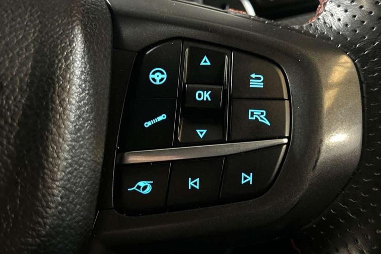 A-pillar assist handle, Electric power assisted steering, Electronic automatic gearshift, Full TFT/LCD instrument cluster, Passenger side roof mounted grab handle, Wireless charging pad, 360 lighting, Accent colour HD front bumper, Acoustic laminated windscreen, Assisted conventional tailgate, Automatic headlamp levelling, Automatic headlights, Black front fender grille, Black grille, Body colour exterior mirrors, Body coloured door handles, Cast alloy side step, Daytime running lights, Dual power heated fold back door mirror with puddle lamps, E-marked glass, Electric rear window defroster, Electric windshield defroster, Electrochromic interior mirror, Extra large wheelarch flares, Fog lamp bezel, Front splash guard, Front towing hooks, Fuel tank guard, High mounted stop lamp, LED Front fog lamp, Level 3 Taillamps, Manual liftgate, Metal underbody protection, Non locking capless fuel fill, Power front windows with one touch up/down, Power rear windows, Privacy glass, Rain sensitive windshield wipers, Rear bumper step accent color, Rear fog lamps, Rear splash guard, Rear towing hooks, Self coloured decklid handles, Tempered glass front window, Under hood engine cover, 12v socket in bedliner, Cargo light, Console with double lid, Driver and passenger sunvisor with mirror, Electronic dual zone automatic air conditioning, Fresh air heater, Front premium floor mats, Heated steering wheel, High series air register, LED ambient interior lighting, Load box bedliner, Load box edge protectors, Locking glove box lid, Non woven carpet, Overhead console with dome lamps, Pollen filter, Pull out cup holder, Radio noise supression, Rear floor ducts, Roof storage for driver sunglasses, Steering wheel with multimedia controls, Super matte leather upholstery, Tie down hooks, Washer tank level warn lamp, Front seat pack 9 - Ranger, Functional upgrade pack 3 - Ranger, Heavy duty terrain pack - Ranger, ICE feature pack 106 - Ranger, Interior trim pack 15 - Ranger, Rear seat pack 15 - Ranger, Wheel pack 19 - Ranger, Breakdown warning triangle, Child proof rear door locks, Driver and passenger airbag, Dual note electric horn, 2 Remote control unit - key fob, Non locking lug nuts, Passive keyless entry and start system, Power door dead locks, Stolen vehicle recovery system, Tailgate lock, Thatcham alarm system, Thatcham security system, 400W Power inverter, ABS/ESP brakes with electronic brake boost, Battery management system, Cabin socket and loadbox socket, Electric parking brake, Electrical outlet 3, Engine start/stop system, Front and rear disc brakes, Locking front axle, Locking rear axle, Performance suspension, Rear power point plug, 17" alloy wheels painted in precision grey and all terrain tyres with Ford carbon black centre cap, 17" Aluminium spare wheel, Spare tire lock,