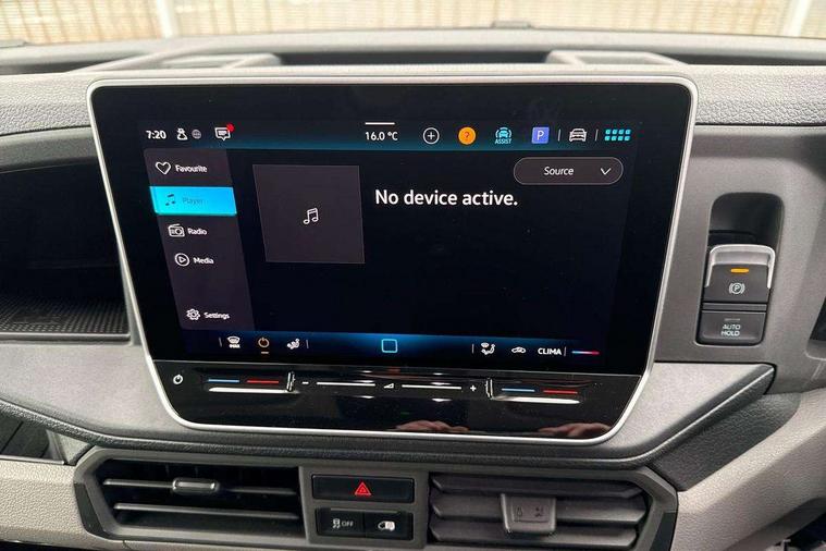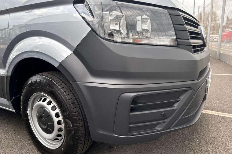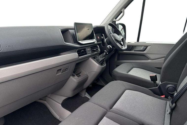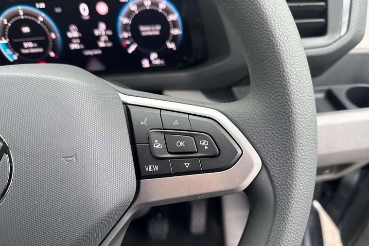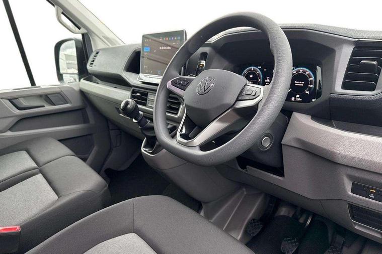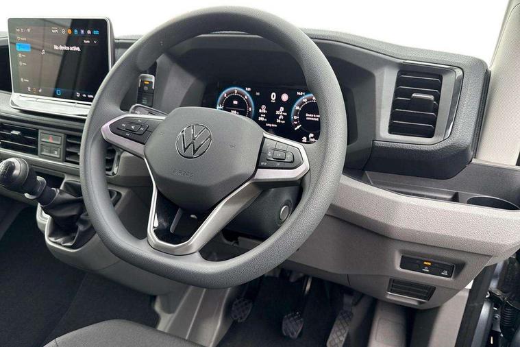 Advanced driver attention and drowsiness monitor, Blind spot monitor, Bluetooth, Digital clock, Digital cockpit with active Info display, Dynamic road sign display, E-call + We connect basic preparation, Forward collision warning with warning and braking reaction to vehicles, pedestrians and cyclists, Front assist including city emergency braking, Instrument cluster, Lane keeping assist, Lights on warning buzzer, Locking fuel cap, Rev counter, Roof console for interior lighting control, Service indicator, Speedometer, USB socket at top of windscreen, Wireless charging, 2 USB C ports in dashboard, DAB Radio, Auto low beam mode, Leaving home function and manual coming home function, Black unpainted plastic front bumper, Cab doors, Convex and wide angle mirror, Driver seatbelt warning light, Electric windows, Heat insulating glass, Indicators in front door mirrors, One towing eye in front, Rear badges, Special identification plate, Touch panel control for exterior lights, Unpainted radiator grille, Windscreen wiper auto control with light and rain sensor, Air recirculation system, Ashtray, Centre console storage tray, CFCU preparation, Charcoal filter, Document holder on centre console, Drinks holders, Electromechanical Servotronic steering, Electronically controlled heating system, Fully adjustable suspension type driver seat, Height adjustable head restraints, Height and reach adjustable steering wheel, Illuminated glove compartment with lockable lid, Interior light, including 2 reading lights, Interior light, switchable by door, Jack and tool kit, Preparation for interface for external use with terminal block, Storage compartments in doors and in step, right, Storage tray on dashboard, Two 12V outlets in the cab (in the dashboard), Without rear side trim panel passenger load compartment, Non-smokers pack - Crafter, 3 point inertia reel belt on all seats, Automatic hazard light with emergency braking, Crosswind assist, Driver and front passenger airbag with front passenger airbag deactivation, Height adjustable seatbelts for outer cab seats, 1 rigid key, Central locking system with Keyless Go without SAFELOCK entry - Keyless entry and start, Engine immobiliser, ABS, Automatic post collision braking system, EBA, EBD, EDL, Electronic parking brake - hill hold control, ESP, Front disc brakes, HBA, Hill start assist, Start and stop system with regenerative braking, TCS, Hub cap covers,