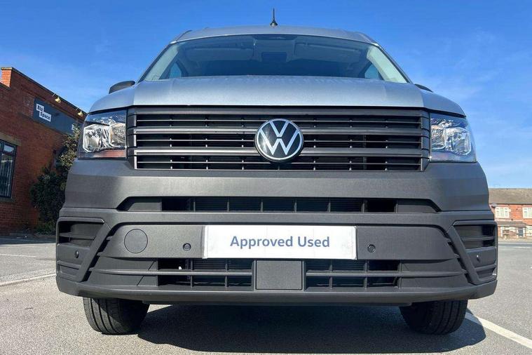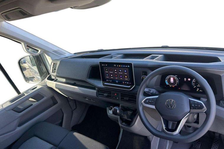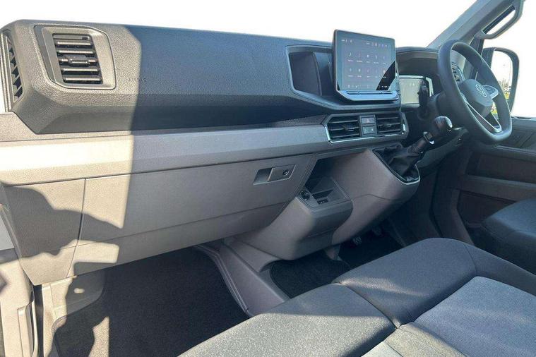 Advanced driver attention and drowsiness monitor, Blind spot monitor, Bluetooth, Digital clock, Digital cockpit with active Info display, Dynamic road sign display, E-call + We connect basic preparation, Forward collision warning with warning and braking reaction to vehicles, pedestrians and cyclists, Front assist including city emergency braking, Instrument cluster, Lane keeping assist, Lights on warning buzzer, Locking fuel cap, Rev counter, Roof console for interior lighting control, Service indicator, Speedometer, USB socket at top of windscreen, Wireless charging, 2 USB C ports in dashboard, DAB Radio, Auto low beam mode, Leaving home function and manual coming home function, Black unpainted plastic front bumper, Cab doors, Convex and wide angle mirror, Driver seatbelt warning light, Electric windows, Heat insulating glass, Indicators in front door mirrors, One towing eye in front, Rear badges, Special identification plate, Touch panel control for exterior lights, Unpainted radiator grille, Windscreen wiper auto control with light and rain sensor, Air recirculation system, Ashtray, Centre console storage tray, CFCU preparation, Charcoal filter, Document holder on centre console, Drinks holders, Electromechanical Servotronic steering, Electronically controlled heating system, Fully adjustable suspension type driver seat, Height adjustable head restraints, Height and reach adjustable steering wheel, Illuminated glove compartment with lockable lid, Interior light, including 2 reading lights, Interior light, switchable by door, Jack and tool kit, Preparation for interface for external use with terminal block, Storage compartments in doors and in step, right, Storage tray on dashboard, Two 12V outlets in the cab (in the dashboard), Without rear side trim panel passenger load compartment, Non-smokers pack - Crafter, 3 point inertia reel belt on all seats, Automatic hazard light with emergency braking, Crosswind assist, Driver and front passenger airbag with front passenger airbag deactivation, Height adjustable seatbelts for outer cab seats, 1 rigid key, Central locking system with Keyless Go without SAFELOCK entry - Keyless entry and start, Engine immobiliser, ABS, Automatic post collision braking system, EBA, EBD, EDL, Electronic parking brake - hill hold control, ESP, Front disc brakes, HBA, Hill start assist, Start and stop system with regenerative braking, TCS, Hub cap covers,