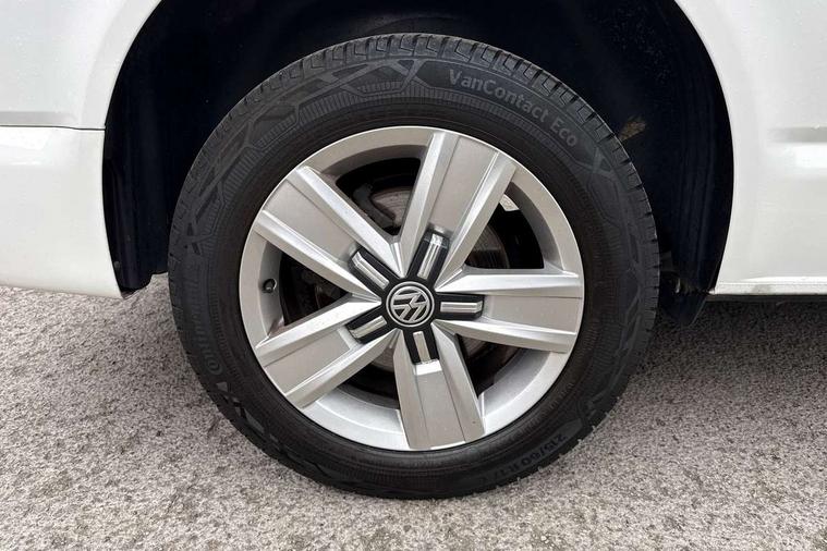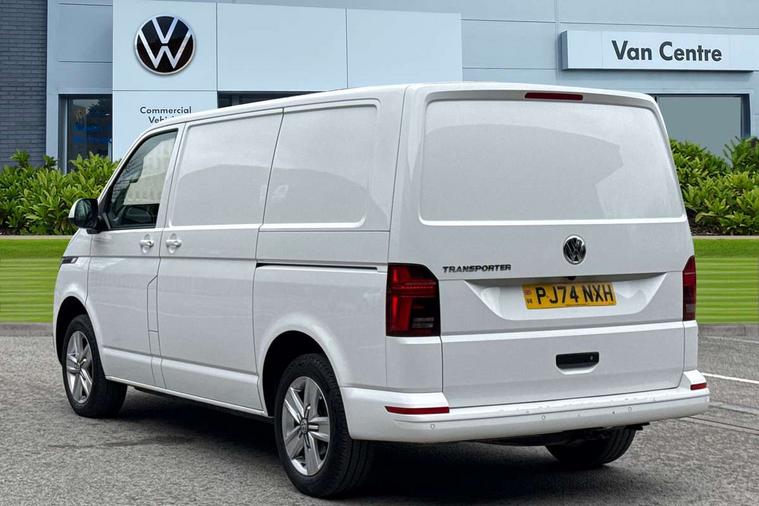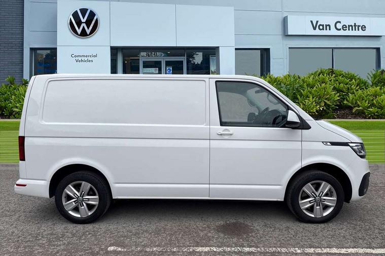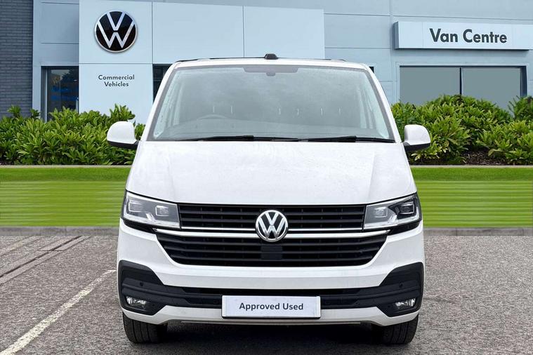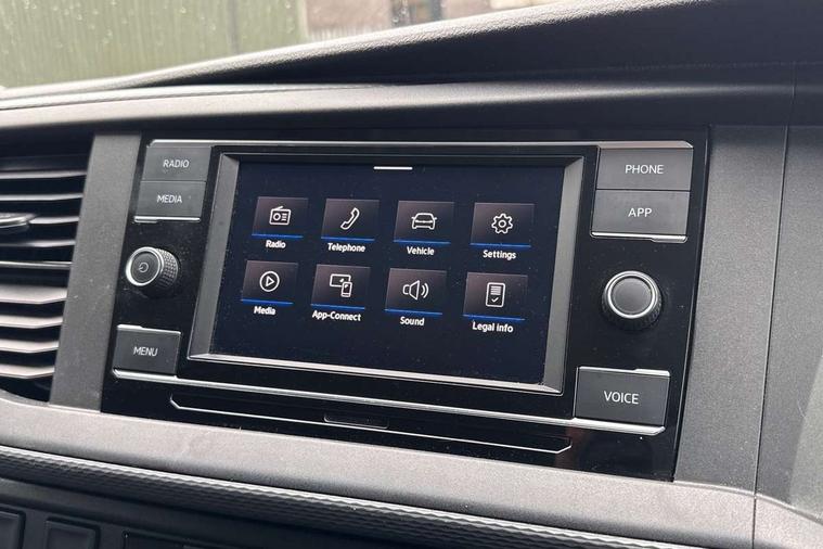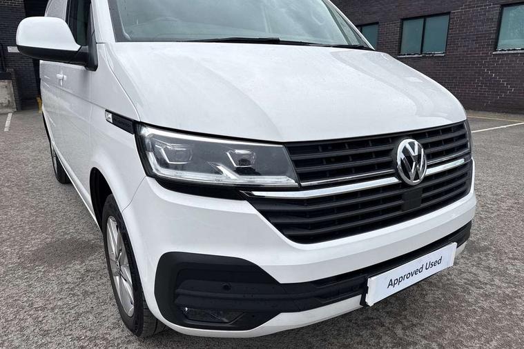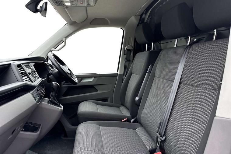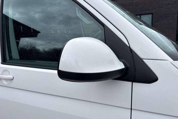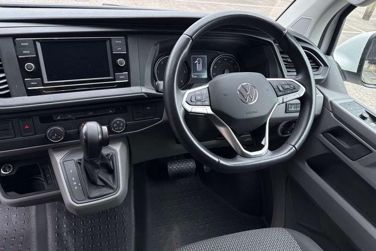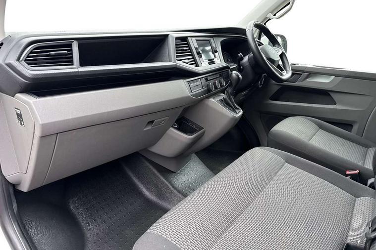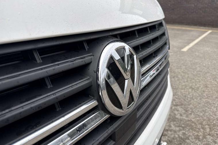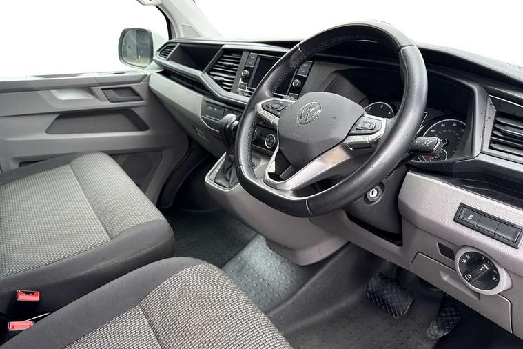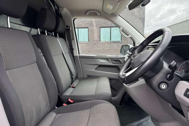Adaptive cruise control, Cross wind assist, Dimmable illuminated instruments, Driver alert with Multi-function display plus, eCall emergency system, Forward collision warning front assist with autonomous emergency braking, Mobile phone interface, Multi function display plus with black and white display, 2 USB interfaces type C in dashboard, 4 speakers with 2 tweeters and 2 woofers, Composition colour radio with 6.5" touchscreen, Digital radio reception (DAB+), Volkswagen app connect, Closing rear wing door with unlatching from the inside, Front fog lamps with cornering light, Heat insulating glass (green) in cab and passenger/load compartment, Heated front windscreen, Left convex exterior mirror, Power folding adjustable door mirrors with separately heated, Radiator grille with 2 chrome trims, Rear wing doors without window apertures, Right convex exterior mirror, Transporter nameplate on the rear fender, 3 spoke leather wrapped multi function steering wheel, Comfort headliner in cab, hardboard roof trim in passenger and load compartment, Dust/pollen filter, Front and rear left without window closed side panel in load compartment, Front seats on the right in 1st row of seat, Heavy duty tool kit and jack, High partition, Interior plastic loading edge protection, LED Interior lighting in load and passenger compartment, Refrigerant R134a, Standard lower part dashboard in palladium, Storage compartments on cab seats and reading light, Without right side window apertures in passenger and load compartment, Comfort pack - Transporter, Exterior pack without fog light- Transporter, Light and vision pack - Transporter, Non smoker pack - Transporter, 3 point height adjustable seat belts on outer seats cab with electric pretensioners, Driver and front passenger airbag with front passenger airbag deactivation, Warning buzzer and light for driver and front passenger seat belt not fastened, Without child safety lock in passenger compartment, Anti theft alarm system with interior monitoring in cab, backup horn and towing protection, Lockable wheel bolts, 16" chassis with 16" brake system, Diesel particulate filter, Electronic stability control, ABS, ASR with deactivation button, hill start assist and brake assist system, Start/stop system with regenerative breaking, 17" Devonport alloy wheels,