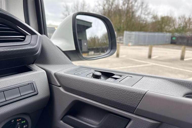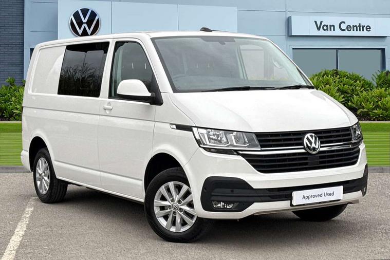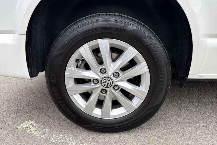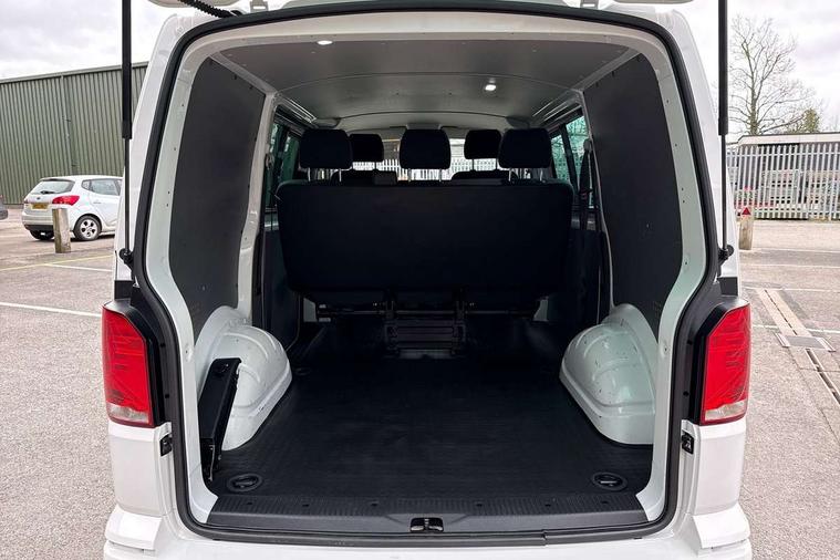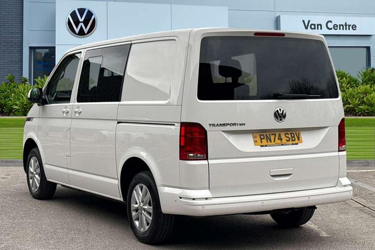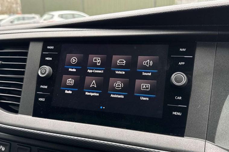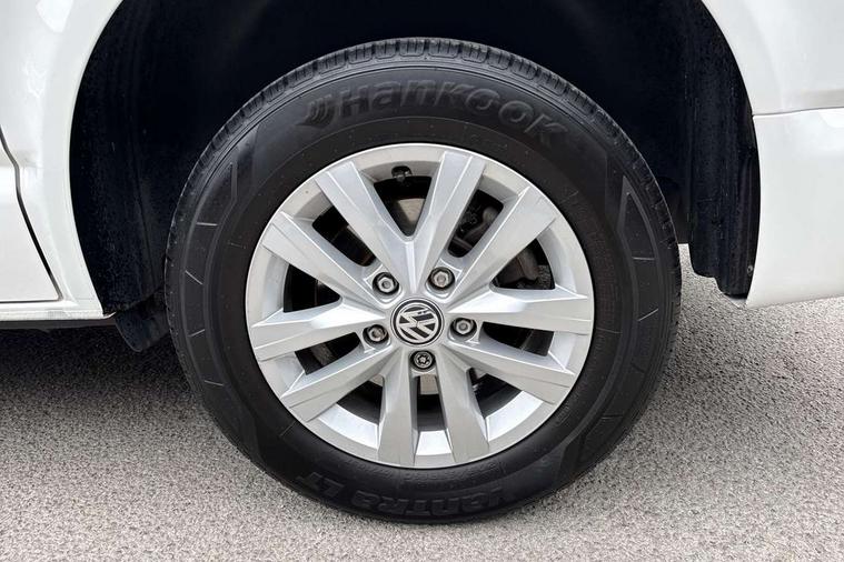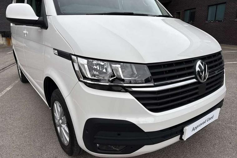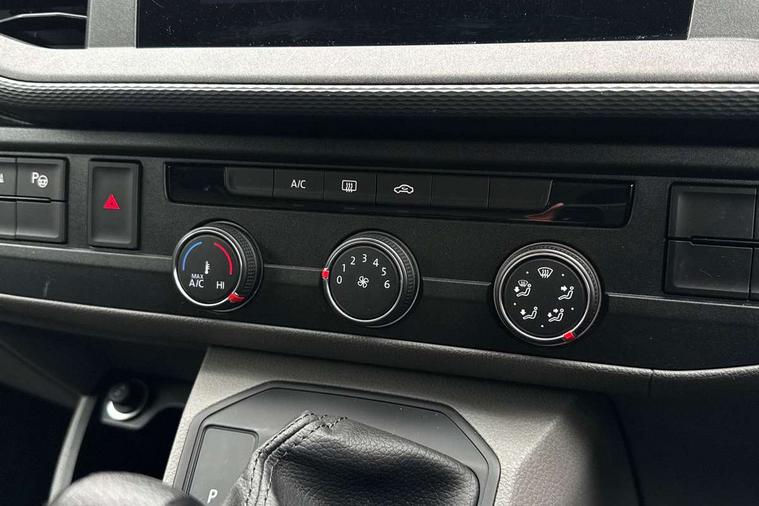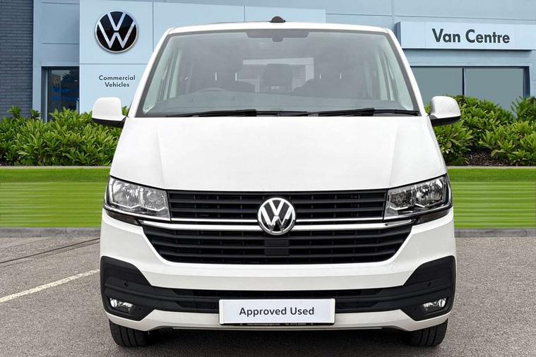 Adaptive cruise control, Child seat anchors ISOFIX and top tether in 2nd row of seats, Cross wind assist, Dimmable illuminated instruments, Driver alert with black and white multi function display plus, eCall emergency system, Forward collision warning front assist with autonomous emergency braking, Headlight range control, Mobile phone interface, Without voice control, 2 USB interfaces type C in dashboard, 4 speakers with 2 tweeters and 2 woofers, Composition colour radio with 6.5" touchscreen, Digital radio reception (DAB+), Volkswagen app connect, Automatic headlight control, leaving home and manual coming home feature, Front fog lamps with cornering light, Green heat insulating glass, Heated front windscreen, Illuminated steps in passenger/load compartment, Left convex exterior mirror, Power folding adjustable door mirrors with separately heated, Privacy glass from the B-pillar and heat-insulating glass in front, Radiator grille with 2 chrome trims, Rear window with heated insulating glass, heated rear window wiper and washer system, Right convex exterior mirror, Tailgate closing with unlatching from the inside, Transporter nameplate on the rear fender, Windshield wiper intermittent control with rain sensor for windshield wipers, Without adhesive film, 3 spoke leather wrapped multi function steering wheel, Additional sound deadening measures in cab and passenger compartment, Auto dimming breakaway interior rear view mirror, Comfort headliner in cab, hardboard roof trim in passenger and load compartment, Dust/pollen filter, Folding grab handles and storage compartments on cab seats, reading light, Front seats on the right in 1st row of seat, Glove compartment with illumination, Heavy duty tool kit and jack, Interior plastic loading edge protection, Lashing rings for load restraint system, LED Interior lighting in load and passenger compartment, Manual height adjustable and lumbar support for driver and single passenger seats, Medium height for vehicles with window aperture hardboard side trim panels in passenger/load compartment, Refrigerant R134a, Standard lower part dashboard in palladium, Without partition, Without seats in 3rd row of seats, Comfort pack - Transporter, Exterior pack without fog light- Transporter, Light and vision pack - Transporter, Non smoker pack - Transporter, 3 point height adjustable seat belts on outer seats cab with electric pretensioners, Driver and front passenger airbag with front passenger airbag deactivation, Power operated child safety lock, Warning buzzer and light for driver seat belt not fastened, Anti theft alarm system with interior monitoring in cab, backup horn and towing protection, Lockable wheel bolts, 16" chassis with 16" brake system, Additional 12V socket, Diesel particulate filter, Electronic stability control, ABS, ASR with deactivation button, hill start assist and brake assist system, Speed limiter, Start/stop system with regenerative breaking, 16" Clayton alloy wheels, Wheel trims,