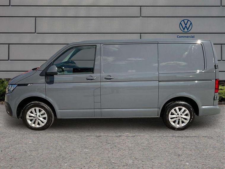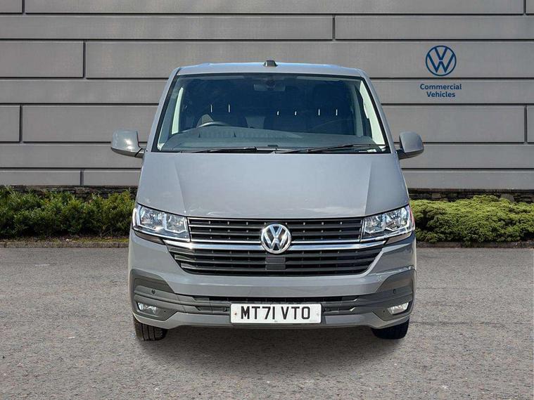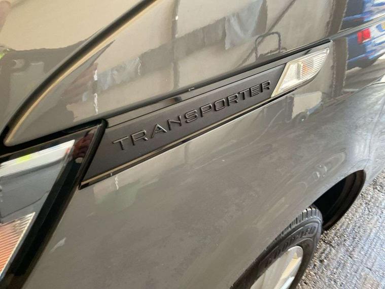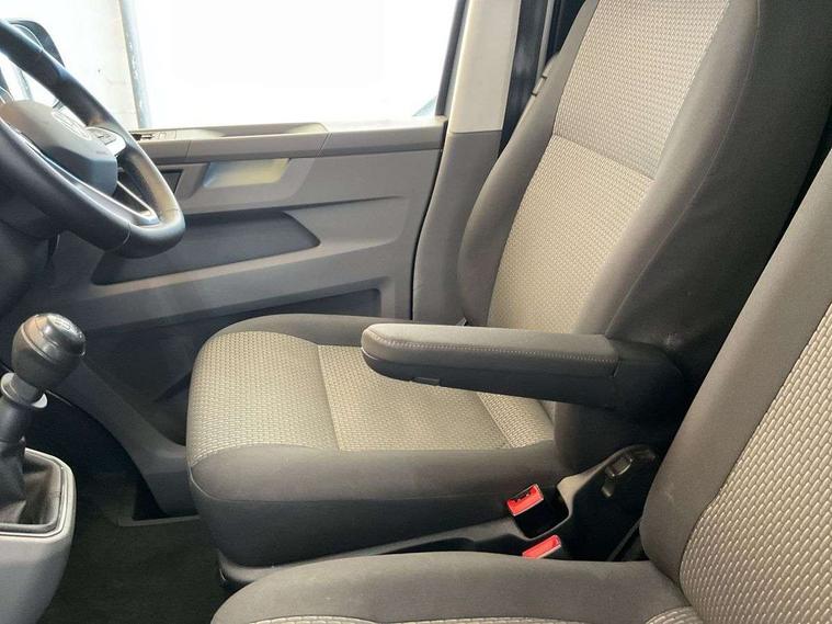 Adaptive cruise control, Cross wind assist, Dimmable illuminated instruments, Driver alert with Multi-function display plus, eCall emergency system, Electromechanical speed sensitive power steering, height and longitudinally adjustable steering column, Forward collision warning front assist with autonomous emergency braking, Mobile phone interface, Multi function display plus with black and white display, 2 USB interfaces type C in dashboard, 4 speakers with 2 tweeters and 2 woofers, Composition colour radio with 6.5" touchscreen, Digital radio reception (DAB+), Volkswagen app connect, Automatic headlight control, leaving home and manual coming home feature, Closing rear wing door with unlatching from the inside, Front fog lamps with cornering light, Green tinted heat insulating glass in cab and passenger compartment, Heated front windscreen, Left convex exterior mirror, Power adjustable and heated exterior mirrors, Power folding adjustable door mirrors with separately heated, Radiator grille with 2 chrome trims, Rear wing doors without window apertures, Right convex exterior mirror, Transporter nameplate on the rear fender, Windshield wiper intermittent control with rain sensor for windshield wipers, 3 spoke leather wrapped multi function steering wheel, Auto dimming breakaway interior rear view mirror, Comfort headliner in cab, hardboard roof trim in passenger and load compartment, Dust/pollen filter, Front and rear left without window closed side panel in load compartment, Front seats on the right in 1st row of seat, Glove compartment with illumination, High partition, Interior plastic loading edge protection, LED Interior lighting in load and passenger compartment, Manual adjustable lumbar support for right single seat in 1st row seats, Refrigerant R134a, Rubber floor covering in cab, Standard lower part dashboard in palladium, Storage compartments on cab seats and reading light, Without right side window apertures in passenger and load compartment, Comfort pack - Transporter, Exterior pack without fog light- Transporter, Non smoker pack - Transporter, 3 point height adjustable seat belts on outer seats cab with electric pretensioners, Driver and front passenger airbag with front passenger airbag deactivation, Single tone horn, Warning buzzer and light for driver and front passenger seat belt not fastened, Without child safety lock in passenger compartment, Anti theft alarm system with interior monitoring in cab, backup horn and towing protection, Lockable wheel bolts, 16" chassis with 16" brake system, Diesel particulate filter, Electronic stability control, ABS, ASR with deactivation button, hill start assist and brake assist system, Start/stop system with regenerative breaking, 16" Clayton alloy wheels,