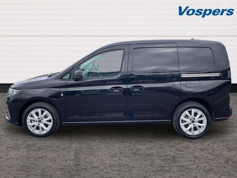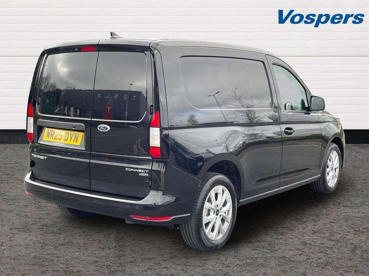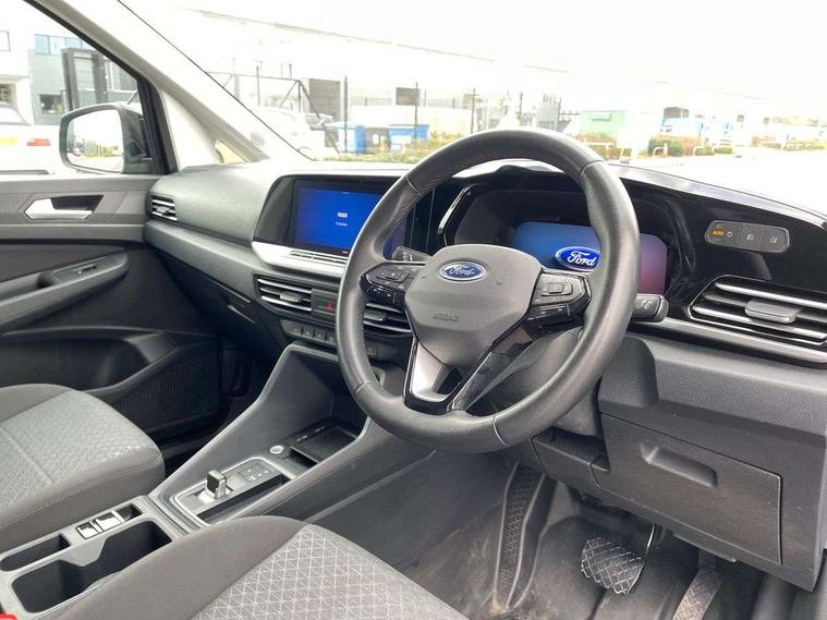 10" touchscreen infotainment display with volume and temperature slider controls, Android Auto and Apple Carplay with USB or wireless connectivity, Brake wear indicator, Enhanced digital cluster with navigation integration, Fordpass connect modem including eCall, Front camera system, PAS, Tyre pressure monitoring system with cluster display of tyre pressures, Wireless charging pad, 4 speakers, DAB radio bluetooth, voice control and navigation, Two USB (45W type C) front power/Data points, Auto Headlamps - Follow Me Home, Automatic headlamps on/off, Automatic windshield wiper, Black painted exterior mirror caps, Body colour door handles with silver door rail, Body coloured exterior tailgate handle, Body coloured front bumper, Body coloured rear bumper, Chrome grille and fog light surrounds, Day and night inside mirror, Dual power heated mirrors, Emergency brake light flashing, Front fog lights, High mounted stop lamp, Less roof rails, Misfuel Inhibitor, Power folding door mirrors, Power front windows - One touch up-down, Quickclear electric windshield defroster, Rear tinted glass, Standard green class windscreen, Tail lamps, Weather protection seals, 12V socket in cabin, 2 way front headrestraints, 4 way manually adjustable driver seat, 4 way manually adjustable passenger seat, Cargo area dual LED lights, Cargo area hardboard trim, Centre console with open stowage, Chrome air register, Driver and passenger sunvisor with mirror, Driver seat rotary recliner, Electronic dual zone automatic air conditioning, First row LED light with map lights, Fold flat passenger seat with integrated work surface, Foot pedal, Overhead storage compartment, Pollen filter without carbon filter, Reach and rake adjustable steering column, Recirculation heater, Rubber cab floor cover, Rubber load floor cover, Sensico gear shift knob, Sensico steering wheel, Silver interior door handles, Curtain airbags, Driver and front passenger airbag, Driver and passenger seatbelt reminder, Front active seat belts, Front passenger airbag deactivation, Front seat belt adjuster, 2 remote keys, Ford KeyFree system with power starter button and deadlocking, Immobiliser, Locking wheel bolts, Thatcham alarm system, 12v socket on cargo area, 50L fuel tank, ABS, Charging cable (Type 2 Mode 3), Electric parking brake, Emergency brake assist, ESP, RSC, wind mitigation, Standard duty alternator, Start/stop system, Traction control, Gloss black cluster and infotainment bezels with silver painted instrument panel spear, 17" silver alloy wheels with blue centre caps, 215/55 R17 tyres, Tyre repair kit,