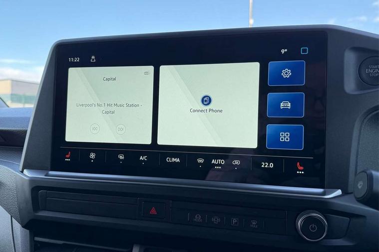 12" digital drivers display, 13" touchscreen infotainment display with wireless app connect and DAB radio, 5G Modem, Adaptive cruise control, Apple CarPlay and Android Auto, Dynamic road sign display, eCall emergency system, Electromechanical speed sensitive power steering, height and longitudinally adjustable steering column, Lane and blind spot assist with exit warning system, Preparation of VW connect and connect plus, Wireless mobile phone charging, Wrong way driver warning, Body colour bumpers, Body coloured door handles, Body coloured door mirrors, Body coloured radiator grille, Electrically heated, adjustable and folding door mirrors, Heat reflecting side window glass, Mud flaps front and rear, Rear Transporter nameplate in black grained decorative trim, Vehicle opening configuration 1x 1st row of seats, 2x all doors, 12V outlet in centre console and 12V outlet on rear right D-pillar, 2x 15-W USB data/charging ports in dashboard and 1x USB-C, 1x USB-A center bottom, 2x LED lights in load compartment, 3x additional super bright LED lights in load compartment, 4 way height and tilt adjustable head restraints, 5 additional USB-C charging ports, Black plastic scuff plate for sliding door in cargo without illumination, Cabin interior lighting, Glasses compartment in driver side roof, Grab handle on A-pillar passenger side, Illuminated lockable glovebox, Lashing rings for reinforced floor covering, Leatherette gear lever, Narrow centre console with cup holder and compartment for mobile phone, Overhead storage compartment, Rubber floor covering in cab, Striped fabric upholstery, Without passenger seats in load compartment, Driver and front passenger airbag with front passenger airbag deactivation, Dual tone horn, Front and curtain airbags for driver and front passenger, Seat belt pretensioner for driver seat, Anti theft alarm system with interior monitoring in cab, backup horn and towing protection, Electronic immobiliser, Lockable wheel bolts, Preparation for alcohol ignition interlock, 5+ Promise, Alternator - 230A, Electromechanical brake booster, Electronic stability control, ABS, ASR with deactivation button, hill start assist and brake assist system,