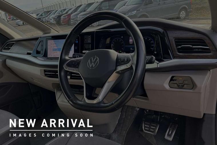 Adaptive cruise control with C2X including front assist and city emergency braking system, App-Connect incl. App-Connect Wireless for Apple CarPlay and Android Auto, Digital Cockpit Pro with 10.25" Display, Driver alert system, Dynamic road sign display, eCall emergency system, Electric tailgate with virtual pedal, Electrically-operated tailgate opening and closing function (Easy open), operated via foot movement under rear tailgate, Emergency assist, Lane keeping system Lane Assist, Mobile phone interface, PAS, Semi-automated driving assistance, Travel assist, Voice control system including Alexa web app, We connect preparation, Electronic differential lock, 2 USB-C ports in front and 4 USB-C ports in passenger compartment, Digital radio reception (DAB+), Additional interior noise reduction measures, Advanced high beam control dynamic light assist for LED matrix headlamps, Automatic headlight control with welcome home lights, Body coloured exterior door handles, Break away auto dimming rear view interior mirror, Chrome trim decorative strip mid-way on side and rear, Dynamic headlight range control with dynamic cornering light, Electric sliding rear side door on the left/right with easy open feature, Electrically adjustable, heated and folding door mirrors, Front fog lights, Glossy black painted radiator grille with 2 illuminated chrome trims, Heated rear window with window wiper and washer system, Heated windscreen, High gloss black exterior mirror housing, IQ.Light LED matrix headlamps with LED separate daytime running light, Laminated safety glass windshield, heat and sound insulating, LED 3rd brake lamp, LED rear combination lamps, Rear wiper, Sliding windows in front sliding doors and fixed rear windows, Stainless steel tailgate trim, Surround lighting in door area and tailgate with logo projection in door area, Windshield wiper intermittent control with rain sensor, 1 x 12V sockets on the dash panel, 12V socket in passenger compartment, 3 seat bench in 3rd row, 30 colours ambient interior lighting and tailgate surround lighting, 7 single seats removable/movable, Carpet mats in cab, Climatronic 3 zone air conditioning with 2nd evaporator, auxiliary heater, air conditioned headliner and additional passenger control, Front and rear head restraints, Grab handles on A pillar for access, on driver and front passenger side, Heated steering wheel, Height adjustable seats, Height and longitudinal adjustment steering wheel with gear shift paddles, Illumination lockable glovebox compartment, ISOFIX (including i-size) and top tether in all seats in 2nd and 3rd rows, LED luggage compartment lighting X 2, Load compartment partition to 20kg with bag hooks and luggage net, Luggage compartment lid power latching with unlatching from inside, Multifunction leather steering wheel with tiptronic, Reinforced carpet floor covering in passenger compartment, Removable armrests for front seats with power adjustable lumbar support and folding table for 2nd row passenger seats, Removable armrests in 2nd row passenger seats, Single front passenger seat, Slidable multifunction table/centre console with 3 cup holders, Stainless steel pedals, Storage compartment under the 2nd and 3rd row seat and two waste bins, Sun visors with illuminated vanity mirrors and airbag warning label on front passenger sun visors, 3x3 point rear seat belts, ABS, Automatic post collision braking system, Autonomous emergency braking front assist with pedestrian and cyclist monitoring, Driver and front passenger airbag with front passenger airbag deactivation, Electric childproof lock, Electronic stability control (ESC) and Electromechanical brake booster, ESP, First aid kit with warning triangle and safety vest, Front disc brakes, Hill hold assist, Seat belt warning for the drivers and all passengers seats if unfastened, Side and curtain airbags for driver and front passenger, curtain airbags for outer seats in rear, centre airbag in front, Single tone horn, Traction control, Tyre pressure monitoring system, Anti theft alarm system with interior monitoring in cab, backup horn and towing protection, Central locking system keyless entry with touch two stage unlocking, Start/stop button on centre console, Dark woodgrain optic decorative inserts,