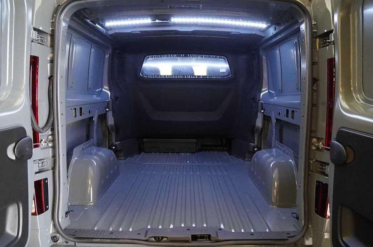 8" touchscreen, Audio remote control switches on steering wheel, Bluetooth, Car phone pre installed, Cruise control, Front parking sensor, Low fuel level warning light, Navigation system, PAS, Rear parking sensor, Rear view camera, Service indicator, Trip computer, Aux port, Digital radio (DAB), Radio/CD player, USB socket/iPod interface, Automatic headlights and wipers, Blind spot mirror in sunvisor, Body colour bumpers, Body coloured exterior mirrors, Daytime running lights, Electric door mirrors, Electric folding door mirrors, Electric front windows with one touch drivers window, Fog lights, Heated exterior mirror with temperature sensor, LED headlights, Left side sliding door, 12V socket, 6 x cargo load mounting hooks on C and D pillars, 8 x cargo floor load mounting hooks, Cloth upholstery, Drivers armrest, Foldable passenger seat with fixed table, Front head restraints, Front manual AC, Full steel bulkhead, Height adjustable driver seat with lumbar support, Leather gear lever, Leather steering wheel, Passenger bench with underseat storage, Steering wheel rake adjustment, Steering wheel reach adjustment, Driver's airbag, Passenger airbag, Alarm, Deadlocks, Insurance approved immobiliser, Remote central locking, ABS + EBD, ESP, 17" alloy wheels, Full size spare wheel,