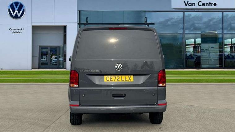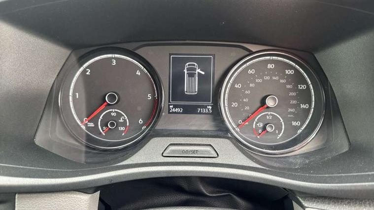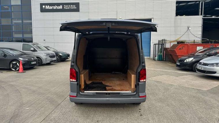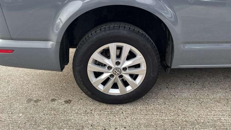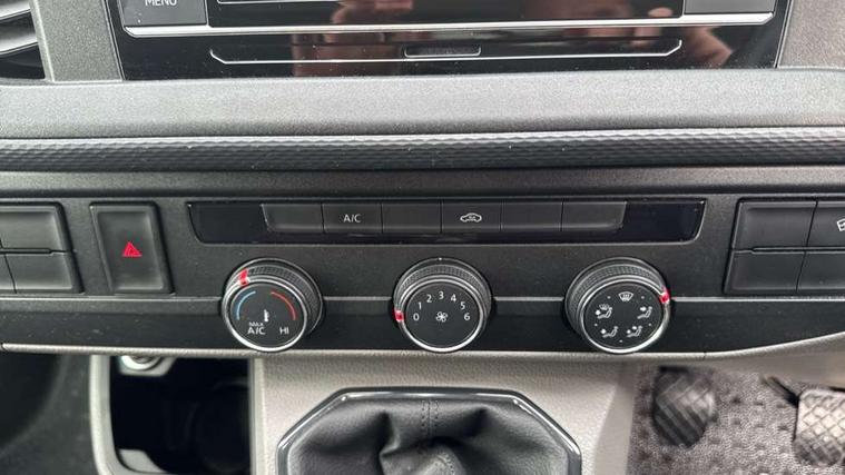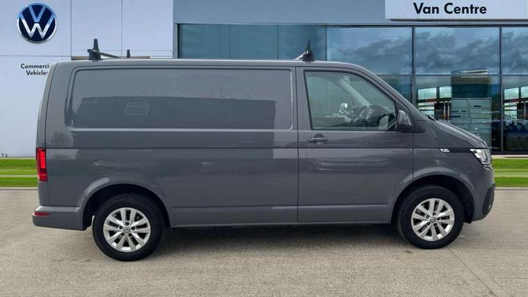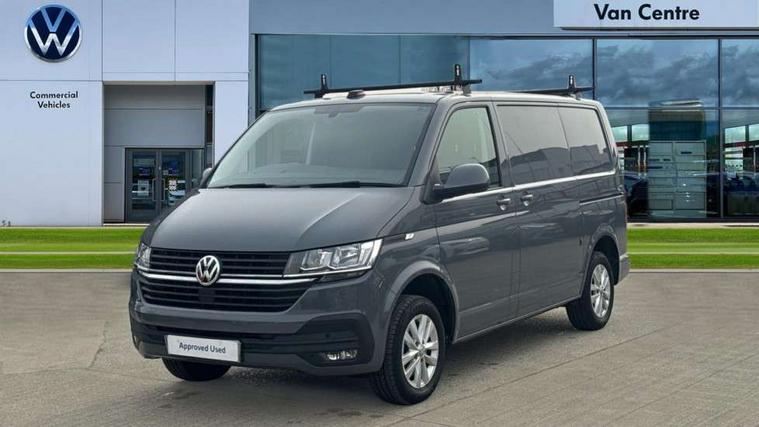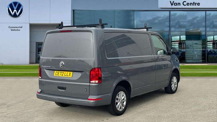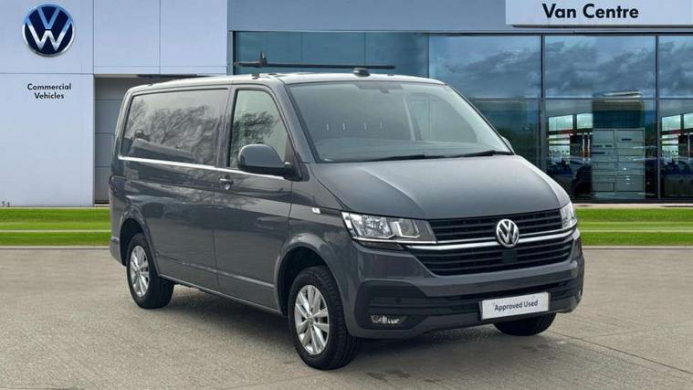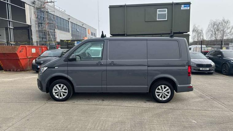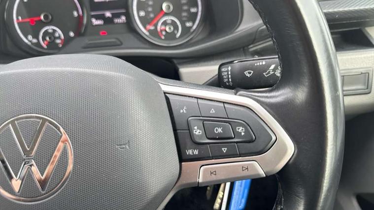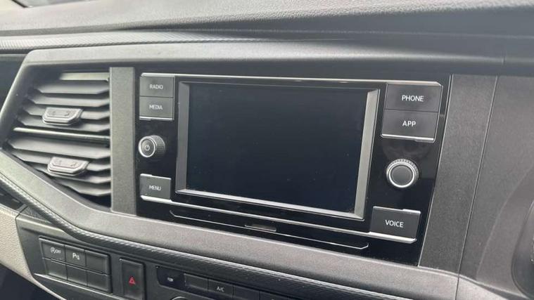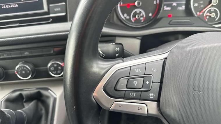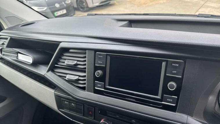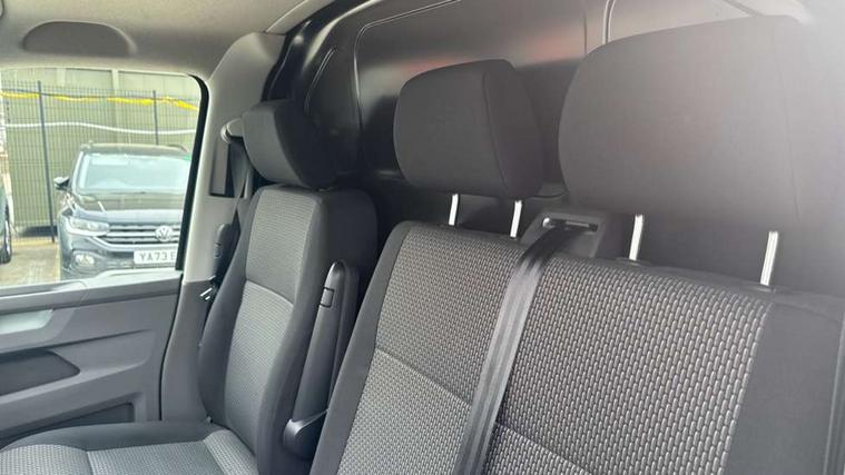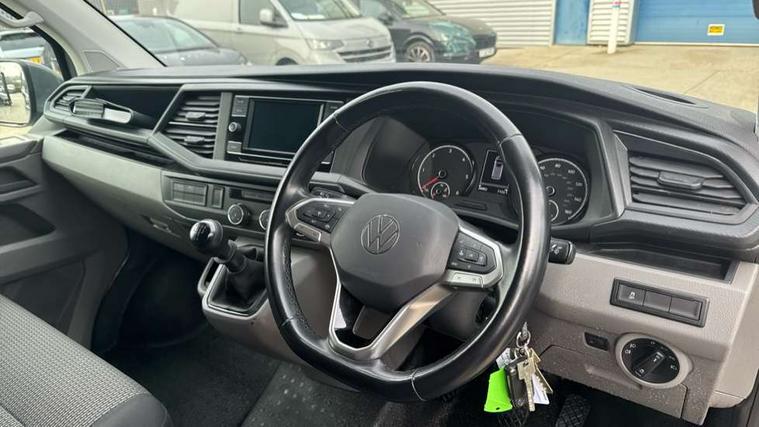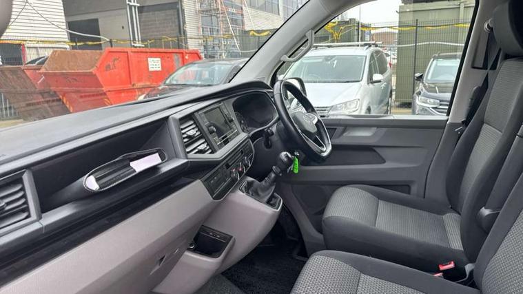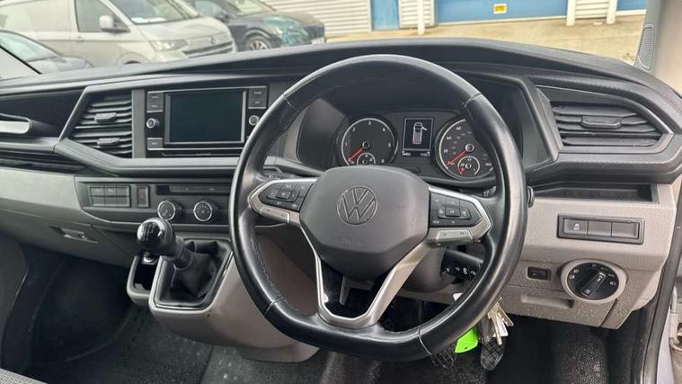Adaptive cruise control, Cross wind assist, Dimmable illuminated instruments, Driver alert with Multi-function display plus, eCall emergency system, Electromechanical speed sensitive power steering, height and longitudinally adjustable steering column, Forward collision warning front assist with autonomous emergency braking, Mobile phone interface, Multi function display plus with black and white display, 2 USB interfaces type C in dashboard, 4 speakers with 2 tweeters and 2 woofers, Composition colour radio with 6.5" touchscreen, Digital radio reception (DAB+), Volkswagen app connect, Automatic headlight control, leaving home and manual coming home feature, Closing rear wing door with unlatching from the inside, Front fog lamps with cornering light, Heat insulating glass (green) in cab and passenger/load compartment, Heated front windscreen, Left convex exterior mirror, Power folding adjustable door mirrors with separately heated, Radiator grille with 2 chrome trims, Rear wing doors without window apertures, Right convex exterior mirror, Transporter nameplate on the rear fender, Windshield wiper intermittent control with rain sensor for windshield wipers, 3 spoke leather wrapped multi function steering wheel, Auto dimming breakaway interior rear view mirror, Comfort headliner in cab, hardboard roof trim in passenger and load compartment, Dust/pollen filter, Front and rear left without window closed side panel in load compartment, Front seats on the right in 1st row of seat, Glove compartment with illumination, Heavy duty tool kit and jack, High partition, Interior plastic loading edge protection, LED Interior lighting in load and passenger compartment, Manual adjustable lumbar support for right single seat in 1st row seats, Refrigerant R134a, Standard lower part dashboard in palladium, Storage compartments on cab seats and reading light, Without right side window apertures in passenger and load compartment, Comfort pack - Transporter, Exterior pack without fog light- Transporter, Light and vision pack - Transporter, Non smoker pack - Transporter, 3 point height adjustable seat belts on outer seats cab with electric pretensioners, Driver and front passenger airbag with front passenger airbag deactivation, Warning buzzer and light for driver and front passenger seat belt not fastened, Without child safety lock in passenger compartment, Anti theft alarm system with interior monitoring in cab, backup horn and towing protection, Lockable wheel bolts, 16" chassis with 16" brake system, Additional 12V socket, Diesel particulate filter, Electronic stability control, ABS, ASR with deactivation button, hill start assist and brake assist system, Start/stop system with regenerative breaking, 16" Clayton alloy wheels,
