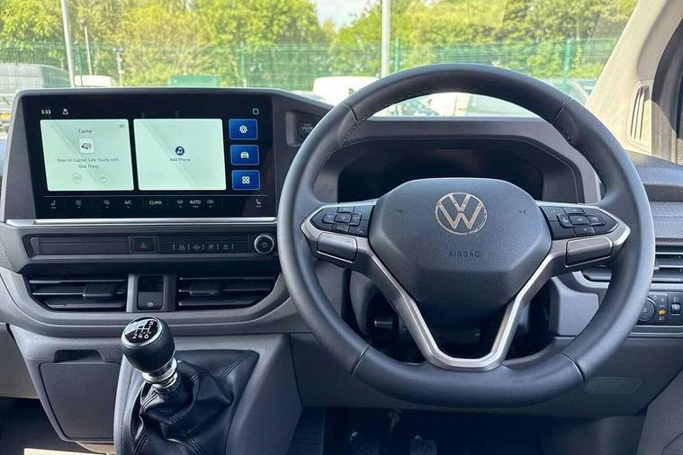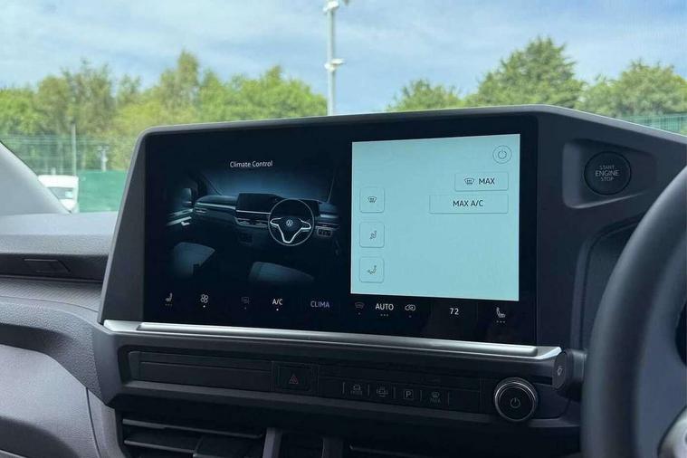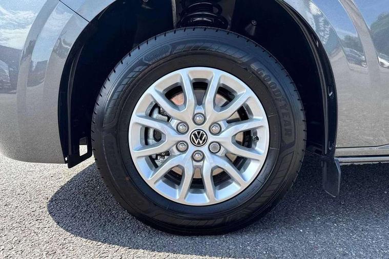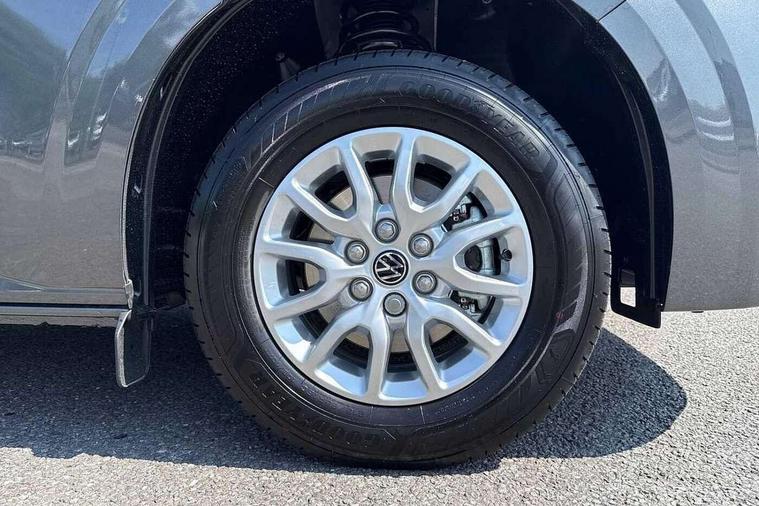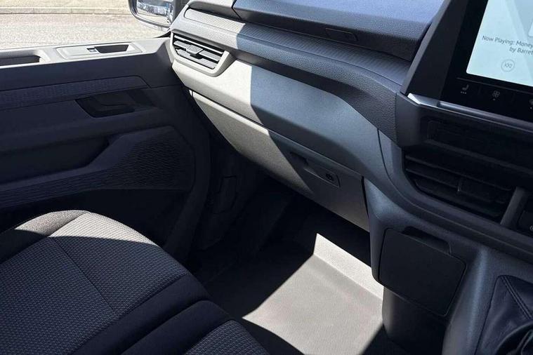 12" digital drivers display, 13" touchscreen infotainment display with wireless app connect and DAB radio, 5G Modem, Adaptive cruise control, Apple CarPlay and Android Auto, Dynamic road sign display, eCall emergency system, Electromechanical speed sensitive power steering, height and longitudinally adjustable steering column, Lane and blind spot assist with exit warning system, Preparation of VW connect and connect plus, Wireless mobile phone charging, Wrong way driver warning, Body colour bumpers, Body coloured door handles, Body coloured door mirrors, Body coloured radiator grille, Electrically heated, adjustable and folding door mirrors, Heat reflecting side window glass, Mud flaps front and rear, Rear Transporter nameplate in black grained decorative trim, Vehicle opening configuration 1x 1st row of seats, 2x all doors, 12V outlet in centre console and 12V outlet on rear right D-pillar, 2x 15-W USB data/charging ports in dashboard and 1x USB-C, 1x USB-A center bottom, 2x LED lights in load compartment, 3x additional super bright LED lights in load compartment, 4 way height and tilt adjustable head restraints, 5 additional USB-C charging ports, Black plastic scuff plate for sliding door in cargo without illumination, Cabin interior lighting, Glasses compartment in driver side roof, Grab handle on A-pillar passenger side, Illuminated lockable glovebox, Lashing rings for reinforced floor covering, Leatherette gear lever, Narrow centre console with cup holder and compartment for mobile phone, Overhead storage compartment, Rubber floor covering in cab, Striped fabric upholstery, Without passenger seats in load compartment, Driver and front passenger airbag with front passenger airbag deactivation, Dual tone horn, Front and curtain airbags for driver and front passenger, Seat belt pretensioner for driver seat, Anti theft alarm system with interior monitoring in cab, backup horn and towing protection, Electronic immobiliser, Lockable wheel bolts, Preparation for alcohol ignition interlock, 5+ Promise, Alternator - 230A, Electromechanical brake booster, Electronic stability control, ABS, ASR with deactivation button, hill start assist and brake assist system,