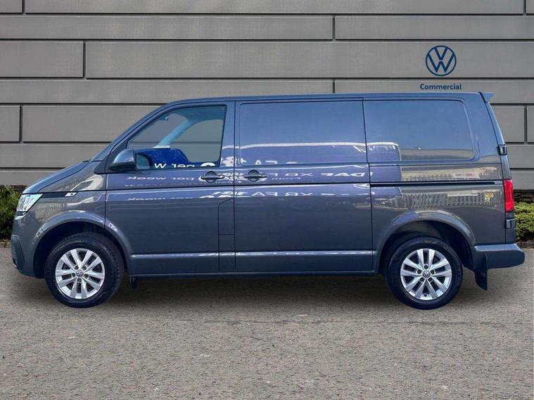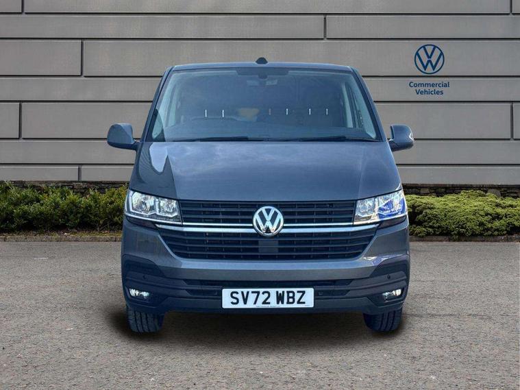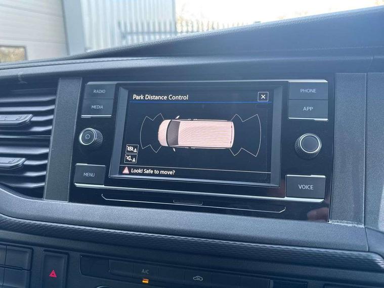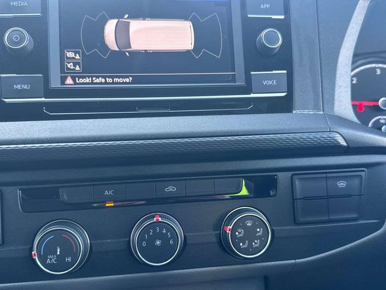 Adaptive cruise control, Cross wind assist, Dimmable illuminated instruments, Driver alert with Multi-function display plus, eCall emergency system, Forward collision warning front assist with autonomous emergency braking, Mobile phone interface, Multi function display plus with black and white display, 2 USB interfaces type C in dashboard, 4 speakers with 2 tweeters and 2 woofers, Composition colour radio with 6.5" touchscreen, Digital radio reception (DAB+), Volkswagen app connect, Automatic headlight control, leaving home and manual coming home feature, Closing rear wing door with unlatching from the inside, Front fog lamps with cornering light, Heat insulating glass (green) in cab and passenger/load compartment, Heated front windscreen, Left convex exterior mirror, Power folding adjustable door mirrors with separately heated, Radiator grille with 2 chrome trims, Rear wing doors without window apertures, Right convex exterior mirror, Transporter nameplate on the rear fender, Windshield wiper intermittent control with rain sensor for windshield wipers, 3 spoke leather wrapped multi function steering wheel, Auto dimming breakaway interior rear view mirror, Comfort headliner in cab, hardboard roof trim in passenger and load compartment, Dust/pollen filter, Front and rear left without window closed side panel in load compartment, Front seats on the right in 1st row of seat, Glove compartment with illumination, Heavy duty tool kit and jack, High partition, Interior plastic loading edge protection, LED Interior lighting in load and passenger compartment, Manual adjustable lumbar support for right single seat in 1st row seats, Refrigerant R134a, Standard lower part dashboard in palladium, Storage compartments on cab seats and reading light, Without right side window apertures in passenger and load compartment, Comfort pack - Transporter, Exterior pack without fog light- Transporter, Non smoker pack - Transporter, 3 point height adjustable seat belts on outer seats cab with electric pretensioners, Driver and front passenger airbag with front passenger airbag deactivation, Warning buzzer and light for driver and front passenger seat belt not fastened, Without child safety lock in passenger compartment, Anti theft alarm system with interior monitoring in cab, backup horn and towing protection, Lockable wheel bolts, 16" chassis with 16" brake system, Diesel particulate filter, Electronic stability control, ABS, ASR with deactivation button, hill start assist and brake assist system, Start/stop system with regenerative breaking, 16" Clayton alloy wheels,