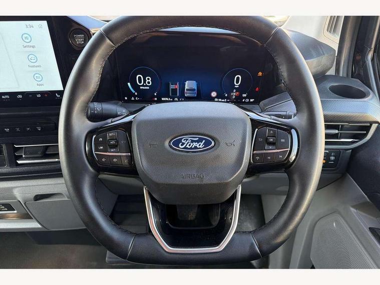 13" Touchscreen, 5G embedded modem, AECS NO SMS/Roll Detect 2G, PAS, Tyre pressure monitor, SYNC 4 - Android Auto/Apple Car Play, advance speech recognition, over the air update capability, Automatic headlights, Automatic windscreen wipers, Body coloured door mirrors, Body coloured front bumper, Body coloured rear bumpers, Daytime running lights, Electric front windows with one touch facility for driver and front passenger, Front mud flaps, Front splash guards, Low roof line, Quickclear front window defroster, Rear cargo hinged door, Rear splash guards, Trailer sway control, 8 Load compartment tie down loops, Courtesy light, Interior grab handle with driver's sunglasses holder, LED lights, Locking glove box lid, Sensico gearshift knob, 2 remote keys, Alcohol Interlock wiring preparation pack, Keyless entry and start, Locking wheel lug nut, Thatcham category 1 alarm, 20L AdBlue tank, ABS, Diesel particulate filter, ESP, Hill launch assist, Traction control, Full wheelcovers,