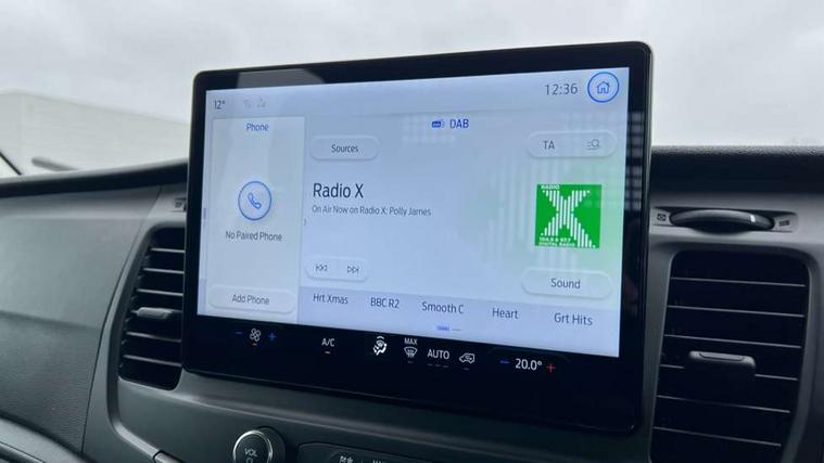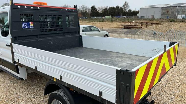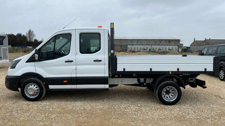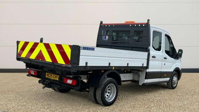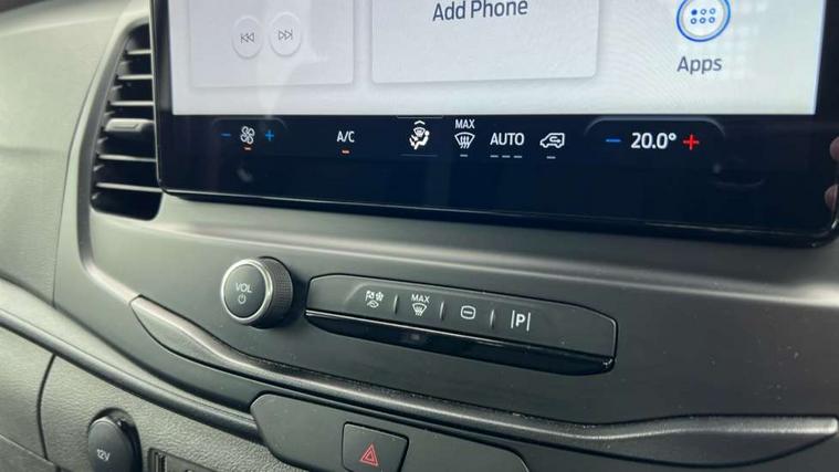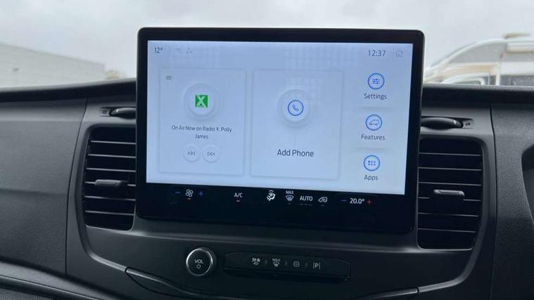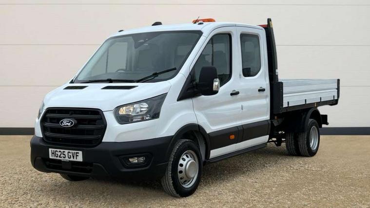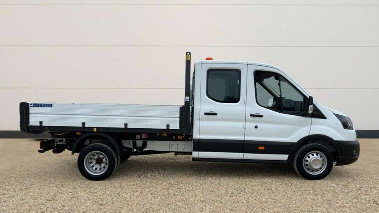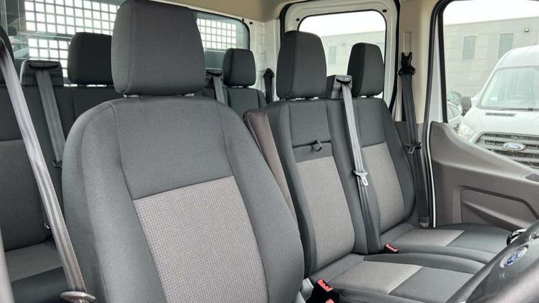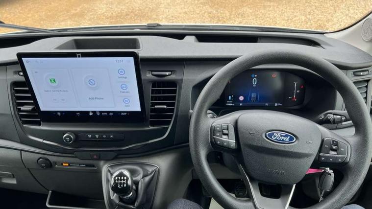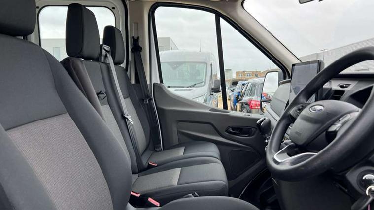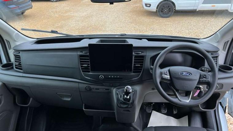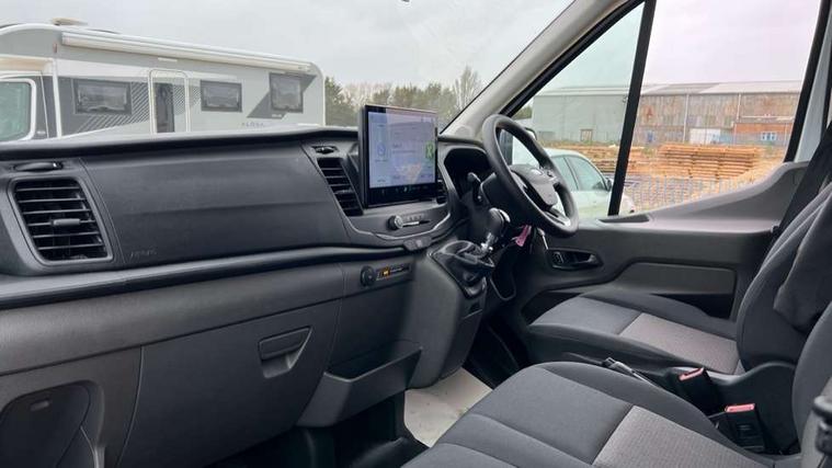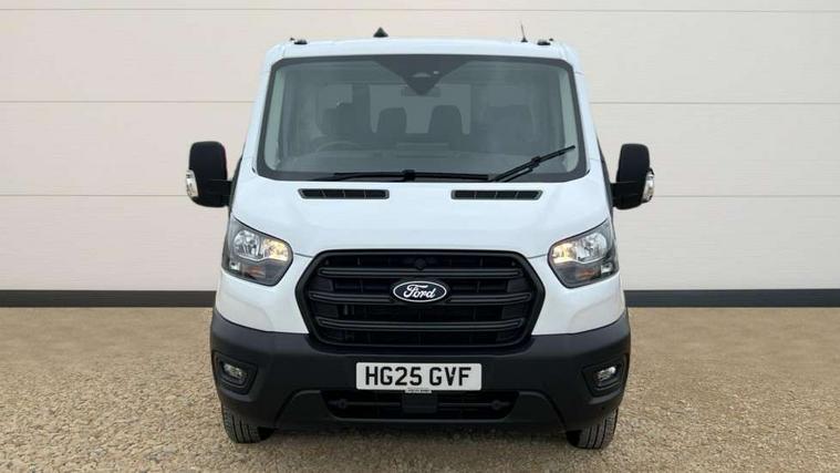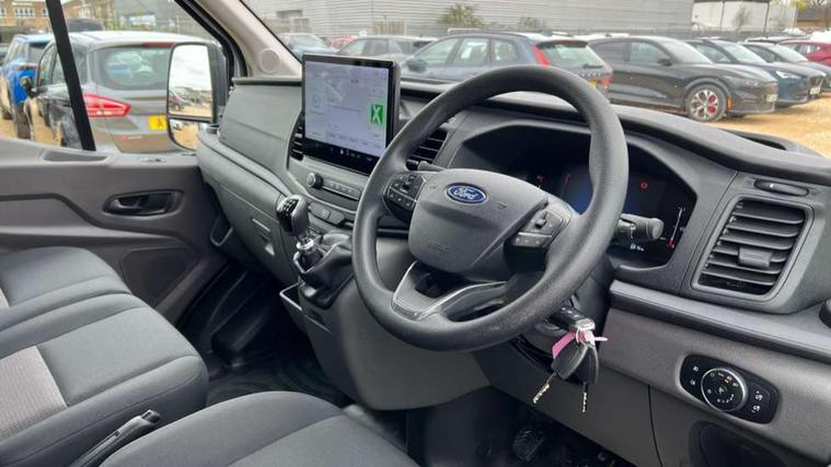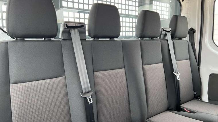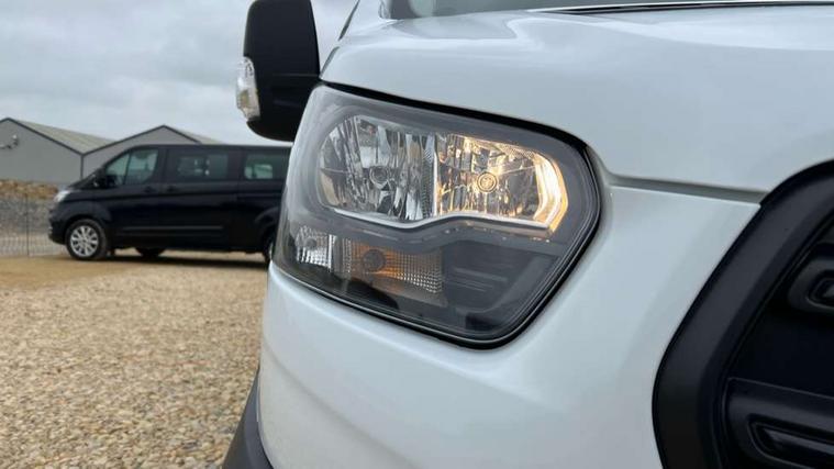 8" Part digital instrument cluster, Collision mitigation system, Electric power assisted steering (EPAS), Emergency assistance, Emergency brake warning, Ford Easy Fuel capless refuelling system with misfuel inhibit, Gearshift indicator light, Intelligent Speed Assist, Selectable drive modes - Normal, Slippery and Eco, Trip computer, Vehicle maintenance monitor, Warning lights, Water in fuel filter sensor, Wireless Apple CarPlay and Android Auto, Wrong way alert, 4 Front speakers (2 woofers and 2 tweeters), Audio controls mounted on steering wheel, Adaptive front lighting system, Automatic front wipers with rain sensor, Automatic on/off headlights, Complete tinted glass, Day/Night inside mirror, Daytime running lights, Door mirrors - Blind spot eliminator and integrated side indicator, Driver one touch up/down power windows, Exhaust exit behind muff down, Fixed 2nd row L/H side window, Fixed 2nd row R/H side window, Halogen projector headlights, Heavy duty ilo front plate, Low roof line, Part body colour front bumper, Quad beam headlamps, Rear fog lamps, Rear windows - Fixed glass only ilo less rear window, Roof marker lights, Roof mounted fin antenna, Self colour door handles, Self colour front grille, Side marker lamps, Unperforated cab back panel, Wide self colour bodyside mouldings, 2-way head restraints on front seats, 2-way head restraints on rear seats, 4-Spoke Polyurethane steering wheel, Centre console, Driver's side storage compartment on facia top, Extended easy clean rubber floor covering, Extended molded headliner, Extended moulded headlining, Front door map pockets, Header mounted courtesy lights front with theatre dimming, Less load compartment loops, Overhead console, Reach and rake adjustable steering column, Recirculation heater, Tablet holder, Twin, 2 litre bottle capacity, fascia mounted bottle holder, Underseat storage compartment (Under dual passenger seat), Rear seat pack 1 - Transit, 2 x ISOFIX child seat attachments on 2nd row, 3-point diagonal inertia reel seatbelts for all front seats, Driver and passenger seatbelt reminder, Driver seatbelt pre-tensioner, Driver's airbag, Front passenger's airbag including airbag deactivation switch, Front side and curtain airbags, Multi stage vehicle, Standard seatbelts for all rear seats, Tyre pressure monitoring system, Audio mis-lock feedback, audible signal if a door is ajar when locking activated, Auto locking on drive away, doors automatically lock at 5 mph, Immobiliser - Safeguard passive anti-theft system (PATS), Key operated bonnet release, Multi channel door entry remote, Power central locking, Remote control central locking with 1 key fob, Visible Vehicle Identification Number (VIN), 2 x 12V power outlets, AdBlue aftertreatment system - 24 Litre, Anti-lock braking system (ABS) with electronic brake-force distribuition (EBD), Battery - Cold start function (-20 degree C), Brakes - ESP/HLA/FBS, Curve control, Dual circuit front and rear discs with self adjusting servo assistance, Electric parking brake, Electronic dynamic cornering control, Electronic Stability Control (ESC), Emergency brake assist, Front independent MacPheron struts, linear rate coil springs, stabiliser bar, gas pressured shock absorbers and rear leaf springs, Hill start assist, Load adaptive control, Non limited slip differential front axle, Rear axle Alt A - Narrow track, Roll stability control, Side wind mitigation, Start/stop system, 16" Steel road wheels x 6.5, Single rear wheels, Wheel covers - Half caps,