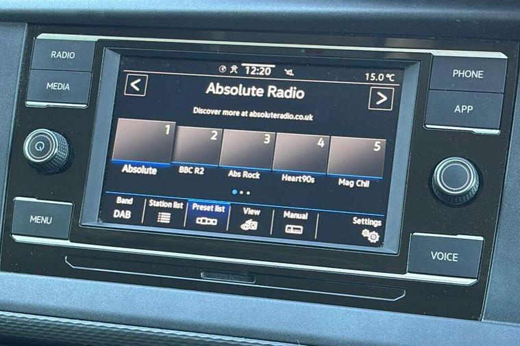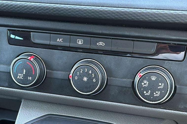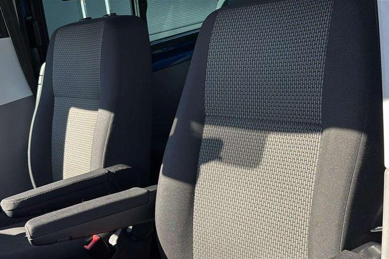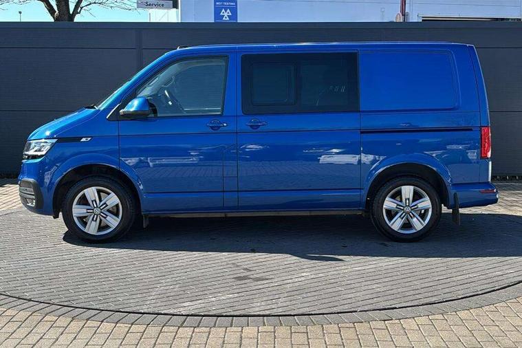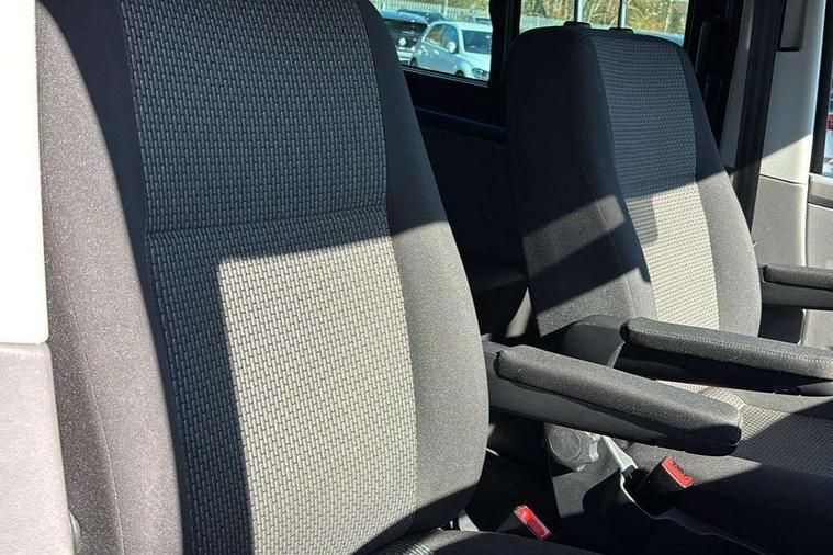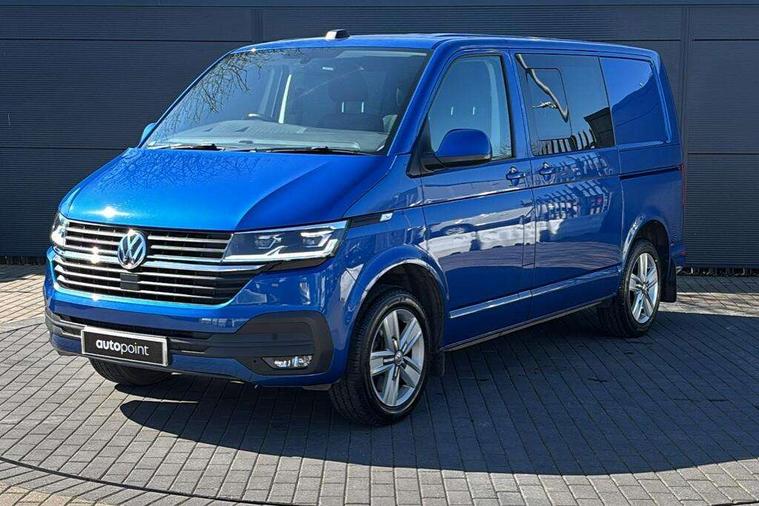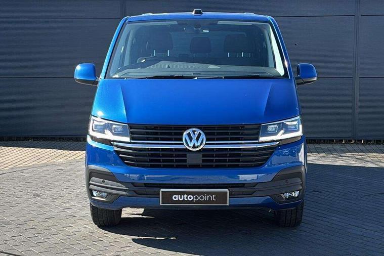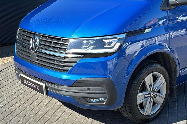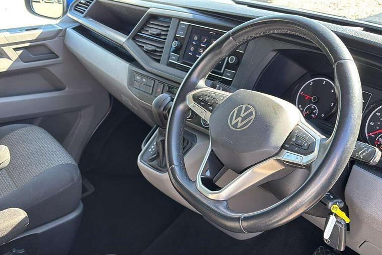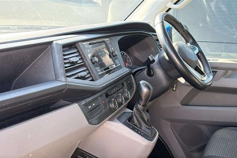 Adaptive cruise control, Child seat anchors ISOFIX and top tether in 2nd row of seats, Cross wind assist, Dimmable illuminated instruments, Driver alert with black and white multi function display plus, eCall emergency system, Electromechanical speed sensitive power steering, height and longitudinally adjustable steering column, Forward collision warning front assist with autonomous emergency braking, Headlight range control, Mobile phone interface, Without voice control, 2 USB interfaces type C in dashboard, 4 speakers with 2 tweeters and 2 woofers, Composition colour radio with 6.5" touchscreen, Digital radio reception (DAB+), Volkswagen app connect, Automatic headlight control, leaving home and manual coming home feature, Front fog lamps with cornering light, Green heat insulating glass, Heated front windscreen, Illuminated steps in passenger/load compartment, Left convex exterior mirror, Power adjustable and heated exterior mirrors, Power folding door mirrors, Privacy glass in passenger compartment, Radiator grille with 2 chrome trims, Rear window with heated insulating glass, heated rear window wiper and washer system, Right convex exterior mirror, Tailgate closing with unlatching from the inside, Tailgate with window aperture, Transporter nameplate on the rear fender, Windshield wiper intermittent control with rain sensor for windshield wipers, Without adhesive film, 3 spoke leather wrapped multi function steering wheel, Additional sound deadening measures in cab and passenger compartment, Auto dimming breakaway interior rear view mirror, Comfort headliner in cab, hardboard roof trim in passenger and load compartment, Dust/pollen filter, Folding grab handles and storage compartments on cab seats, reading light, Front seats on the right in 1st row of seat, Glove compartment with illumination, Heavy duty tool kit and jack, Interior plastic loading edge protection, Lashing rings for load restraint system, LED Interior lighting in load and passenger compartment, Medium height for vehicles with window aperture hardboard side trim panels in passenger/load compartment, Refrigerant R134a, Rubber floor covering in cab, Rubber floor covering in passenger/load compartment with loading edge protection in rear, Standard lower part dashboard in palladium, Without partition, Without seats in 3rd row of seats, Exterior pack without fog light- Transporter, Non smoker pack - Transporter, 3 point height adjustable seat belts on outer seats cab with electric pretensioners, Driver and front passenger airbag with front passenger airbag deactivation, Power operated child safety lock, Single tone horn, Warning buzzer and light for driver seat belt not fastened, Anti theft alarm system with interior monitoring in cab, backup horn and towing protection, Lockable wheel bolts, 16" chassis with 16" brake system, 70 L volume fuel tank, Additional 12V socket, Diesel particulate filter, Electronic stability control, ABS, ASR with deactivation button, hill start assist and brake assist system, Speed limiter, Start/stop system with regenerative breaking, 17" Devonport silver alloy wheels, Wheel trims,