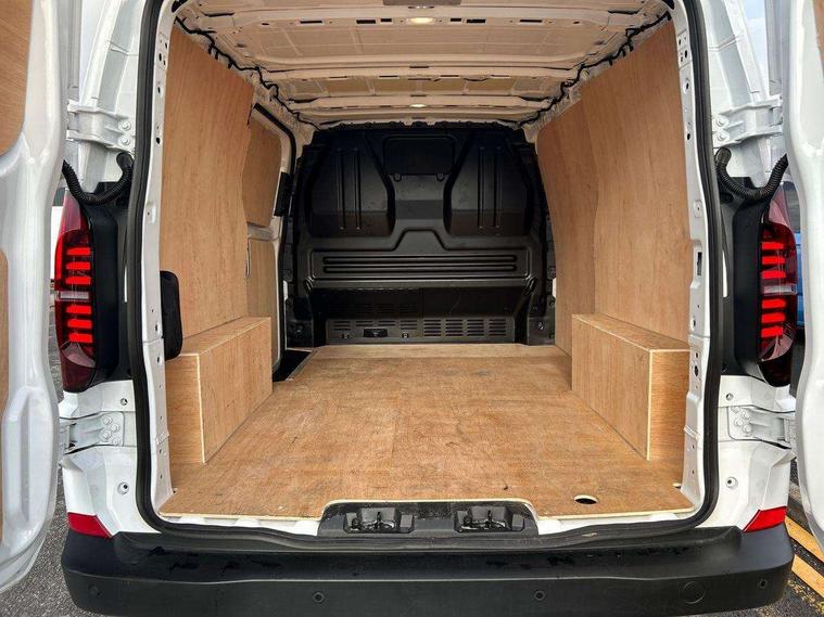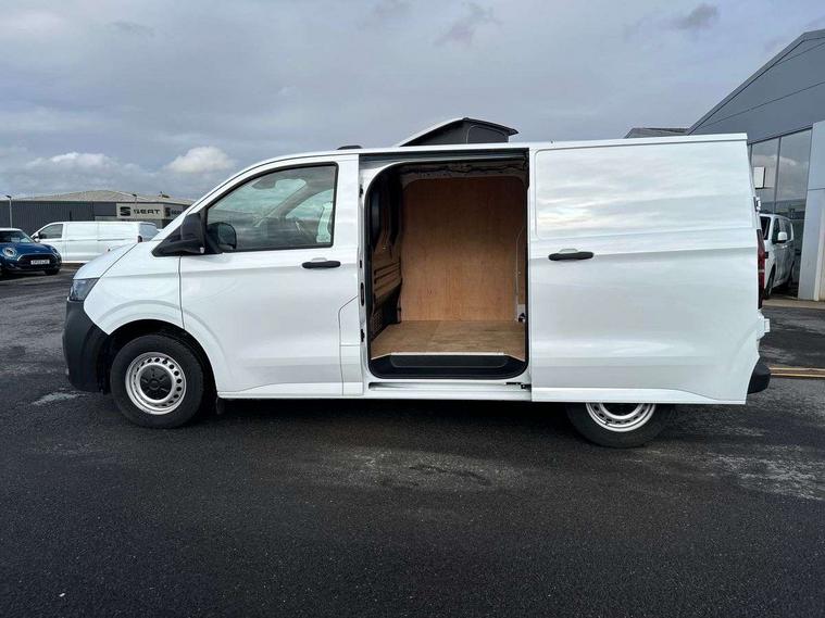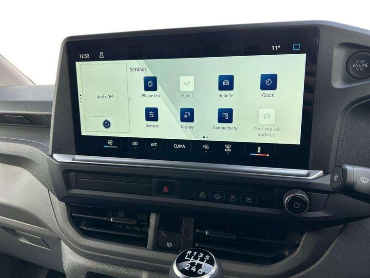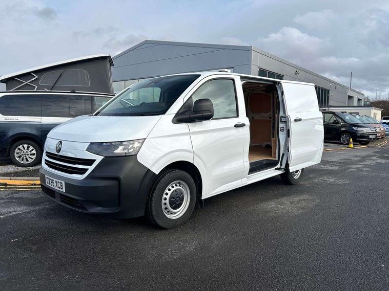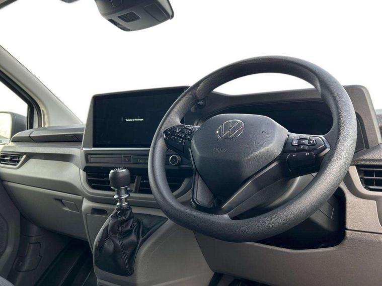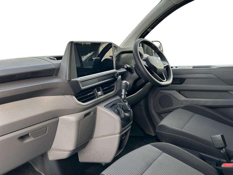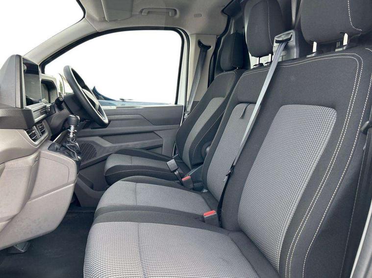 12" digital drivers display, 13" touchscreen infotainment display with wireless app connect and DAB radio, 5G Modem, Apple CarPlay and Android Auto, Cruise control, Dynamic road sign display, eCall emergency system, Electromechanical speed sensitive power steering, height and longitudinally adjustable steering column, Lane assist, Preparation of VW connect and connect plus, Wrong way driver warning, 4 speakers - 2x dashboard, 2x cab doors, Grained black door handles, Heat reflecting side window glass, High beam control, Laminated windshield made of heat-reflecting glass, LED rear combination lamps, Rear Transporter nameplate in black grained decorative trim, Vehicle opening configuration 1x 1st row of seats, 2x all doors, 2x 15-W USB data/charging ports in dashboard and 1x USB-C, 1x USB-A center bottom, 2x LED lights in load compartment, 4 way height and tilt adjustable head restraints, Black plastic scuff plate for sliding door in cargo without illumination, Cabin interior lighting, Lashing rings for reinforced floor covering, Narrow centre console with cup holder and compartment for mobile phone, Overhead storage compartment, Plastic gear lever, Roof grab handle on front passenger side, Rubber floor covering in cab, Standard glove compartment, Striped fabric upholstery, Without passenger seats in load compartment, Exterior pack 1 - Transporter, Interior trim pack - Transporter, Driver and front passenger airbag with front passenger airbag deactivation, Dual tone horn, Front and curtain airbags for driver and front passenger, Seat belt pretensioner for driver seat, Electronic immobiliser, Preparation for alcohol ignition interlock, 5+ Promise, Alternator - 230A, Electronic stability control, ABS, ASR with deactivation button, hill start assist and brake assist system,