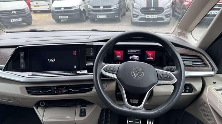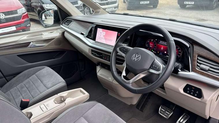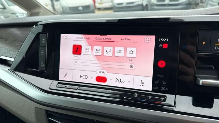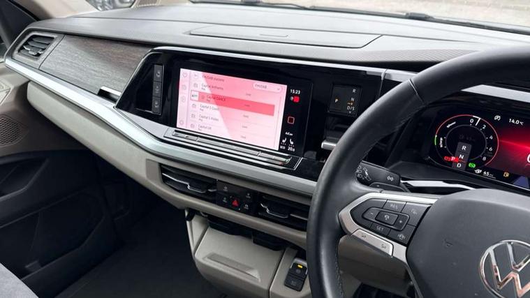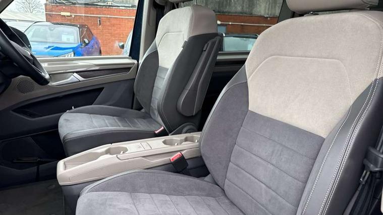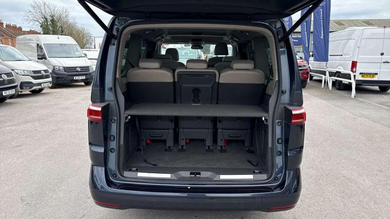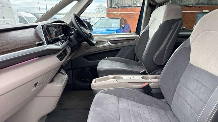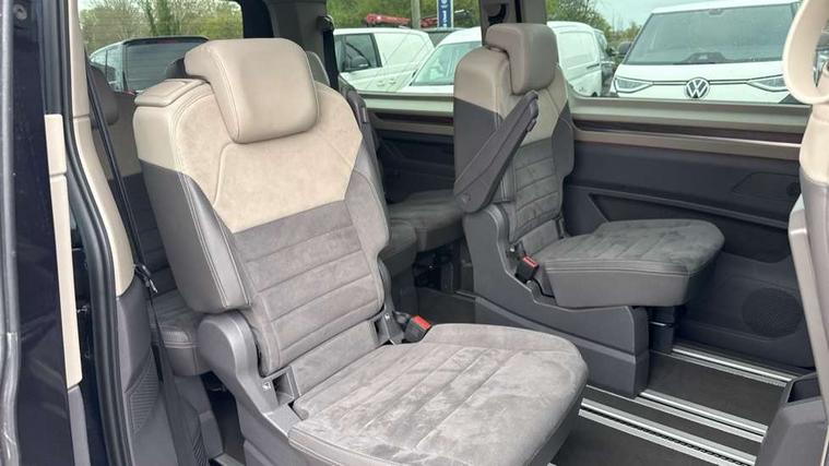 Adaptive cruise control with C2X including front assist and city emergency braking system, App-Connect incl. App-Connect Wireless for Apple CarPlay and Android Auto, Digital Cockpit Pro with 10.25" Display, Driver alert system, Dynamic road sign display, eCall emergency system, Electric tailgate with virtual pedal, Electrically-operated tailgate opening and closing function (Easy open), operated via foot movement under rear tailgate, Emergency assist, Lane change system with side assist including blind spot monitor, rear traffic alert and exit warning system, Lane keeping system Lane Assist, Mobile phone interface, PAS, Rear view camera, Semi-automated driving assistance, Socket AC Type 2, Tailgate, Travel assist, Voice control system including Alexa web app, We connect preparation, 1 x 6 metre charging cables - 16amp AC cable for wallbox chargepoints (mode 3), Electronic differential lock, 2 USB-C ports in front and 4 USB-C ports in passenger compartment, Digital radio reception (DAB+), Additional interior noise reduction measures, Advanced high beam control dynamic light assist for LED matrix headlamps, Automatic headlight control with welcome home lights, Body coloured exterior door handles, Break away auto dimming rear view interior mirror, Dynamic headlight range control with dynamic cornering light, Electric sliding rear side door on the left/right with easy open feature, Electrically adjustable, heated and folding door mirrors, Front fog lights, Glossy black painted radiator grille with 2 illuminated chrome trims, Heated rear window with window wiper and washer system, Heated windscreen, High gloss black exterior mirror housing, IQ.Light LED matrix headlamps with LED separate daytime running light, Laminated safety glass windshield, heat and sound insulating, LED 3rd brake lamp, LED rear combination lamps, Rear wiper, Stainless steel tailgate trim, Surround lighting in door area and tailgate with logo projection in door area, Windshield wiper intermittent control with rain sensor, 1 x 12V sockets on the dash panel, 12V socket in passenger compartment, 3 seat bench in 3rd row, 30 colours ambient interior lighting and tailgate surround lighting, 7 single seats removable/movable, Carpet mats in cab, Climatronic 3 zone air conditioning with 2nd evaporator, auxiliary heater, air conditioned headliner and additional passenger control, Front and rear head restraints, Grab handles on A pillar for access, on driver and front passenger side, Heated steering wheel, Height adjustable seats, Height and longitudinal adjustment steering wheel with gear shift paddles, Illumination lockable glovebox compartment, ISOFIX (including i-size) and top tether in all seats in 2nd and 3rd rows, LED luggage compartment lighting X 2, Load compartment partition to 20kg with bag hooks and luggage net, Luggage compartment lid power latching with unlatching from inside, Multifunction leather steering wheel with tiptronic, Reinforced carpet floor covering in passenger compartment, Removable armrests for front seats with power adjustable lumbar support and folding table for 2nd row passenger seats, Removable armrests in 2nd row passenger seats, Single front passenger seat, Stainless steel pedals, Storage compartment under the 2nd and 3rd row seat and two waste bins, Sun visors with illuminated vanity mirrors and airbag warning label on front passenger sun visors, 3x3 point rear seat belts, ABS, Automatic post collision braking system, Autonomous emergency braking front assist with pedestrian and cyclist monitoring, Driver and front passenger airbag with front passenger airbag deactivation, Electric childproof lock, Electronic stability control (ESC) and Electromechanical brake booster, ESP, First aid kit with warning triangle and safety vest, Front disc brakes, Hill hold assist, Seat belt warning for the drivers and all passengers seats if unfastened, Side and curtain airbags for driver and front passenger, curtain airbags for outer seats in rear, centre airbag in front, Single tone horn, Traction control, Tyre pressure monitoring system, Anti theft alarm system with interior monitoring in cab, backup horn and towing protection, Central locking system keyless entry with touch two stage unlocking, Start/stop button on centre console, Dark woodgrain optic decorative inserts,