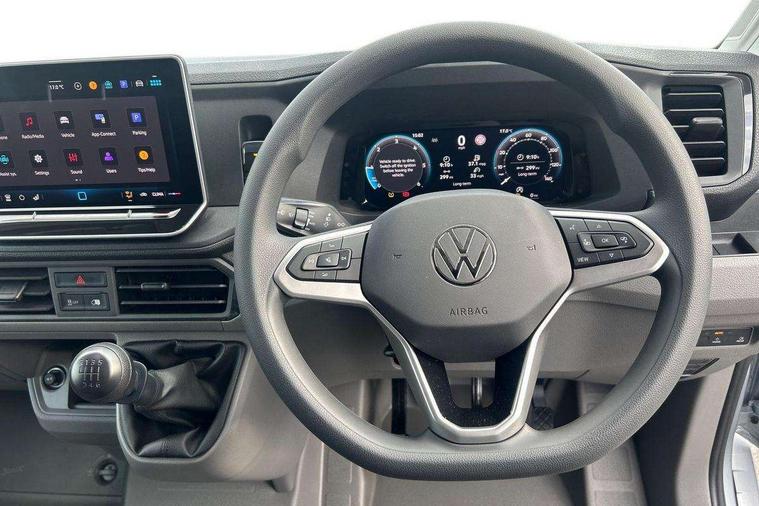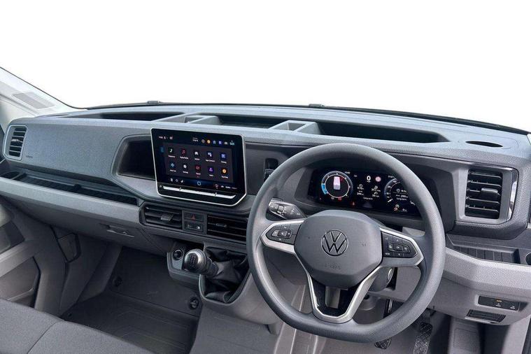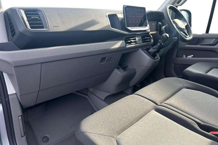Advanced driver attention and drowsiness monitor, Blind spot monitor, Bluetooth, Digital clock, Digital cockpit with active Info display, Dynamic road sign display, E-call + We connect basic preparation, Forward collision warning with warning and braking reaction to vehicles, pedestrians and cyclists, Front assist including city emergency braking, Instrument cluster, Lane keeping assist, Lights on warning buzzer, Locking fuel cap, Rev counter, Roof console for interior lighting control, Service indicator, Speedometer, USB socket at top of windscreen, Wireless charging, 2 USB C ports in dashboard, DAB Radio, Auto low beam mode, Leaving home function and manual coming home function, Black unpainted plastic front bumper, Cab doors, Convex and wide angle mirror, Driver seatbelt warning light, Electric windows, Heat insulating glass, Indicators in front door mirrors, One towing eye in front, Rear badges, Special identification plate, Touch panel control for exterior lights, Unpainted radiator grille, Windscreen wiper auto control with light and rain sensor, Air recirculation system, Ashtray, Centre console storage tray, CFCU preparation, Charcoal filter, Document holder on centre console, Drinks holders, Electromechanical Servotronic steering, Electronically controlled heating system, Fully adjustable suspension type driver seat, Height adjustable head restraints, Height and reach adjustable steering wheel, Illuminated glove compartment with lockable lid, Interior light, including 2 reading lights, Interior light, switchable by door, Jack and tool kit, Preparation for interface for external use with terminal block, Storage compartments in doors and in step, right, Storage tray on dashboard, Two 12V outlets in the cab (in the dashboard), Without rear side trim panel passenger load compartment, Non-smokers pack - Crafter, 3 point inertia reel belt on all seats, Automatic hazard light with emergency braking, Crosswind assist, Driver and front passenger airbag with front passenger airbag deactivation, Height adjustable seatbelts for outer cab seats, 1 rigid key, Central locking system with Keyless Go without SAFELOCK entry - Keyless entry and start, Engine immobiliser, ABS, Automatic post collision braking system, EBA, EBD, EDL, Electronic parking brake - hill hold control, ESP, Front disc brakes, HBA, Hill start assist, Start and stop system with regenerative braking, TCS, Hub cap covers,