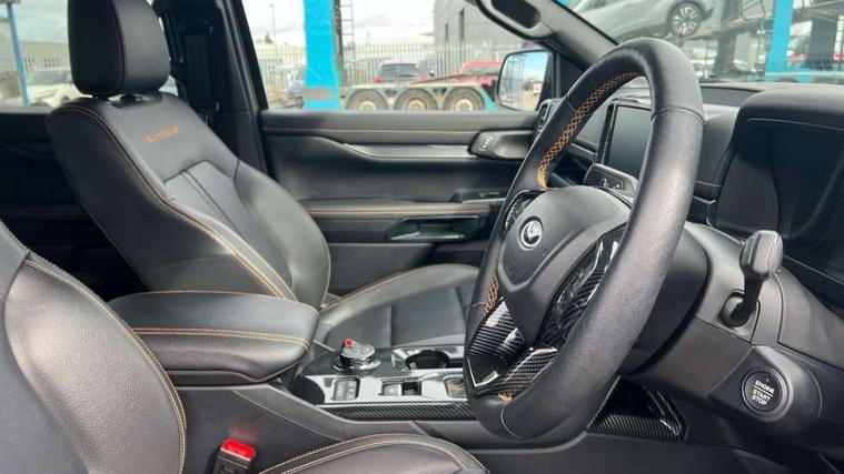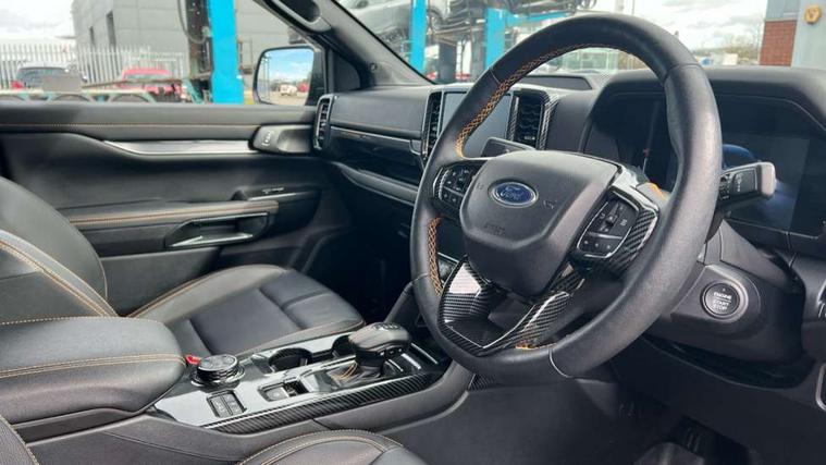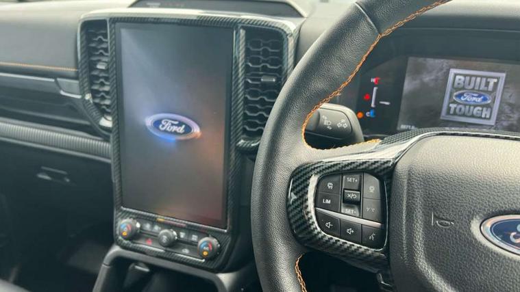 AEB and ISA, Conventional gearshift, Electric power assisted steering, Evasion steer assist, Ford pass connect embedded modem, Ice warning, Partial TFT/LCD instrument cluster, Passenger side roof mounted grab handle, Pre collision assist, Road departure warning, Traffic sign recognition, Trip computer, 360 lighting, Accent colour exterior mirrors, Accent colour front bumper, Accent colour grille, Accent colour rear bumper, Acoustic laminated windscreen, Assisted conventional tailgate, Automatic headlights, Black rear underrun bar, Black wheel molding, Body coloured door handles, Daytime running lights, Dual power heated fold back door mirror with pud lamps, E-marked glass, Electric rear window defroster, Electric windshield defroster, Electrochromic interior mirror, Fog lamp bezel, Front fender painted gill, Front headlamp leveling, Front splash guard, Front towing hooks, High mounted stop lamp, Ladder rack, LED Front fog lamp, Level 2 LED headlamps, Level 2 LED taillamps, Manual liftgate, Narrow bodyside moulding and insert, Non locking capless fuel fill, Outside thermometer, Plastic cab roll over bar, Power front windows with one touch up/down, Privacy glass, Rain sensitive windshield wipers, Rear bumper extension, Rear bumper step, Rear fog lamps, Rear mudflaps, Rear splash guard, Roof rails, Self coloured decklid handles, Side step - Bar only, Side step with bright finish inserts, Silver matte step bar, Standard green glass windscreen, Trailer tow class I, Trailer tow wiring, Under hood engine cover, Cargo light, Console with double lid, Door handles with inside MIC, Driver and passenger sunvisor with mirror, Ebony headliner, Electronic dual zone automatic air conditioning, Fold flat rear seat with durabale surface, Fresh air heater, Glove box lights, Heated steering wheel, LED ambient interior lighting, Less load rest, Less outside tie down hooks, Locking glove box lid, Micro rib embossed leather upholstery, Non woven carpet, Overhead console with dome lamps, Pollen filter, Premium air register, Premium front and rear floor mats, Pull out cup holder, Reach and rake adjustable steering column, Rear floor ducts, Roof storage for driver sunglasses, Steering wheel with multimedia controls, Tie down rails and rope hooks, Washer tank level warn lamp, Body protection pack 2 - Ranger, Front seat pack 7 - Ranger, Functional upgrade pack 3 - Ranger, Heavy duty terrain pack - Ranger, Interior trim pack 13 - Ranger, Rear seat pack 15 - Ranger, Tachograph prep pack - Ranger, Child proof rear door locks, Driver and passenger airbag, Driver knee airbag, Head and thorax airbag in 2nd row, ISOFIX child safety seat attachment, Passenger knee airbag, Tyre pressure sensors, 2 Remote control unit - key fob, Flip key, Immobiliser, Locking wheel lug nut, Passive anti theft system, Passive keyless entry and start system, Power door dead locks, Power tailgate lock, Thatcham alarm system, Thatcham security system, 12V aux rear power point plug, ABS and ESP+, Electric parking brake, Emergency brake assist, Front and rear disc brakes, Loadbox power point plug, Open style rear axle, Soft ride suspension, 18" Aluminium spare wheel, Spare tire lock,