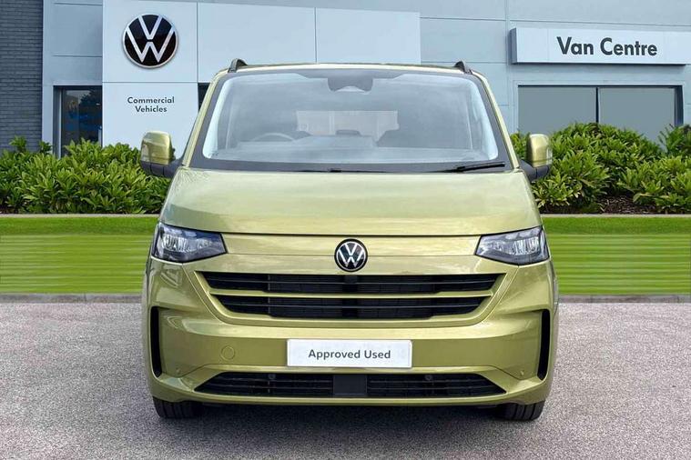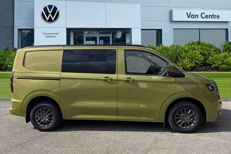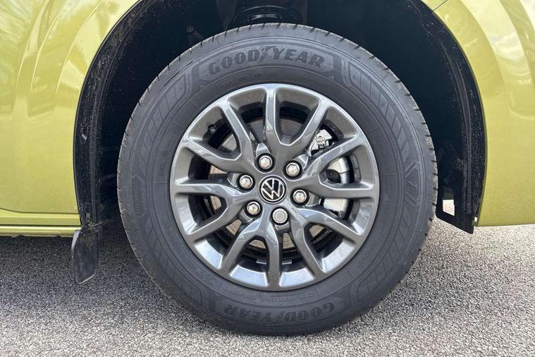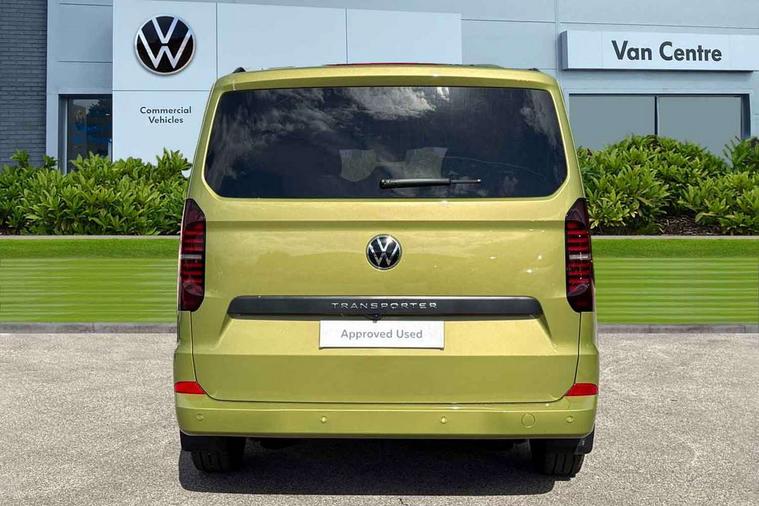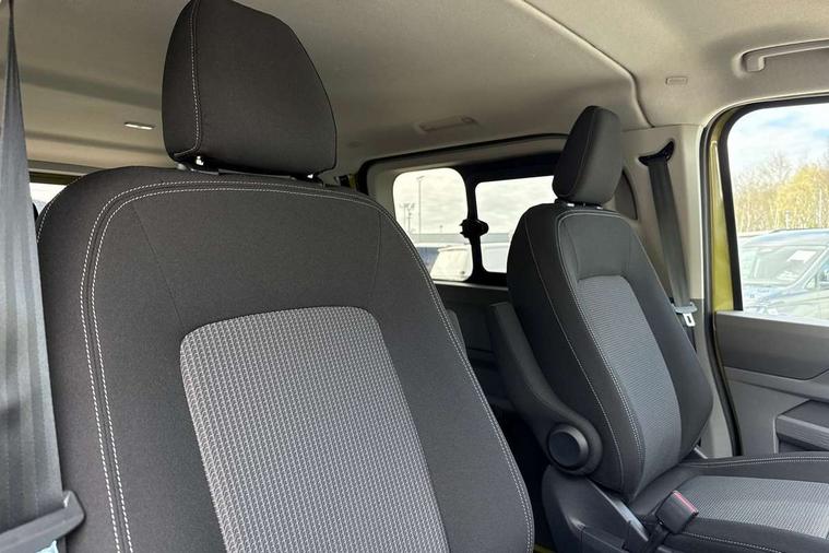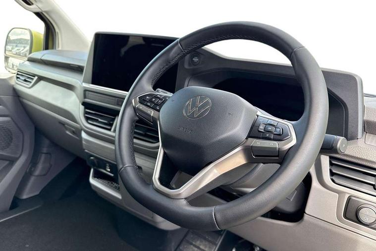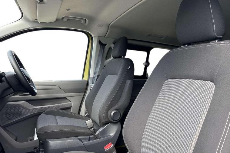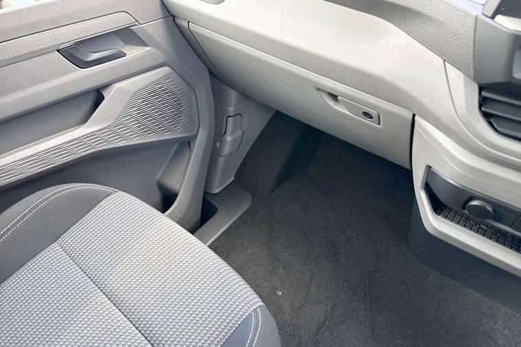 12" digital drivers display, 13" touchscreen infotainment display with wireless app connect and DAB radio, 5G Modem, Adaptive cruise control with predictive speed limiter and traffic jam assist, Dynamic road sign display, eCall emergency system, Front collision warning with braking, Identification label for N1 commercial vehicle registration, Lane assist with blind spot assist and exit warning system, PAS, Preparation of VW connect and connect plus, Wireless mobile phone charging, Wrong way driver warning, 6 speakers, Body colour bumpers front and rear, Body coloured add on parts, Body coloured door handles, Body coloured door mirrors, Body coloured radiator grille, Dual sliding doors with pop-out window vents (left and right) for 2nd row, Electrically heated, adjustable and folding door mirrors, Heat reflecting glass in front side windows, privacy glass in rear side windows and rear window, Heated rear window, Laminated windshield made of heat-reflecting glass, Mud flaps front and rear, Rear tailgate, Rear Transporter nameplate in black grained decorative trim, Rear window wiper with washer system, Sliding doors on driver and front passenger side, Vehicle opening configuration 1x 1st row of seats, 2x all doors, 12 pin terminal block, 12V outlet in centre console and 12V outlet on rear right D-pillar, 2 LED lights in roof of load compartment, 3 single seats in 2nd row, folding and tumbling, 2x isofix and top tether, 3x additional super bright LED lights in load compartment, 4 tie downs for securing goods in the passenger/load compartment, 4 way height and tilt adjustable head restraints, 7x USB in cab and 2x USB in passenger compartment, Black plastic scuff plate for sliding door in cargo, illuminated, Black plastic scuff plate in front without illumination, Covers in the bottom area of all side panels and doors in the load compartment, Dimming breakaway interior rear view mirror, Gear selector lever on steering wheel, Grab handle on A-pillar passenger side, Illuminated glove compartment with lockable lid, LED light units for cab and passenger compartment, Overhead storage compartment, Single driver and single passenger seat in cab, Striped fabric upholstery, Without bulkhead, Without floor covering in load compartment, Driver and front passenger airbag with front passenger airbag deactivation, Dual tone horn, Seat belt pretensioner for front seats, Side and curtain airbags in cab curtain airbags in passenger compartment, Anti theft alarm system with interior monitoring in cab, backup horn and towing protection, Anti-theft wheel bolts, Central locking, Preparation for alcohol ignition interlock, 5+ Promise, Alternator - 230A, Electromechanical brake booster, Electronic Stability Control (ESC),