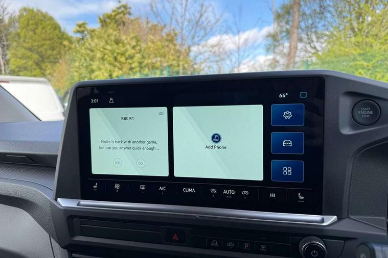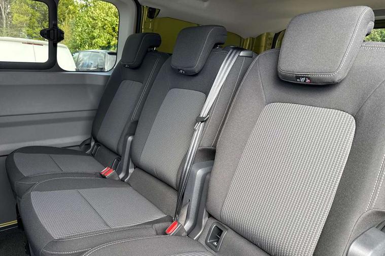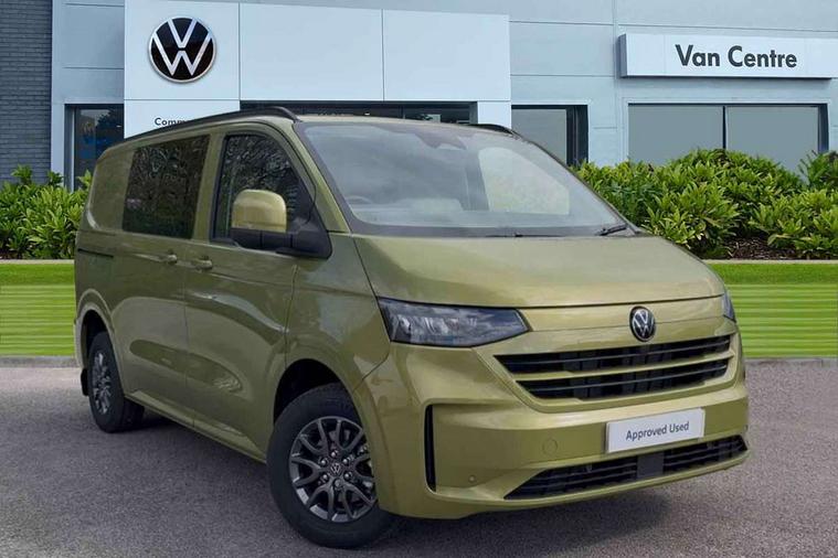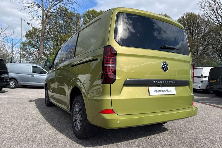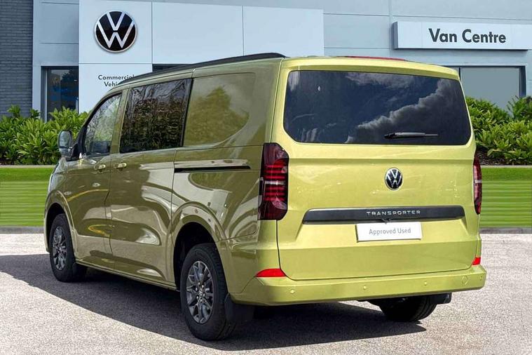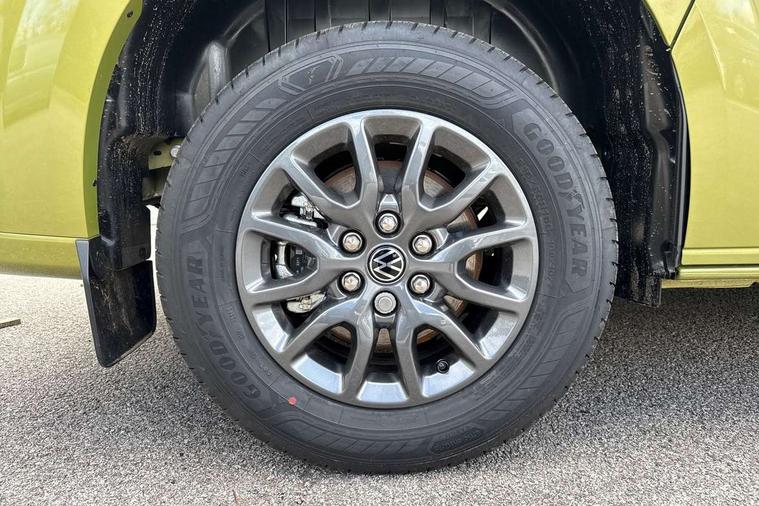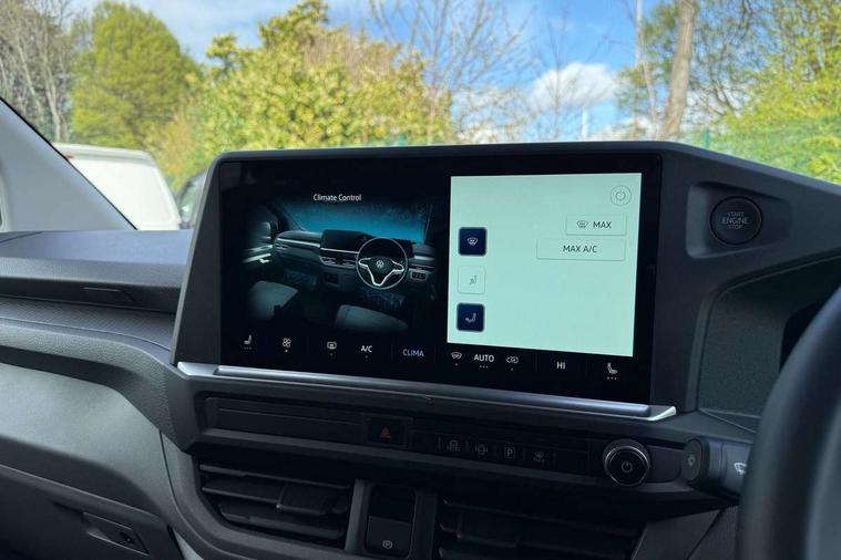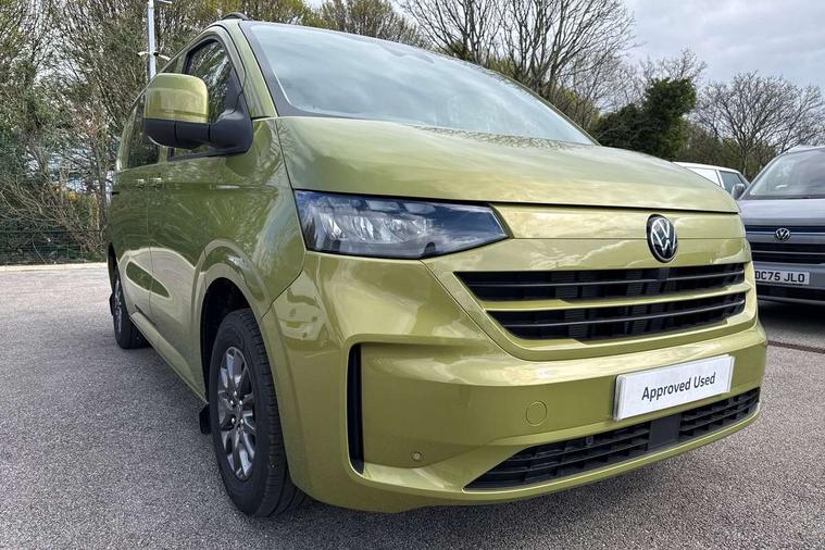 12" digital drivers display, 13" touchscreen infotainment display with wireless app connect and DAB radio, 5G Modem, Adaptive cruise control with predictive speed limiter and traffic jam assist, Dynamic road sign display, eCall emergency system, Front collision warning with braking, Identification label for N1 commercial vehicle registration, Lane assist with blind spot assist and exit warning system, PAS, Preparation of VW connect and connect plus, Wireless mobile phone charging, Wrong way driver warning, 6 speakers, Body colour bumpers front and rear, Body coloured add on parts, Body coloured door handles, Body coloured door mirrors, Body coloured radiator grille, Dual sliding doors with pop-out window vents (left and right) for 2nd row, Electrically heated, adjustable and folding door mirrors, Heat reflecting glass in front side windows, privacy glass in rear side windows and rear window, Heated rear window, Laminated windshield made of heat-reflecting glass, Mud flaps front and rear, Rear tailgate, Rear Transporter nameplate in black grained decorative trim, Rear window wiper with washer system, Sliding doors on driver and front passenger side, Vehicle opening configuration 1x 1st row of seats, 2x all doors, 12 pin terminal block, 12V outlet in centre console and 12V outlet on rear right D-pillar, 2 LED lights in roof of load compartment, 3 single seats in 2nd row, folding and tumbling, 2x isofix and top tether, 3x additional super bright LED lights in load compartment, 4 tie downs for securing goods in the passenger/load compartment, 4 way height and tilt adjustable head restraints, 7x USB in cab and 2x USB in passenger compartment, Black plastic scuff plate for sliding door in cargo, illuminated, Black plastic scuff plate in front without illumination, Covers in the bottom area of all side panels and doors in the load compartment, Dimming breakaway interior rear view mirror, Gear selector lever on steering wheel, Grab handle on A-pillar passenger side, Illuminated glove compartment with lockable lid, LED light units for cab and passenger compartment, Overhead storage compartment, Single driver and single passenger seat in cab, Striped fabric upholstery, Without bulkhead, Without floor covering in load compartment, Driver and front passenger airbag with front passenger airbag deactivation, Dual tone horn, Seat belt pretensioner for front seats, Side and curtain airbags in cab curtain airbags in passenger compartment, Anti theft alarm system with interior monitoring in cab, backup horn and towing protection, Anti-theft wheel bolts, Central locking, Preparation for alcohol ignition interlock, 5+ Promise, Alternator - 230A, Electromechanical brake booster, Electronic Stability Control (ESC),