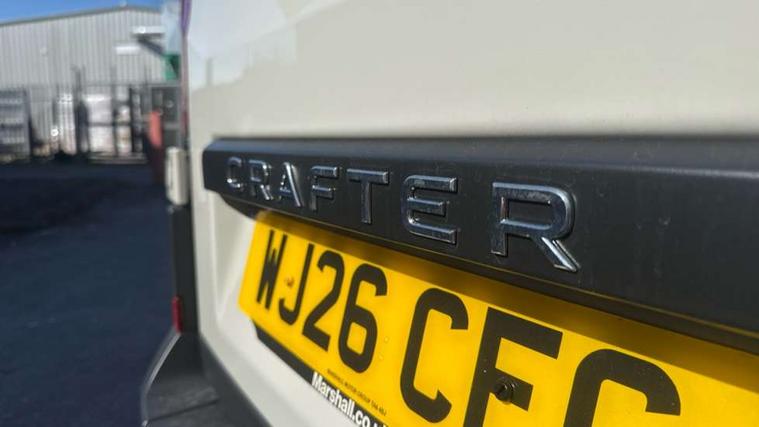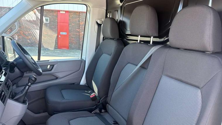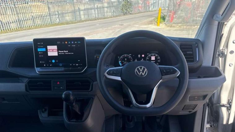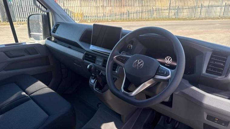 Advanced driver attention and drowsiness monitor, Blind spot monitor, Bluetooth, Digital clock, Digital cockpit with active Info display, Dynamic road sign display, E-call + We connect basic preparation, Forward collision warning with warning and braking reaction to vehicles, pedestrians and cyclists, Front assist including city emergency braking, Instrument cluster, Lane keeping assist, Lights on warning buzzer, Locking fuel cap, Rev counter, Roof console for interior lighting control, Service indicator, Speedometer, USB socket at top of windscreen, Wireless charging, 2 USB C ports in dashboard, DAB Radio, Auto low beam mode, Leaving home function and manual coming home function, Black unpainted plastic front bumper, Cab doors, Convex and wide angle mirror, Driver seatbelt warning light, Electric windows, Heat insulating glass, Indicators in front door mirrors, One towing eye in front, Rear badges, Special identification plate, Touch panel control for exterior lights, Unpainted radiator grille, Windscreen wiper auto control with light and rain sensor, Air recirculation system, Ashtray, Centre console storage tray, CFCU preparation, Charcoal filter, Document holder on centre console, Drinks holders, Electromechanical Servotronic steering, Electronically controlled heating system, Fully adjustable suspension type driver seat, Height adjustable head restraints, Height and reach adjustable steering wheel, Illuminated glove compartment with lockable lid, Interior light, including 2 reading lights, Interior light, switchable by door, Jack and tool kit, Preparation for interface for external use with terminal block, Storage compartments in doors and in step, right, Storage tray on dashboard, Two 12V outlets in the cab (in the dashboard), Without rear side trim panel passenger load compartment, Non-smokers pack - Crafter, 3 point inertia reel belt on all seats, Automatic hazard light with emergency braking, Crosswind assist, Driver and front passenger airbag with front passenger airbag deactivation, Height adjustable seatbelts for outer cab seats, 1 rigid key, Central locking system with Keyless Go without SAFELOCK entry - Keyless entry and start, Engine immobiliser, ABS, Automatic post collision braking system, EBA, EBD, EDL, Electronic parking brake - hill hold control, ESP, Front disc brakes, HBA, Hill start assist, Start and stop system with regenerative braking, TCS, Hub cap covers,